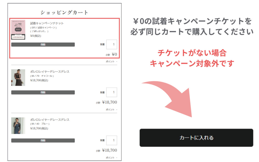 ご試着希望の対象商品 1着~最大3着をカートに入れる