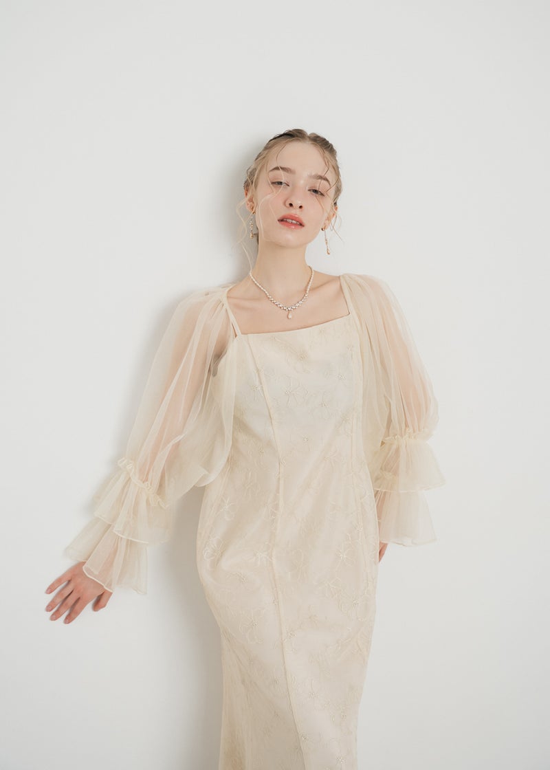 商品説明 エアリーな抜け感と、大人の可愛らしさを兼ね備えたボレロ。 たっぷりとギャザーを施し、羽織るだけでふんわりと立体感のあるシルエットデザインに。 程よい光沢のあるシアー素材が、軽やかさと大人な上品さを表現しております。 また、袖口は2層のフリルスリーブでさりげない華やかさをプラス。 一枚取り入れるだけでパッとコーディネートに存在感が出るので シンプルなスタイリングにも映えるアイテムです。 【コーディネートアイテム】 ・チュールボレロセットマーメイドドレス(25707) ・ヨークフリルスパンコールレースドレス(25704) ※商品画像は、光の当たり具合やパソコンなどの閲覧環境により、 実際の色味と異なって見える場合がございます。予めご了承ください。 おすすめのシーン カジュアルな結婚式・二次会・お呼ばれ・成人式・同窓会・ 女子会・謝恩会 パーティー・演奏会・お食事会など多様なシーンのコーディネートに使えます。 商品詳細 【備考】 ・透け感あり ・伸縮性多少あり ・袖口ゴム入り 洗濯方法:クリーニング店にご相談ください。 ※その他お取り扱いに関しましては、商品に付属のアテンションタグをご覧ください。 原産国:中国 お問い合わせ品番:25784