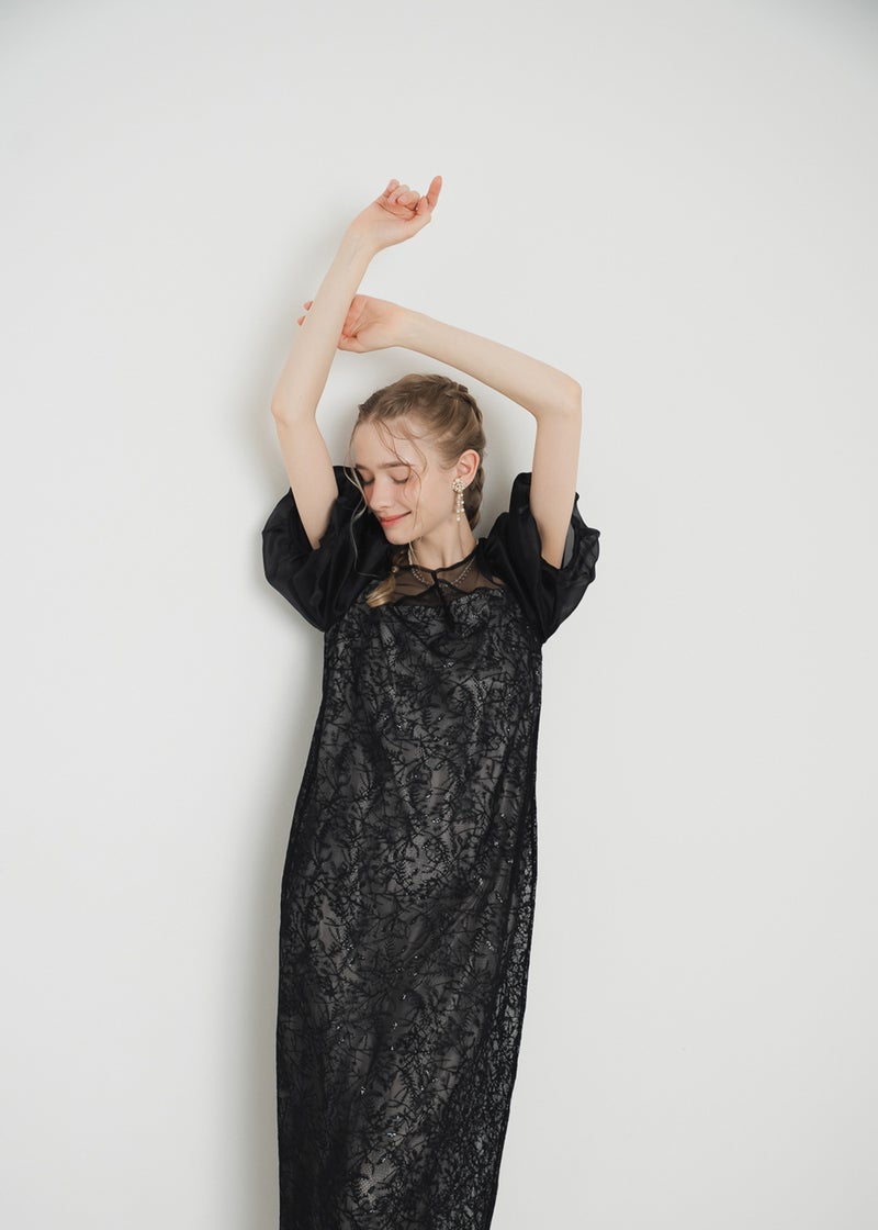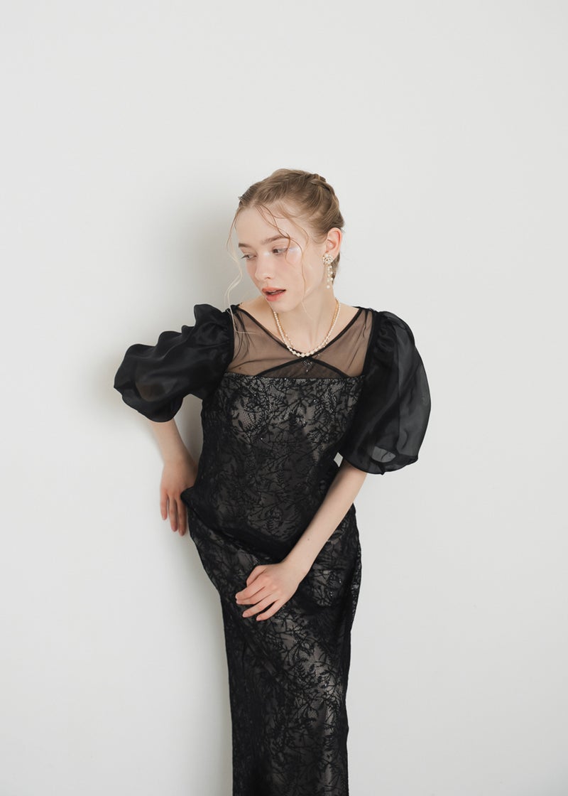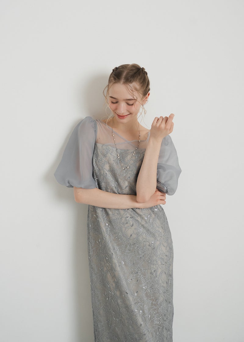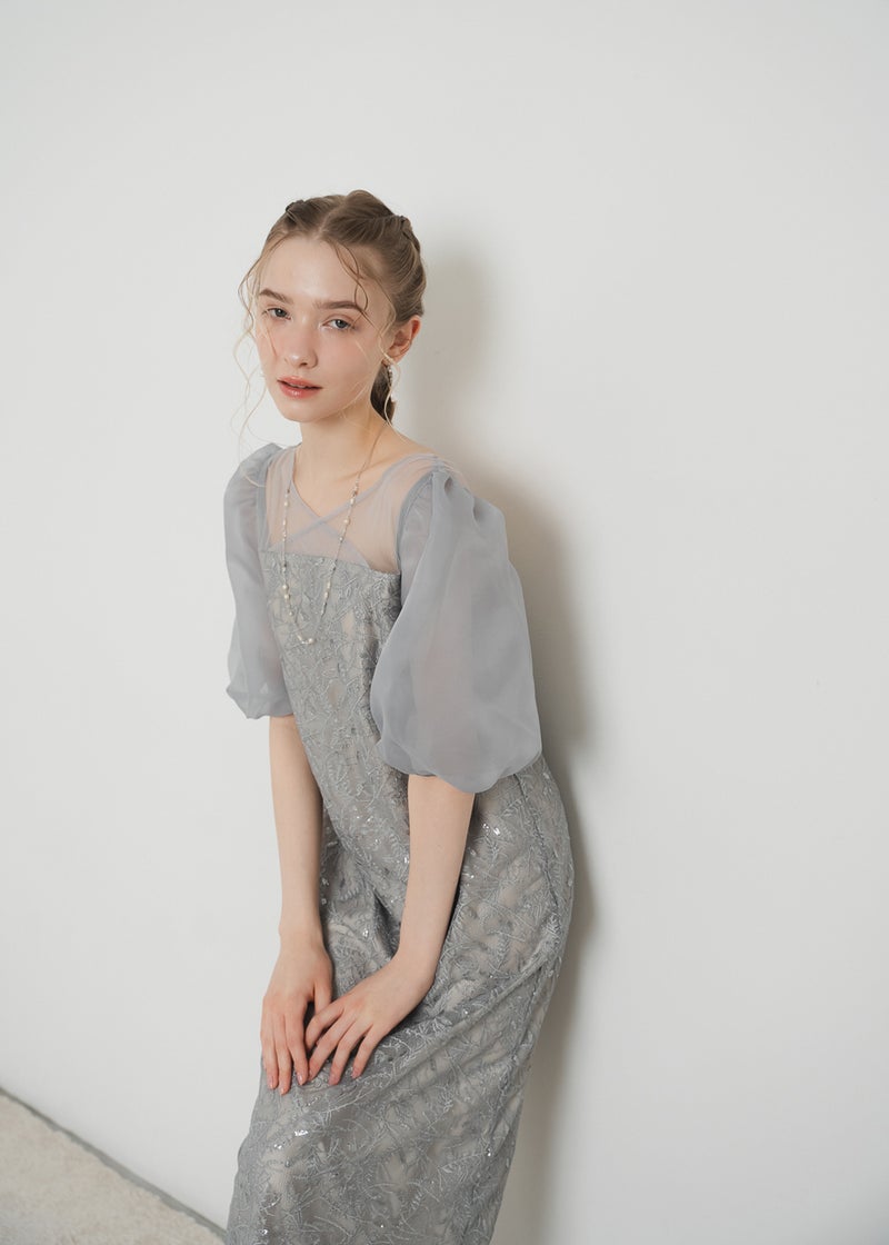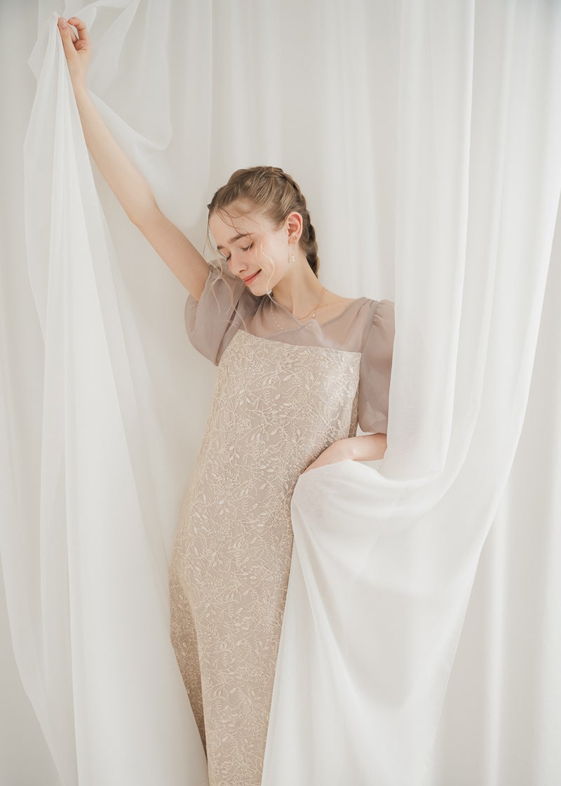 繊細なリーフ柄刺繍とふんわりパフスリーブが目を引く、上品さと可憐さを兼ね備えたドレス。 全体に施された刺繍の中に、さりげなくきらめくスパンコールがアクセントに。 デコルテ部分は程よいシアー感とクロスデザインのVネックですっきりとした印象を与えます。 シアー素材を重ねた、ぽわんとボリューム感が可愛いパフスリーブには、 洗練されたIラインシルエットのワンピースで可愛らしさの中に上品さもある佇まいに。 配色にこだわって選んだ、地と刺繍レース地のバランス感もポイントです。 それぞれのカラーに合うよう、カラーごとに裏地の色を変えています。 ベビーピンクのような、ふんわりとした印象のベージュ 少しくすみのあるニュアンス感が可愛いブルー 引き締まって見えて、より大人っぽく決まるブラック カラーを選ぶのも、ついときめいてしまうカラー展開です。 甘すぎない、大人可愛い一着をお探しの方にぜひ。 ※商品画像は、光の当たり具合やパソコンなどの閲覧環境により、 実際の色味と異なって見える場合がございます。予めご了承ください。