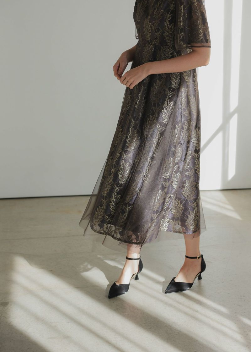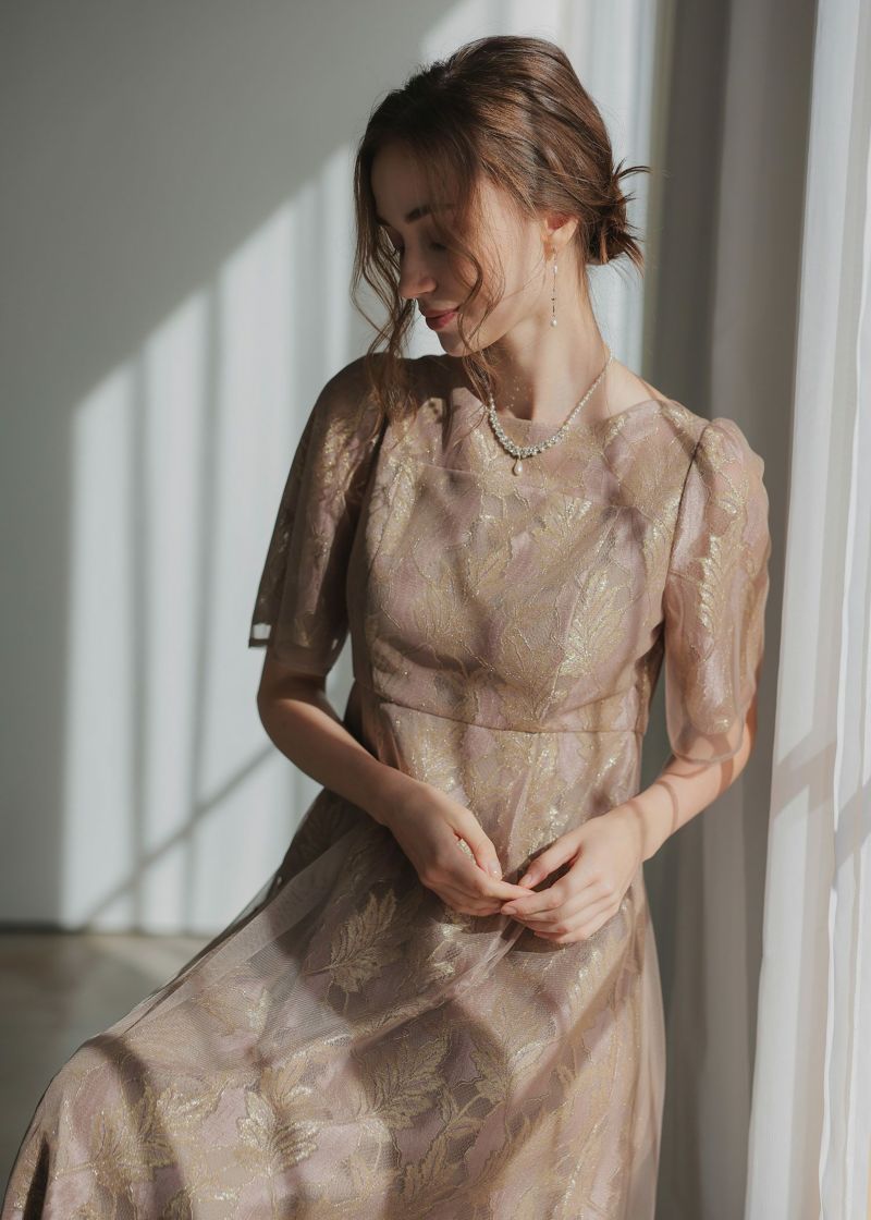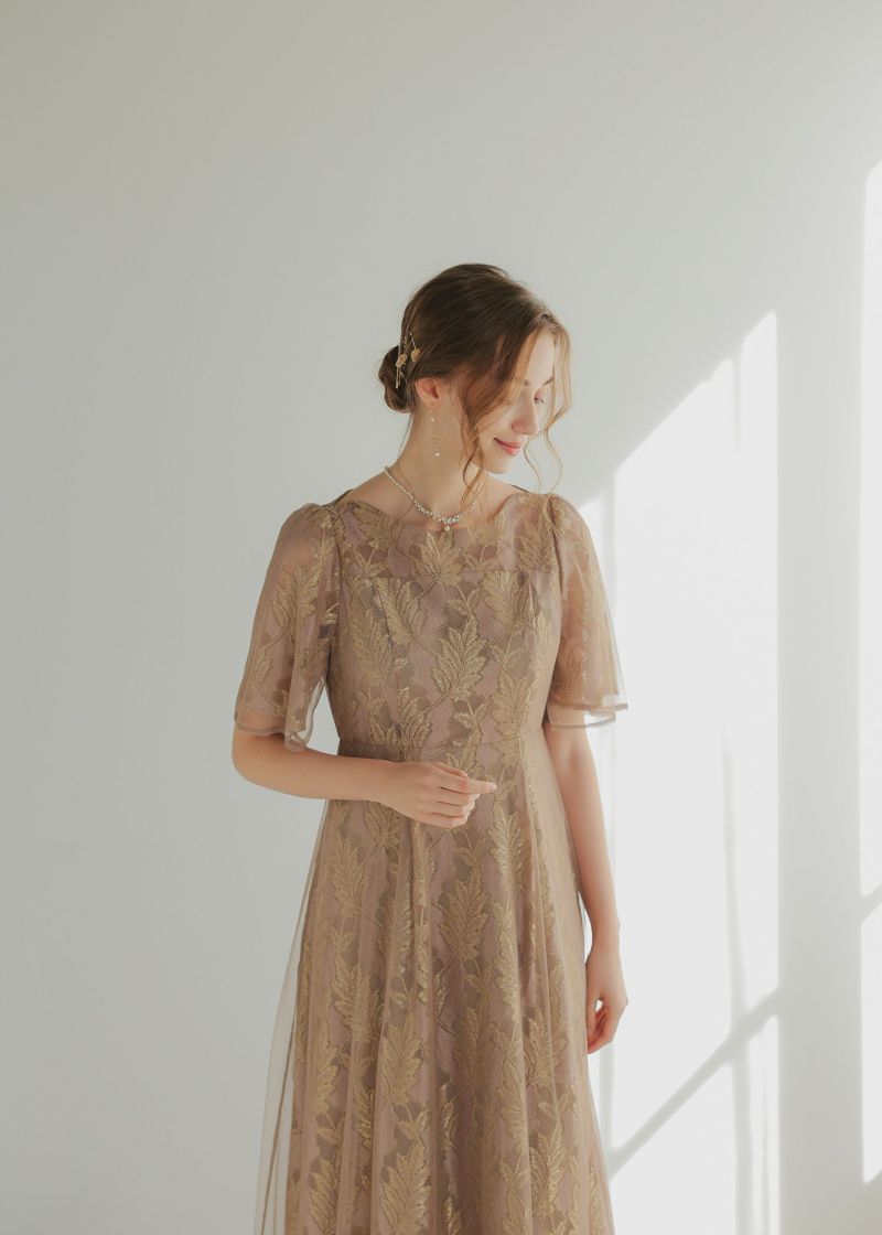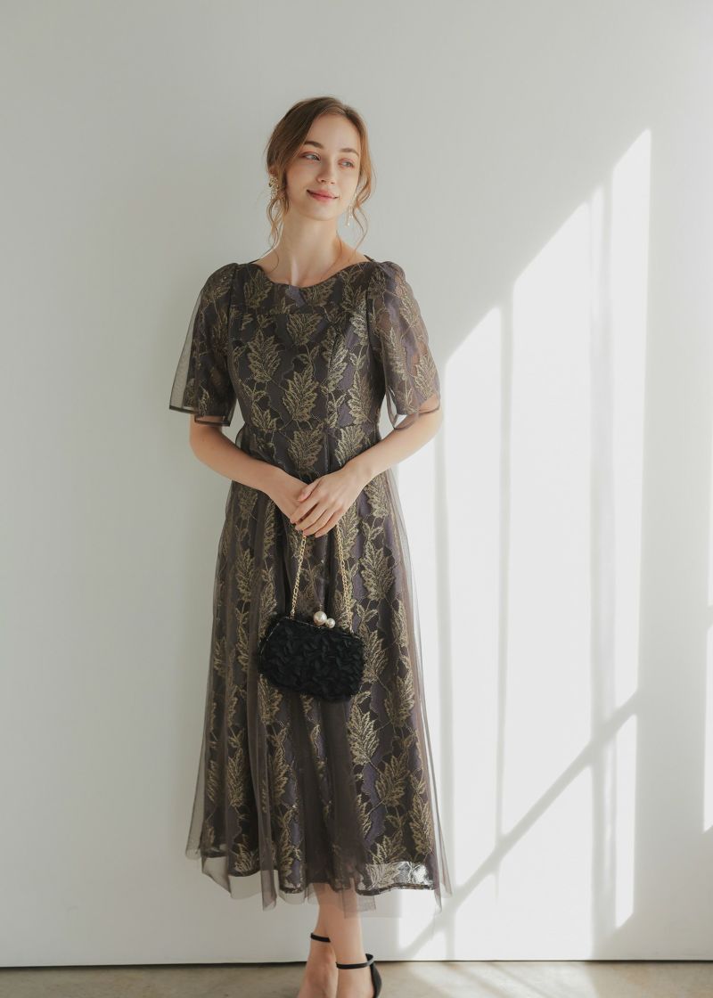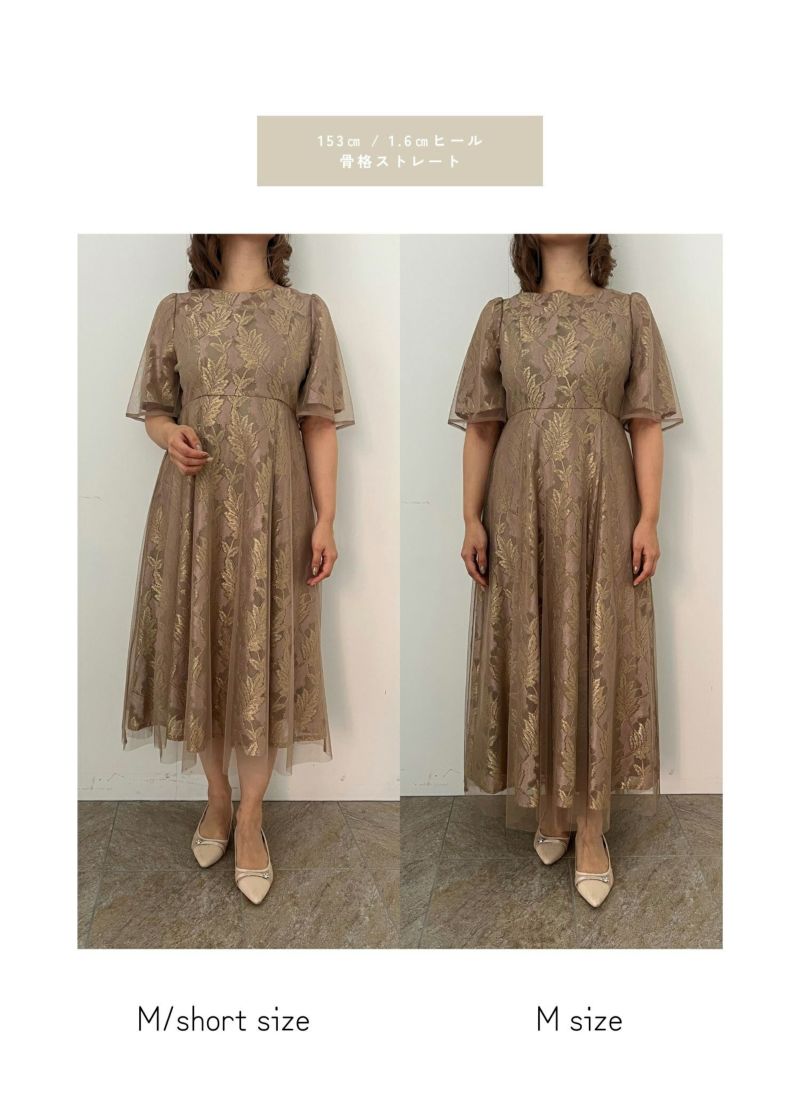 商品説明 ゴールド刺繍が華やかさを感じさせるドレス。 ウエストラインは高めの位置にすることで、足長効果も◎ ハイウエスト切り替えの為、ウエスト周りすっきりと見せてくれ、 光沢のあるゴールド刺繍が高級感をもたらします。 バックウエストはゴム入りの為、ストレスフリーでご着用いただけるのも嬉しいポイント。 着脱しやすい後ろファスナーの仕様です。 無地チュール地を上から重ねることで、歩くとふわっとした広がり感も。 上品な透け感が女性らしい上品な印象を引き立たせます。 オケージョン以外に発表会等のデイリーでもお使いいただきやすい1着です。 ※ハンガー掛けの商品画像が実際の商品のお色味に近くなっております。 ※商品画像は、光の当たり具合やパソコンなどの閲覧環境により、 実際の色味と異なって見える場合がございます。予めご了承ください。 おすすめのシーン カジュアルな結婚式・二次会・お呼ばれ・成人式・同窓会・ 女子会・謝恩会 パーティー・演奏会・お食事会など多様なシーンのコーディネートに使えます。 商品詳細 【備考】 ・裏地付き ・伸縮性なし ・バックウエストゴム入り ・バックファスナー仕様 ・刺繍糸部分ラメ感あり 洗濯方法:クリーニング店にご相談ください。 ※その他お取り扱いに関しましては、商品に付属のアテンションタグをご覧ください。 原産国:中国 お問い合わせ品番:25578