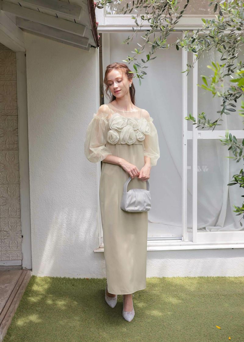 商品説明 胸元のバラモチーフが目を惹くドレス。 チェック柄のチュールで作られた、華やかなバラのモチーフは一押しポイント。 1つ1つのバラの大きさを微妙に変え、バランスや形にこだわって仕上げました。 座った姿もしっかり着映えするデザインです。 袖のチュールスリーブをワンピースと異なる素材を使うことで、洗練された印象に。 お食事の際にも邪魔にならない七分丈程の長さも嬉しいポイント。 胸元にボリュームを持たせている分、スカート部分はIラインシルエットで すっきりとバランス良く。 少し大人でモードな雰囲気のドレスをお探しの方にぜひ。 ※ハンガー掛けの商品画像が実際の商品のお色味に近くなっております。 ※商品画像は、光の当たり具合やパソコンなどの閲覧環境により、 実際の色味と異なって見える場合がございます。予めご了承ください。 おすすめのシーン 結婚式・披露宴・二次会・同窓会・謝恩会など 多様なシーンのコーディネートに使えます。 商品詳細 【備考】 <ビスチェ> ・アジャスターにて着丈調節可 ・バック部分くるみボタン仕様 <ワンピース> ・胸パッド付 ・バックファスナー仕様 ・デコルテ、お袖部分透け感あり ・バックスリット仕様 ・伸縮性なし ・裏地あり 洗濯方法:クリーニング店にご相談ください。 ※その他お取り扱いに関しましては、商品に付属のアテンションタグをご覧ください。 原産国:中国 お問い合わせ品番:25616