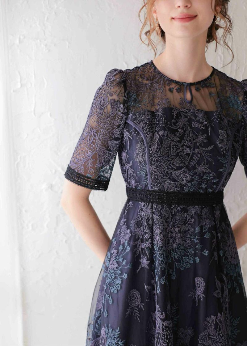 デコルテ、スカート裾部分はさりげなく透けるので