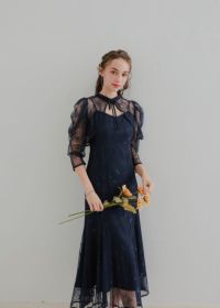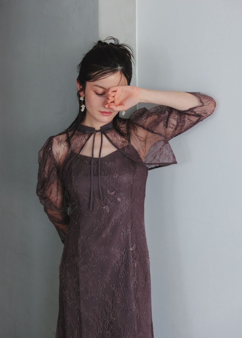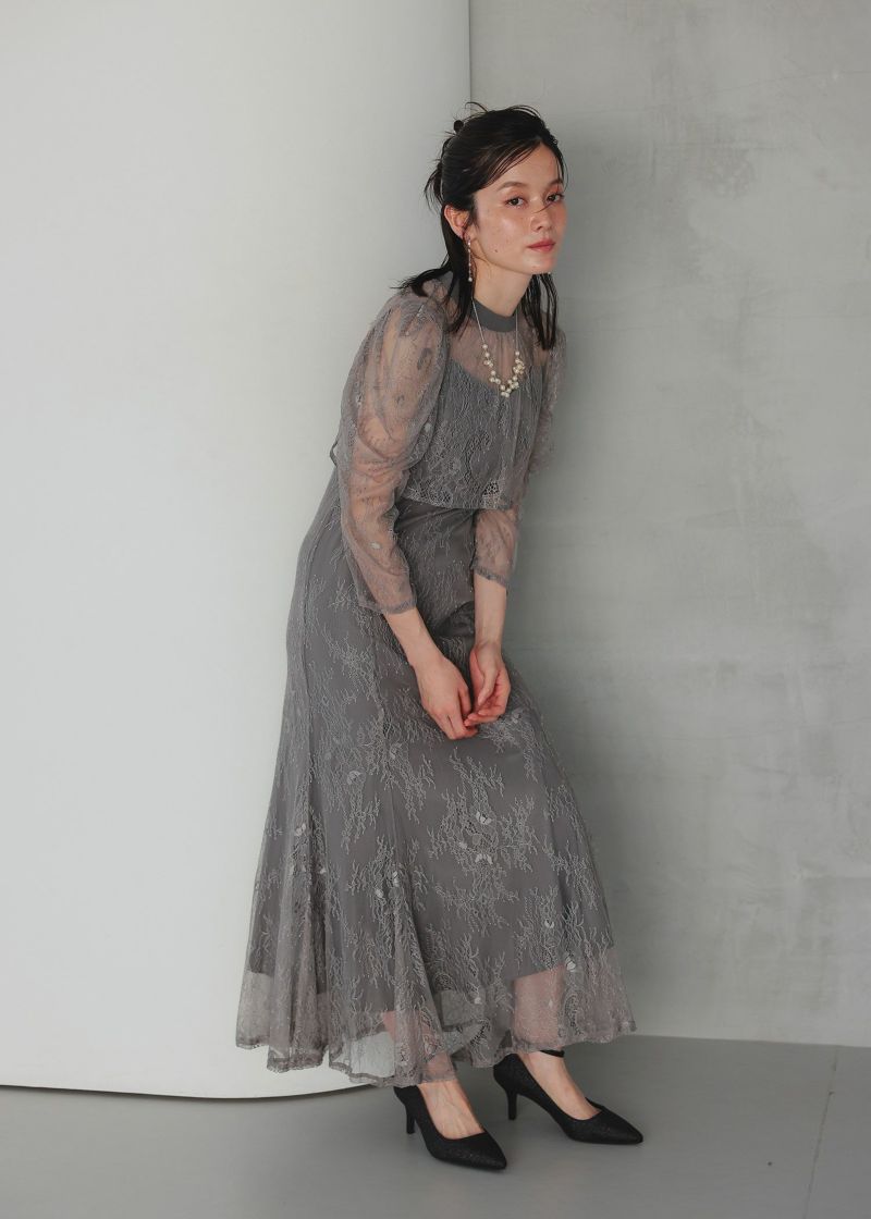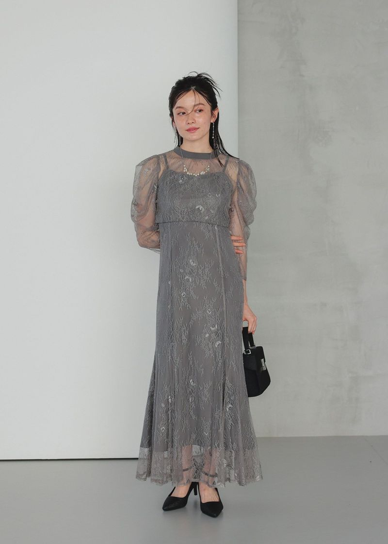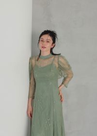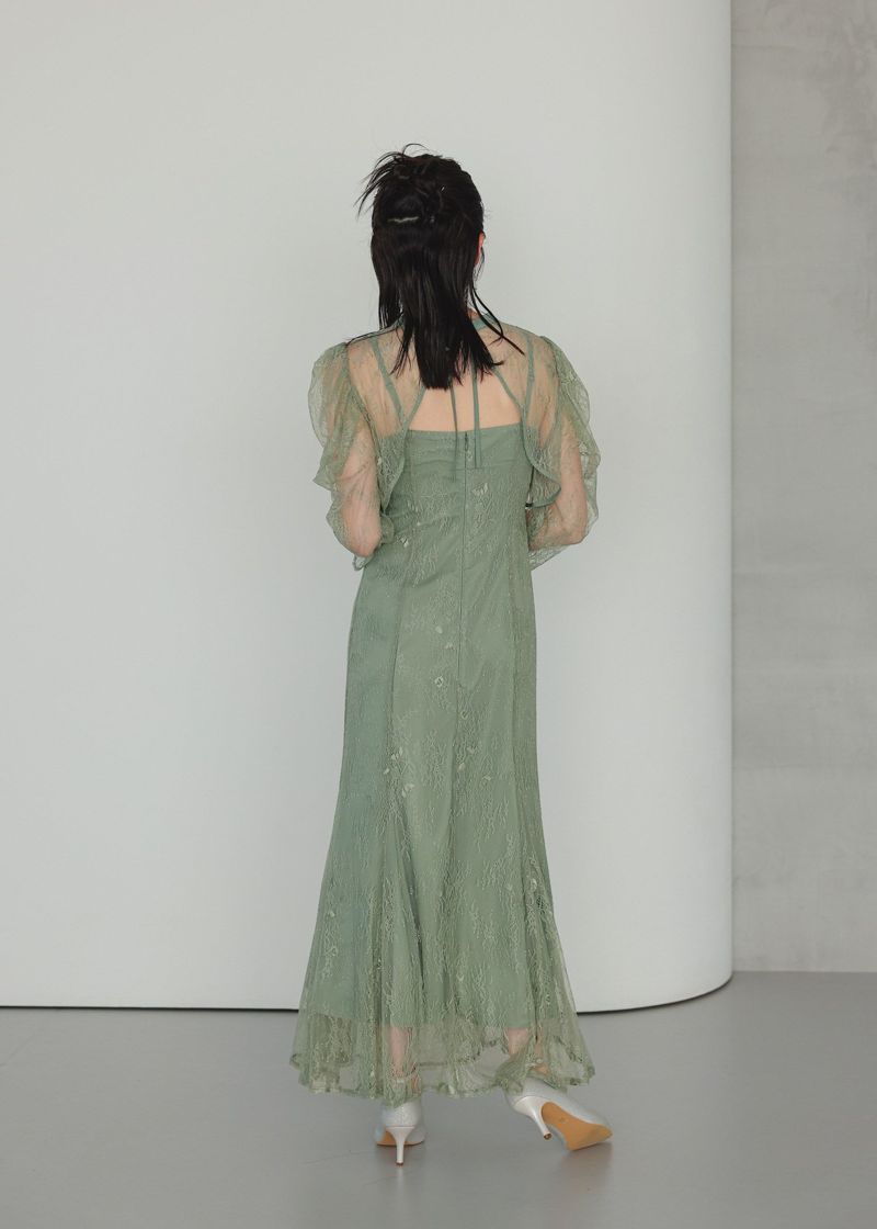 シンプルなキャミソールドレスに、レースのデザインボレロを合わせたセットアイテム。