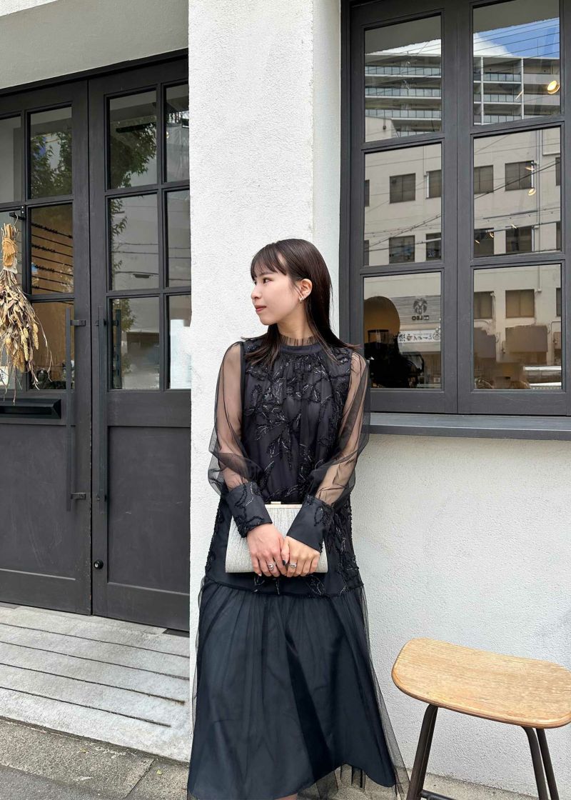 商品説明 立体感のあるフェザー糸とラメ糸を組み合わせたフラワー刺繍がポイントのドレス。 袖部分は無地のチュールを使用することで 上品な透け感を。女性らしさが引き立ち他とは被らない一枚に。 ロングカフスにはフラワー刺繍とクルミボタンを施すことで アンティークなイメージに仕上げました。 動くたびにふんわり広がるスカートに ストンとしたAラインシルエットなので体型をカバーし 着心地も楽ちんです。 シルエットや素材、ディティール一つ一つに拘りが詰まったアイテム。 結婚式や披露宴、二次会など幅広いシーンで大活躍してくれる一着です。 ※エクリュは白っぽいお色味のため、結婚式お呼ばれ以外のシーンにおすすめです。 ※花嫁さんの二次会などにもおすすめです? ※商品画像は、光の当たり具合やパソコンなどの閲覧環境により、 実際の色味と異なって見える場合がございます。予めご了承ください。 おすすめのシーン 結婚式・披露宴・二次会・同窓会・謝恩会など 多様なシーンのコーディネートに使えます。 商品詳細 【備考】 ・裏地あり ・伸縮性なし ・光沢なし ・袖に透け感 ・後ろ中心ファスナー 洗濯方法:クリーニング店にご相談ください。 ※その他お取り扱いに関しましては、商品に付属のアテンションタグをご覧ください。 原産国:中国 グレー着用SNAP身長165cm ブラック着用SNAP身長158cm エクリュ着用SNAP身長158cm