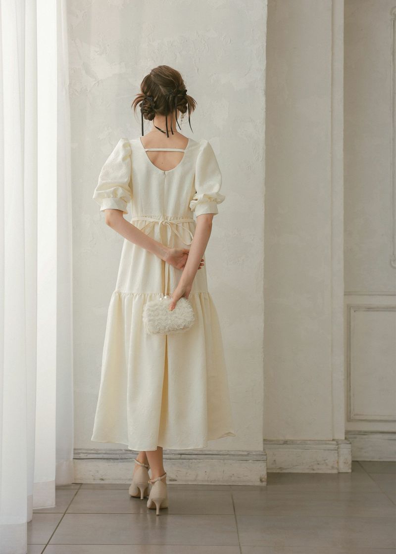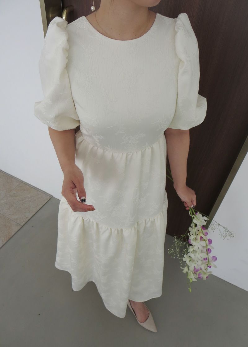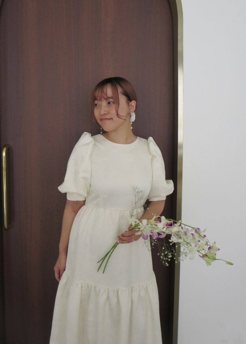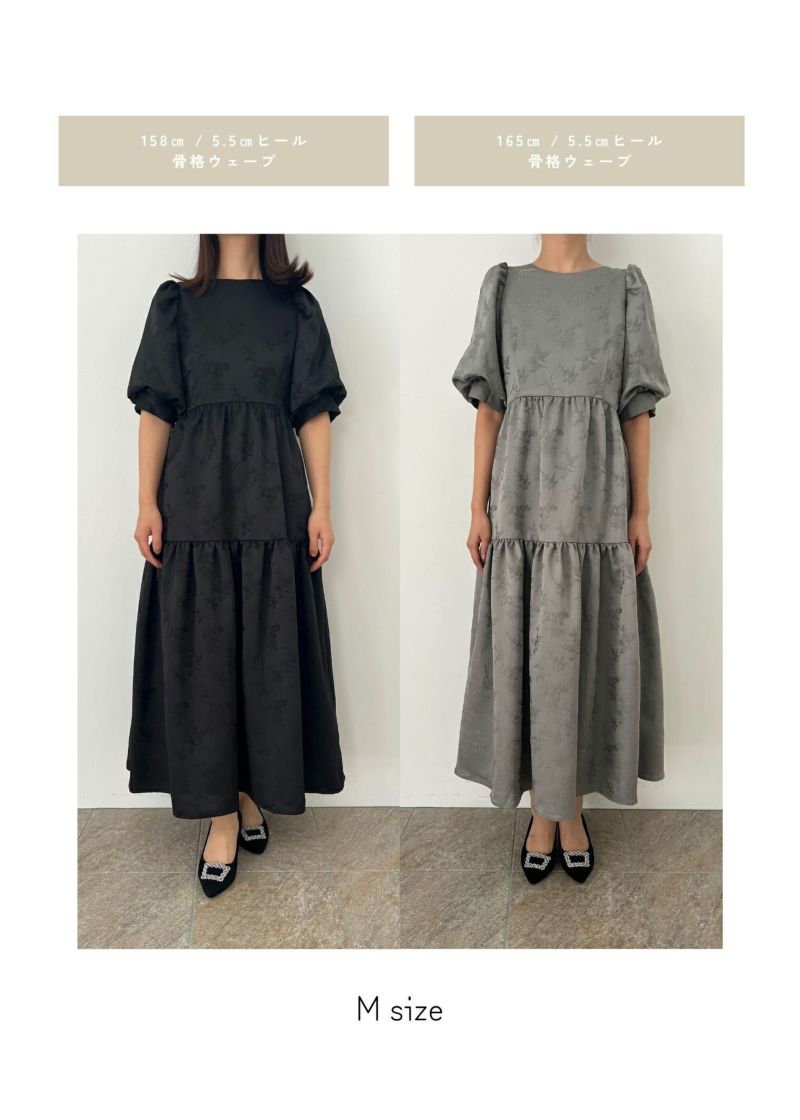 商品説明 ヴィンテージライクな雰囲気を醸し出すオケージョンドレス。 ジャガード素材とティアードデザインが大人らしい印象に。 動くたびにふわっと広がるAラインシルエットが体型カバーになり、 またゆったりとした着心地抜群なのも嬉しいポイント! 裾部分のデザイン切り替えが可愛らしさを感じさせます。 バック部分には紐デザインを施し、ヒトクセ個性をプラス。 フェミニンさと上品さを感じさせてくれる1着に仕上げました? カジュアルな結婚式や、二次会、デート、食事会などの普段使いまで 幅広いシーンに活躍するアイテムです。 ※エクリュは白っぽいお色味のため、結婚式のおよばれ以外のシーンにおすすめです。 ※エクリュは花嫁さんの二次会や前撮りなどにもおすすめです。 ※ハンガー掛けの商品画像が実際の商品のお色味に近くなっております。 ※商品画像は、光の当たり具合やパソコンなどの閲覧環境により、 実際の色味と異なって見える場合がございます。予めご了承ください。 モデル着用サイズ 172cm/Mサイズ おすすめのシーン カジュアルな結婚式・二次会・お呼ばれ・成人式・同窓会・ 女子会・謝恩会 パーティー・演奏会・お食事会など多様なシーンのコーディネートに使えます。 商品詳細 【備考】 ・裏地付き ・伸縮性なし ・透け感なし ・バックファスナー仕様 洗濯方法:クリーニング店にご相談ください。 ※その他お取り扱いに関しましては、商品に付属のアテンションタグをご覧ください。 原産国:中国 お問い合わせ品番:25558 着用モデル身長172cm