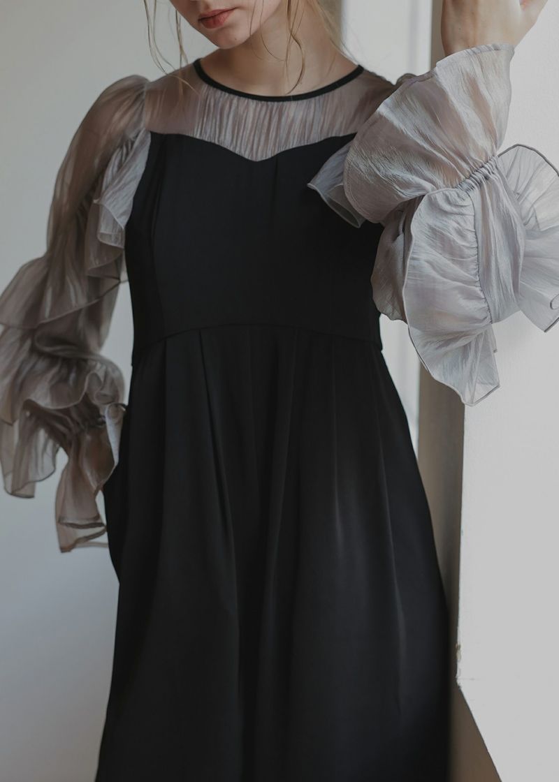 材質 <表地> サテン部分 ポリエステル 98% ポリウレタン 2% シフォン部分 ポリエステル100% <別布> チュール部分 ポリエステル 100% <裏地> ポリエステル100% 厚地 薄地 透ける 透けない 柔らかい 固い 光沢 マット 洗濯方法:クリーニング店にご相談ください。 ※その他お取り扱いに関しましては、商品に付属のアテンションタグをご覧ください。