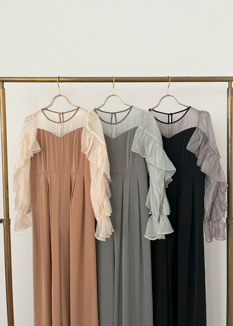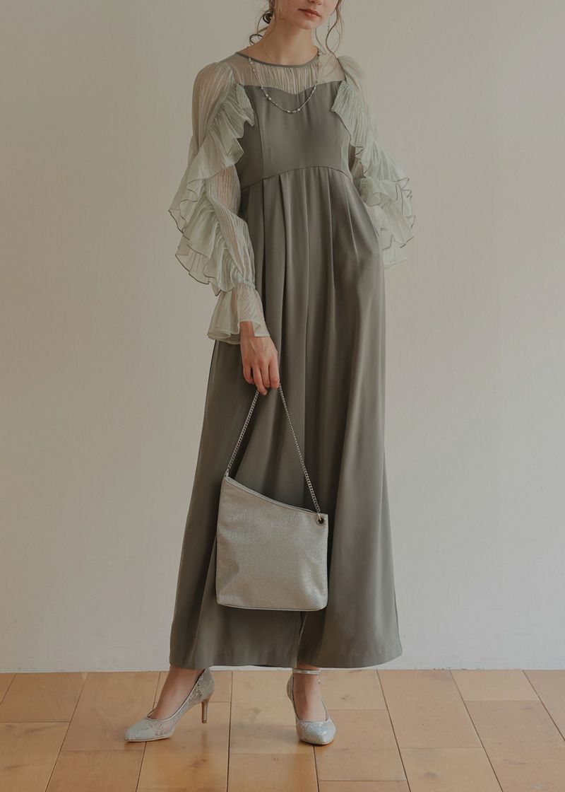 商品説明 シアーフリルの袖が華やかさを引き立てるパンツドレス トレンドのフリルデザインがモードな雰囲気を漂わせます。 また、肩回りや二の腕の華奢見せを叶えてくれるのも嬉しいポイント。 デコルテや袖の程よいシアー感が、上品な肌見せをかなえ、 女性らしさと華やかさを演出します。 胸元のハートカットもさり気ない可愛らしさを引き立てるポイントです。 パンツのシルエットは程よい筒の太さで、きれいめに仕上げました。 身体のラインを拾わないのも嬉しいポイント 素材は、微光沢の中肉厚サテンで高級感を感じさせます。 ※商品画像は、光の当たり具合やパソコンなどの閲覧環境により、 実際の色味と異なって見える場合がございます。予めご了承ください。 おすすめのシーン 結婚式・披露宴・二次会・同窓会・謝恩会など 多様なシーンのコーディネートに使えます。 商品詳細 【備考】 ・裏地付き ・伸縮性なし ・透け感なし ・袖に透け感あり ・後ろ中心ファスナー ・後ろウエストゴム入り ・ポケットあり 洗濯方法:クリーニング店にご相談ください。 ※その他お取り扱いに関しましては、商品に付属のアテンションタグをご覧ください。 原産国:中国 お問い合わせ品番: 着用モデル身長cm