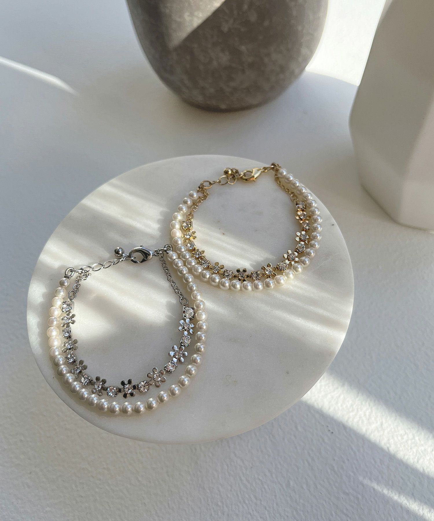 商品説明 【結婚式・謝恩会・お呼ばれ対応アクセサリー】 女性らしい優雅な雰囲気のあるフラワーモチーフとパールの2連ブレスレット 煌めくストーン付きのフラワーモチーフと品のあるパールで、手元に華やかな印象に。 どんなドレスにも合わせやすいシンプルなデザインで、1点持っていると活躍すること間違いなし。 同シリーズのイヤリングとセットで着用することで、統一感が出せるのでおすすめのアイテムになっています。 (イヤリング:24849) ※商品画像は、照明や光の当たり具合やパソコンなどの閲覧環境により、実際の色味と異なって見える場合がございます。予めご了承ください。 ※商品の色味の目安は、商品単体の画像をご参照ください。 おすすめのシーン 結婚式・2次会(二次会)・1.5次会・披露宴・お呼ばれ・成人式・同窓会・謝恩会・パーティー 女子会・デート・演奏会・発表会・食事会・学校行事などのセレモニーシーンなど、フォーマルからカジュアルシーンまで、多様なシーンのコーディネートにご使用いただけます。 商品詳細 素材:真鍮,プラスチック,ガラス 原産国:日本製 お問い合わせ品番:24854
