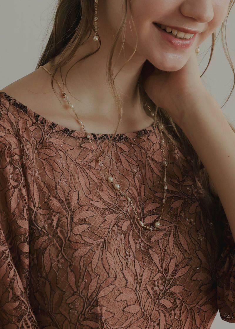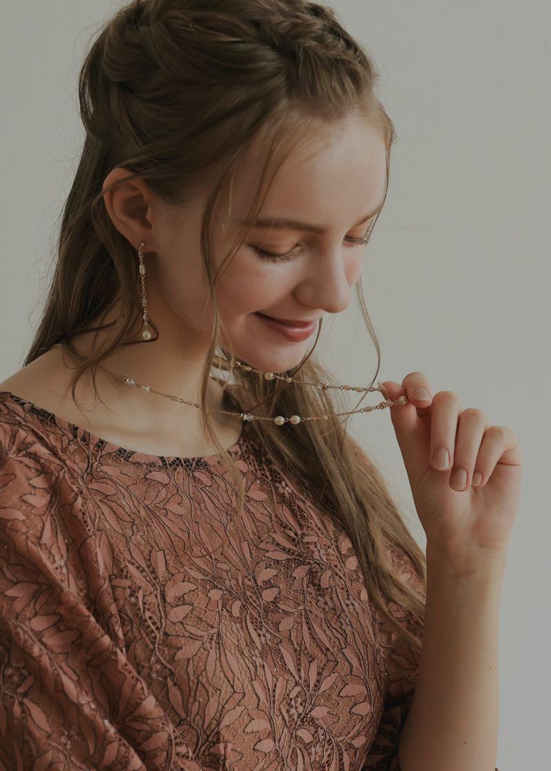 また、ドレスはもちろんの事、きれいめなニットなどにも合わせやすく