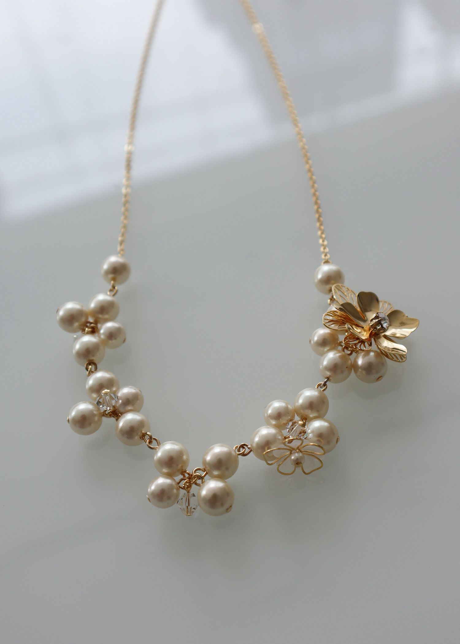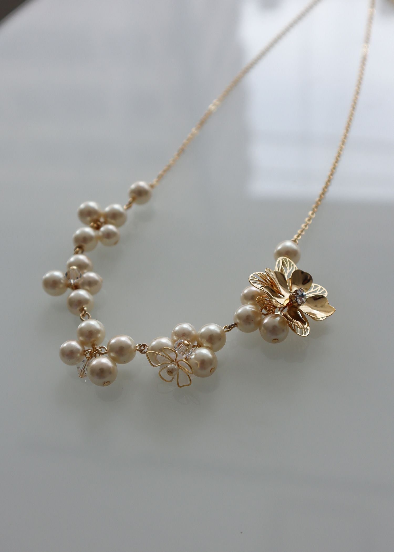 商品説明 ベーシックなパールのネックレスに 小さな花が咲いたかのようなモチーフがアクセント。 程よい存在感と、さりげなく可愛らしさを添えてくれるデザインです。 上品見えするゴールドとシックにまとめてくれるシルバーの2色展開で パーティーやオケージョンなどの華やかなシーンにぴったりなアイテムです。 ※商品画像は、照明や光の当たり具合やパソコンなどの閲覧環境により、実際の色味と異なって見える場合がございます。予めご了承ください。 ※商品の色味の目安は、商品単体の画像をご参照ください。 おすすめのシーン 結婚式・2次会(二次会)・1.5次会・披露宴・お呼ばれ・成人式・同窓会・謝恩会・パーティー 女子会・デート・演奏会・発表会・食事会・学校行事などのセレモニーシーンなど、フォーマルからカジュアルシーンまで、多様なシーンのコーディネートにご使用いただけます。 商品詳細 原産国:日本 お問い合わせ品番:25424