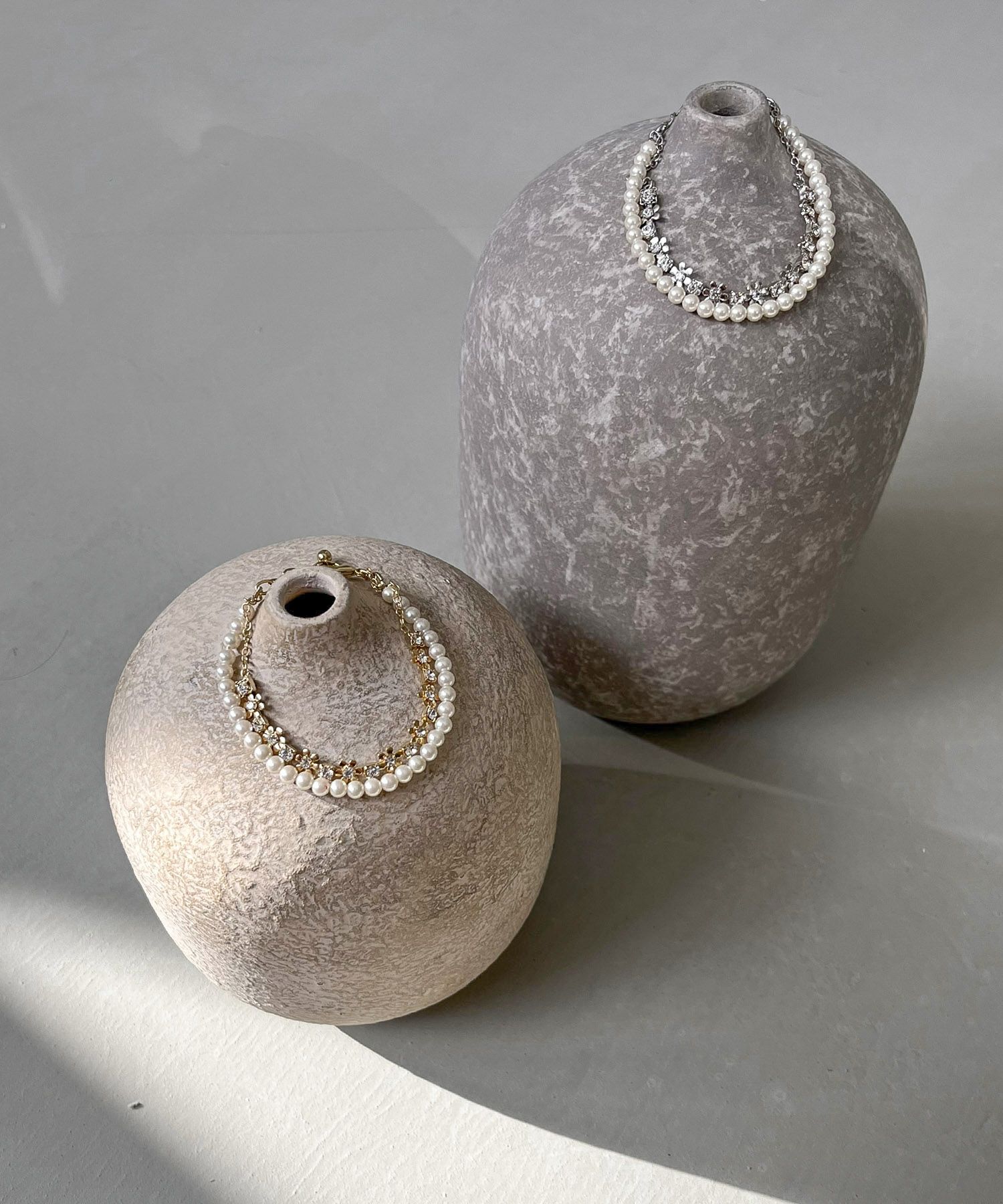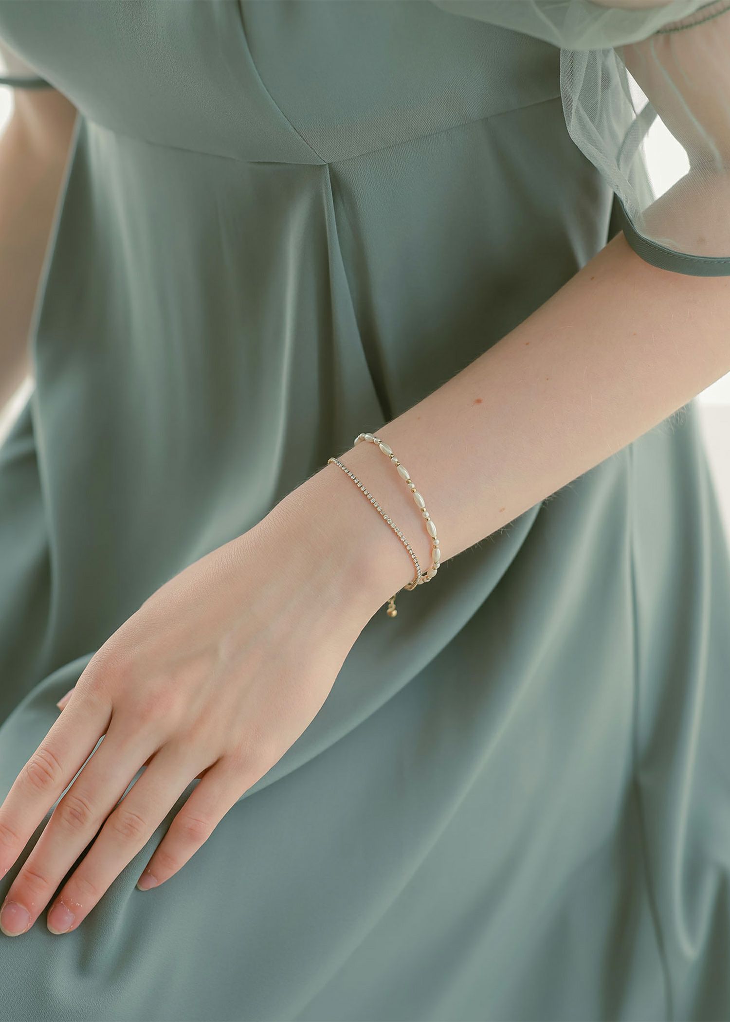 楕円パールビジュー2連ブレスレット