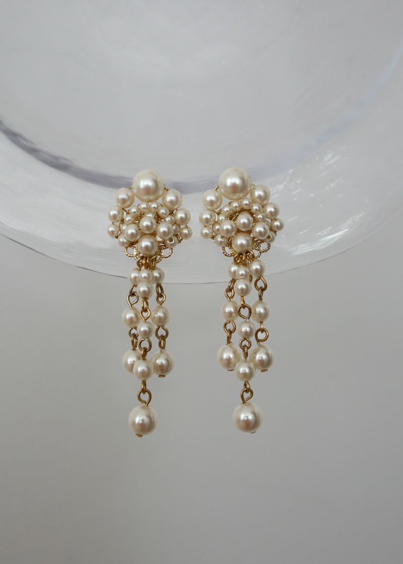 華やかなパーティーシーンにおしゃれなアクセントを与えてくれるパールのイヤリング♪