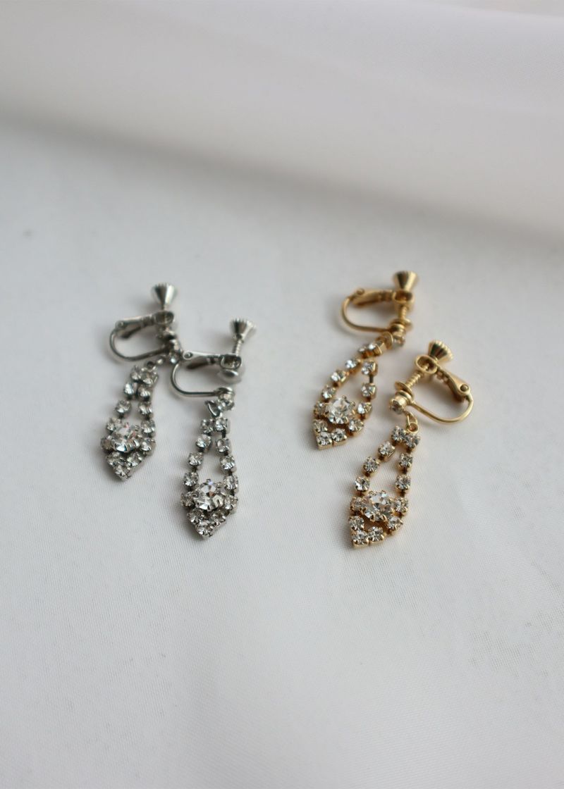 商品説明 大人気のロングセラー商品!どんなドレスにも合わせやすいデザインで、1点持っていると活躍する事間違いなし! 結婚式・結婚式の二次会・謝恩会・お食事会・女子会 等、フォーマルシーンからセミフォーマルシーンまで、華やかな場面にぴったりです。4884のブレスレットや、4883のネックレスと共通デザインなので、セットでご着用いただくのもおすすめです。※商品のカラーは照明の関係で実物と多少の違いが生じることがございます。※金属アレルギーの方には【非対応】のメッキを使用しています。 商品詳細原産国:日本素材ガラス、合金