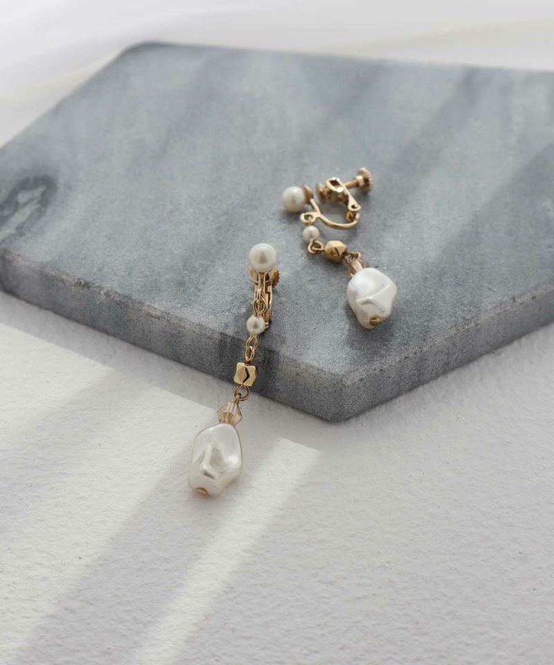 商品説明 【結婚式・謝恩会・お呼ばれ対応アクセサリー】 上品かつ優雅な印象を与えてくれるバロックパールのイヤリング。 品のあるシンプルなバロックパールが顔周りに華やかさを際立たせてくれます。 どんなドレスにも合わせやすいデザインで、1点持っていると活躍すること間違いなし。 また、〈9453〉のネックレスと合わせて頂くのもおすすめです。 ※商品画像は、照明や光の当たり具合やパソコンなどの閲覧環境により、実際の色味と異なって見える場合がございます。予めご了承ください。 ※商品の色味の目安は、商品単体の画像をご参照ください。 おすすめのシーン 結婚式・2次会(二次会)・1.5次会・披露宴・お呼ばれ・成人式・同窓会・謝恩会・パーティー 女子会・デート・演奏会・発表会・食事会・学校行事などのセレモニーシーンなど、フォーマルからカジュアルシーンまで、多様なシーンのコーディネートにご使用いただけます。 商品詳細 素材:真鍮,ガラス,プラスチック 原産国:日本 お問い合わせ品番:9458