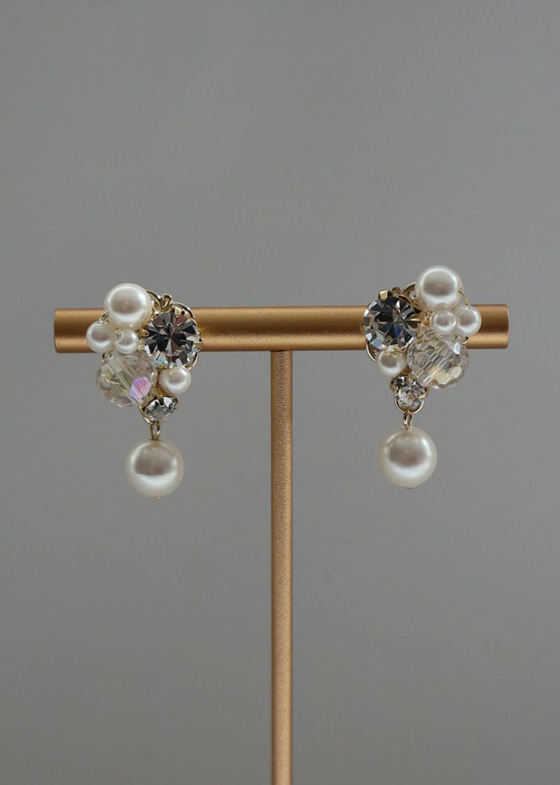 商品説明 立体感のあるフェイクパールと煌めくビジューが華やかなピアス。大小のパールを組み合わせることでより華やかな印象に。普段使いはもちろんパーティーやデートなどにも。結婚式・結婚式の二次会・謝恩会・お食事会・女子会 等、フォーマルシーンからセミフォーマルシーンまで、華やかな場面にぴったりです。※商品のカラーは照明の関係で実物と多少の違いが生じることがございます。※金属アレルギーの方には【非対応】のメッキを使用しています。 商品詳細素材:樹脂パール、合金、ガラス生産国:日本