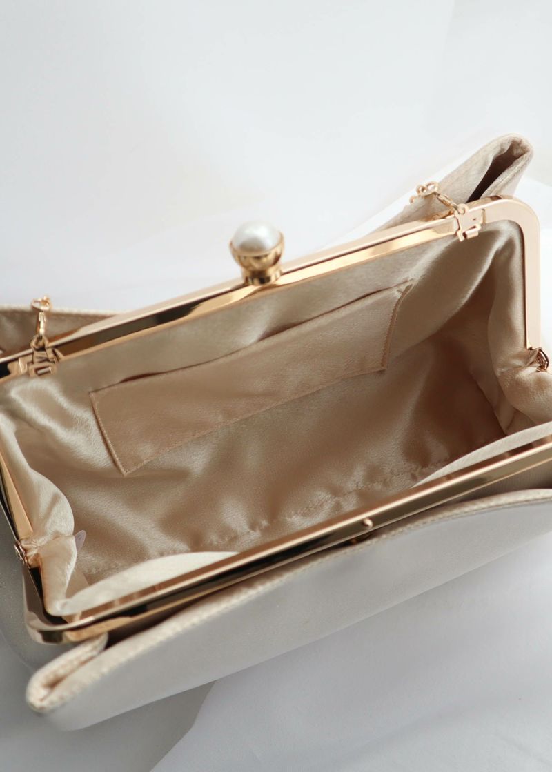 商品説明 《結婚式・お呼ばれ対応・ハンドバッグ》 がま口のパールチャームが目を惹くバッグ シンプルなデザインですが、生地には微細なラメが織り込まれており、 上品なきらめきがさりげない華やかさを感じさせます。 口部分は大きく開くことができ、お持ちのアイテムの出し入れもしやすく、 底マチがあり必需品もしっかり入るサイズ感になっております。 またご祝儀袋も綺麗に入れることが可能でございます。 取り外し可能なチェーンが2本(長いものと短いもの)付属しており クラッチ・ハンド・ショルダーバッグとしてもご使用いただけます。 どんなドレスにも合わせやすいデザインのアイテムです。 ※商品画像は、光の当たり具合やパソコンなどの閲覧環境により、実際の色味と異なって見える場合がございます。予めご了承ください。 おすすめのシーン 結婚式・披露宴・披露宴・成人式・同窓会 女子会・謝恩会パーティー・演奏会・発表会など多様なシーンのコーディネートに使えます。 商品詳細 【素材】 表地 ポリエステル100% 裏地 ポリエステル100% 原産国:中国 お問い合わせ品番:24992 【備考】 ・付属品:56cmチェーン/115cmチェーン ・チェーン取り外し可能