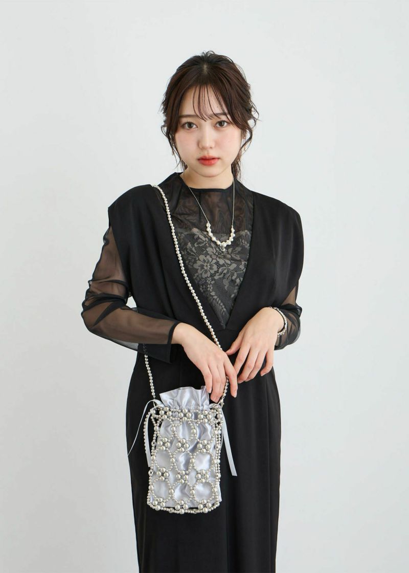 商品説明 《結婚式・お呼ばれ対応・ハンドバッグ》 パールで編み曲げた華やかなバッグ アクセサリー感覚で持てる、印象的なアイテムです。 サテンの巾着が付いているので、荷物が透けて見えることなくをすっきりと収納できます。 ロングのショルダーチェーンは取り外し可能なので、コーデに合わせて持ち方を変えられます。 結婚式などの華やかなパーティーシーンにはもちろんの事、カジュアルなスタイルにアクセントとして合わせて頂くのもおすすめな1点です。 オケージョンシーンを華やかに彩るアイテムです。 ※商品画像は、光の当たり具合やパソコンなどの閲覧環境により、実際の色味と異なって見える場合がございます。予めご了承ください。 おすすめのシーン 結婚式・披露宴・披露宴・成人式・同窓会 女子会・謝恩会パーティー・演奏会・発表会など多様なシーンのコーディネートに使えます。 商品詳細 【素材】 表地 ポリエステル100% 裏地 ポリエステル100% 原産国:中国 お問い合わせ品番:24993 【備考】 ・付属品:パールチェーン付 ・チェーン取り外し可能