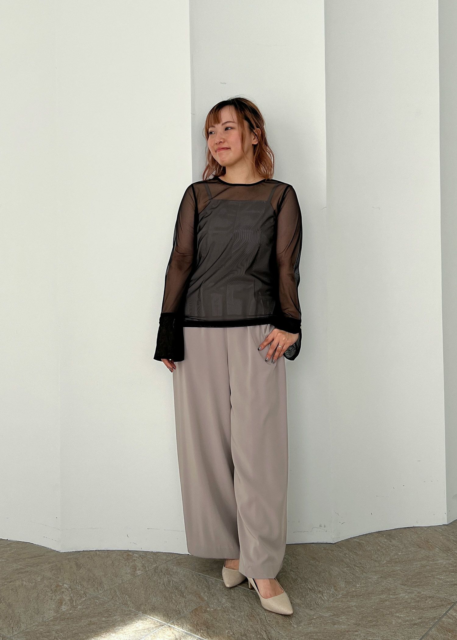 商品説明 ドレスのインナーや私服使いにもぴったりなトップス。 柔らかい素材感でお作りしている為、ノンストレスでご着用可能です。 袖のカフス部分にはゴールドボタンを施し、ぬかりないデザインさを追及しました。 キャミドレスのインナーや、セットアップアイテムと合わせて頂くのがおすすめです。 また、デニムなどデイリーなコーデにも合わせやすいアイテムです。 1着持っているとコーディネートに幅をもたらします♩ また、真夏以外は通年通して着用いただけるアイテムとなっております。 ※ハンガー掛けの商品画像が実際の商品のお色味に近くなっております。 ※商品画像は、光の当たり具合やパソコンなどの閲覧環境により、 実際の色味と異なって見える場合がございます。予めご了承ください。 モデル着用サイズ 172cm/Mサイズ おすすめのシーン カジュアルな結婚式・二次会・お呼ばれ・成人式・同窓会・ 女子会・謝恩会 パーティー・演奏会・お食事会など多様なシーンのコーディネートに使えます。 商品詳細 【備考】 ・裏地なし ・伸縮性あり ・透け感あり ・バック部分涙開き仕様 ・袖部分、ゴールドボタンデザインあり 洗濯方法:クリーニング店にご相談ください。 ※その他お取り扱いに関しましては、商品に付属のアテンションタグをご覧ください。 原産国:中国 お問い合わせ品番:25168 着用モデル身長172cm 着丈肩幅バストウエスト袖丈 M633590--61 単位(cm) ▼着用サイズ全てMsize model 172cm staff 153㎝/ブラック staff 158㎝/エクリュ 着丈ガイド REVIEW レビュー Dorry Doll フレアスリーブシアートップス 当店特別価格 ¥ 6,490 税込 商品番号 25168 レビューを書く [ 59 ポイント進呈 ] 本日09時00分までのご注文でに佐川急便でお届けします。 この地域へのお届け日は表示できません 大阪府 お届け先を変更 coming soon 99_ブラック M 在庫切れ お気に入りに登録する 再入荷お知らせ 05_ベージュ M 在庫切れ お気に入りに登録する 再入荷お知らせ 商品についてのお問い合わせ 商品詳細 商品説明 ドレスのインナーや私服使いにもぴったりなトップス。 柔らかい素材感でお作りしている為、ノンストレスでご着用可能です。 袖のカフス部分にはゴールドボタンを施し、ぬかりないデザインさを追及しました。 キャミドレスのインナーや、セットアップアイテムと合わせて頂くのがおすすめです。 また、デニムなどデイリーなコーデにも合わせやすいアイテムです。 1着持っているとコーディネートに幅をもたらします♩ また、真夏以外は通年通して着用いただけるアイテムとなっております。 ※ハンガー掛けの商品画像が実際の商品のお色味に近くなっております。 ※商品画像は、光の当たり具合やパソコンなどの閲覧環境により、 実際の色味と異なって見える場合がございます。予めご了承ください。 モデル着用サイズ 172cm/Mサイズ おすすめのシーン カジュアルな結婚式・二次会・お呼ばれ・成人式・同窓会・ 女子会・謝恩会 パーティー・演奏会・お食事会など多様なシーンのコーディネートに使えます。 商品詳細 【備考】 ・裏地なし ・伸縮性あり ・透け感あり ・バック部分涙開き仕様 ・袖部分、ゴールドボタンデザインあり 洗濯方法:クリーニング店にご相談ください。 ※その他お取り扱いに関しましては、商品に付属のアテンションタグをご覧ください。 原産国:中国 お問い合わせ品番:25168 着用モデル身長172cm 素材 材質 本体 ポリエステル100% 別布 ポリエステル100% 厚地 薄地 透ける 透けない 柔らかい 固い 光沢 マット 洗濯方法:クリーニング店にご相談ください。 ※その他お取り扱いに関しましては、商品に付属のアテンションタグをご覧ください。 サイズ 着丈肩幅バストウエスト袖丈 M633590--61 単位(cm) ▼着用サイズ全てMsize model 172cm staff 153㎝/ブラック staff 158㎝/エクリュ 着丈ガイド REVIEW レビュー RECOMMENDATIONあなたへのおすすめアイテム HISTORY最近チェックしたアイテム