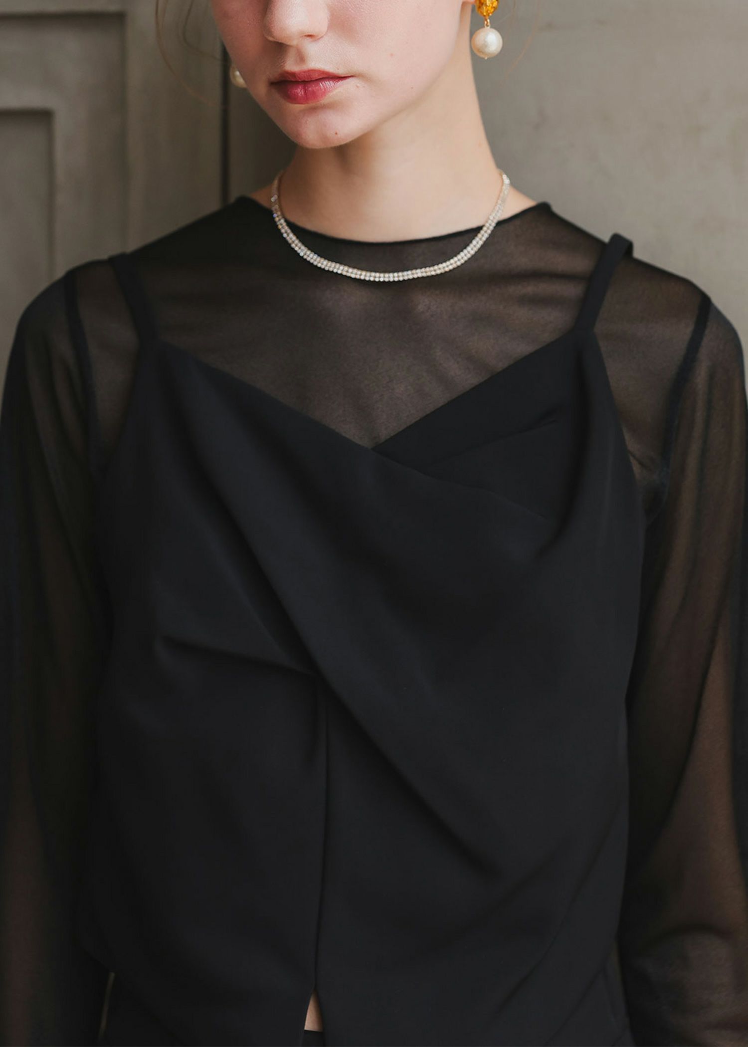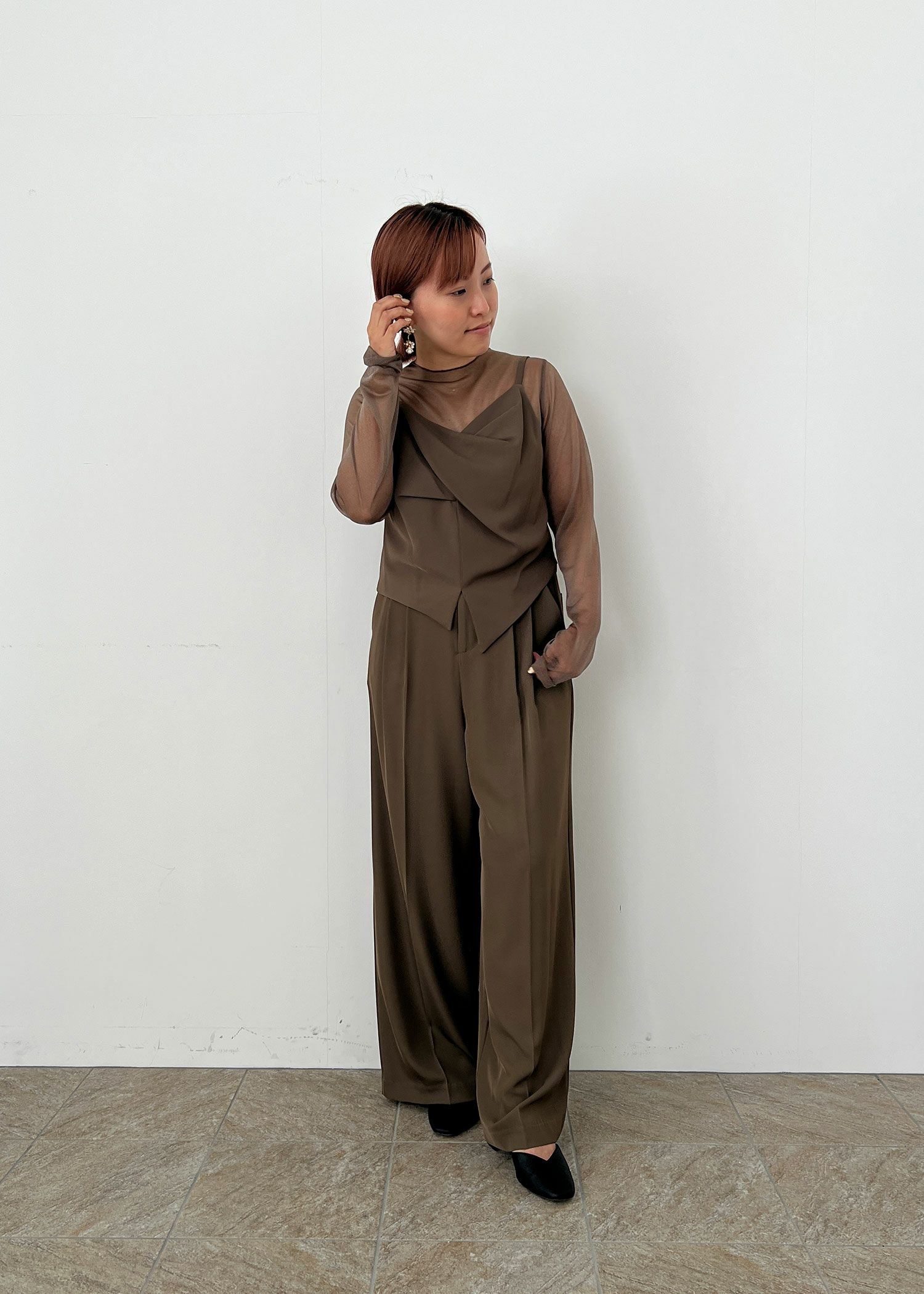 商品説明 1枚さらっと着るだけでコーデがまとまるビスチェデザインのトップス シアー部分はグロッシーなラメ感があり ラグジュアリーな質感。 ビスチェは胸元にツイストをあしらい、目を惹くポイントに。 裾部分はイレギュラーなラインで、モード感あふれる他には無いデザインです。 シアー部分とビスチェはドッキングされているので、 1枚でさらっと着るだけで、レイヤード風のスタイルが完成します。 ショート丈でスタイルアップ効果も◎ 低身長の方でもバランスよく着こなしていただける丈感です。 バックスタイルはクルミボタンを飾り、後ろ姿までおしゃれなトップスです。 ファスナーが、後ろ中心、脇の2か所に付いているので 着脱もらくらく。 【セットアップ対応】 ・ダブルテーラードジャケット(24331) ・2WAYサスペンダーワイドパンツ(24332) ※エクリュは白っぽいお色味のため、結婚式のおよばれ以外のシーンにおすすめです。 ※ハンガー掛けの商品画像が実際の商品のお色味に近くなっております。 ※商品画像は、光の当たり具合やパソコンなどの閲覧環境により、 実際の色味と異なって見える場合がございます。予めご了承ください。 モデル着用サイズ 174cm/Mサイズ おすすめのシーン カジュアルな結婚式・二次会・お呼ばれ・成人式・同窓会・ 女子会・謝恩会 お食事会・普段使いなど多様なシーンのコーディネートに使えます。 商品詳細 【備考】 ・伸縮性なし ・裏地付き ・ファスナー付き(背中心・脇部分 計2か所) 洗濯方法:クリーニング店にご相談ください。 ※その他お取り扱いに関しましては、商品に付属のアテンションタグをご覧ください。 原産国:中国 お問い合わせ品番:25172 着用モデル身長--cm 着丈肩幅バスト肩幅袖丈 M43358643-- 単位(cm) ▼着用サイズ全てMsize 外国人着用モデル身長 174cm 全てのカラー着用SNAP身長153cm 着丈ガイド REVIEW レビュー Dorry Doll ビスチェドッキングトップス 当店特別価格 ¥ 10,780 税込 商品番号 25172 【セットアップ対応アイテム】 ・ダブルテーラードジャケット(24331) ・2WAYサスペンダーワイドパンツ(24332) レビューを書く [ 98 ポイント進呈 ] 本日09時00分までのご注文で2026/01/22(木)に佐川急便でお届けします。 この地域へのお届け日は表示できません 大阪府 お届け先を変更 60_ブラウン M 残りわずか お気に入りに登録する カートに入れる 79_チャコール M 残りわずか お気に入りに登録する カートに入れる 02_エクリュ M 残りわずか お気に入りに登録する カートに入れる 99_ブラック M 残りわずか お気に入りに登録する カートに入れる 商品についてのお問い合わせ 商品詳細 商品説明 1枚さらっと着るだけでコーデがまとまるビスチェデザインのトップス シアー部分はグロッシーなラメ感があり ラグジュアリーな質感。 ビスチェは胸元にツイストをあしらい、目を惹くポイントに。 裾部分はイレギュラーなラインで、モード感あふれる他には無いデザインです。 シアー部分とビスチェはドッキングされているので、 1枚でさらっと着るだけで、レイヤード風のスタイルが完成します。 ショート丈でスタイルアップ効果も◎ 低身長の方でもバランスよく着こなしていただける丈感です。 バックスタイルはクルミボタンを飾り、後ろ姿までおしゃれなトップスです。 ファスナーが、後ろ中心、脇の2か所に付いているので 着脱もらくらく。 【セットアップ対応】 ・ダブルテーラードジャケット(24331) ・2WAYサスペンダーワイドパンツ(24332) ※エクリュは白っぽいお色味のため、結婚式のおよばれ以外のシーンにおすすめです。 ※ハンガー掛けの商品画像が実際の商品のお色味に近くなっております。 ※商品画像は、光の当たり具合やパソコンなどの閲覧環境により、 実際の色味と異なって見える場合がございます。予めご了承ください。 モデル着用サイズ 174cm/Mサイズ おすすめのシーン カジュアルな結婚式・二次会・お呼ばれ・成人式・同窓会・ 女子会・謝恩会 お食事会・普段使いなど多様なシーンのコーディネートに使えます。 商品詳細 【備考】 ・伸縮性なし ・裏地付き ・ファスナー付き(背中心・脇部分 計2か所) 洗濯方法:クリーニング店にご相談ください。 ※その他お取り扱いに関しましては、商品に付属のアテンションタグをご覧ください。 原産国:中国 お問い合わせ品番:25172 着用モデル身長--cm 素材 材質 表地 ポリエステル 97% ポリウレタン 3% 別地 ポリエステル100% 裏地 ポリエステル100% 厚地 薄地 透ける 透けない 柔らかい 固い 光沢 マット 洗濯方法:クリーニング店にご相談ください。 ※その他お取り扱いに関しましては、商品に付属のアテンションタグをご覧ください。 サイズ 着丈肩幅バスト肩幅袖丈 M43358643-- 単位(cm) ▼着用サイズ全てMsize 外国人着用モデル身長 174cm 全てのカラー着用SNAP身長153cm 着丈ガイド REVIEW レビュー RECOMMENDATIONあなたへのおすすめアイテム HISTORY最近チェックしたアイテム