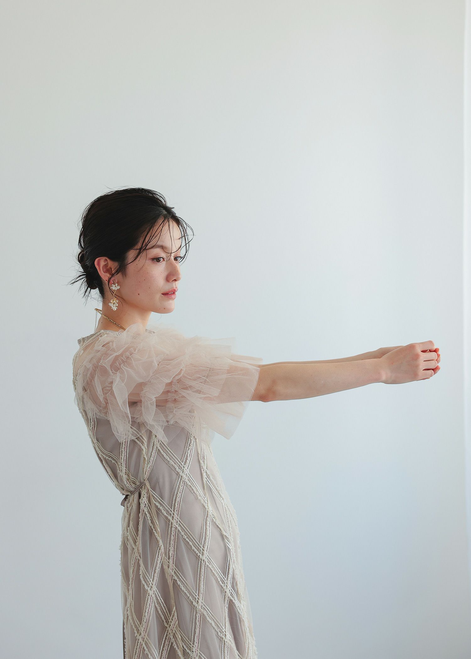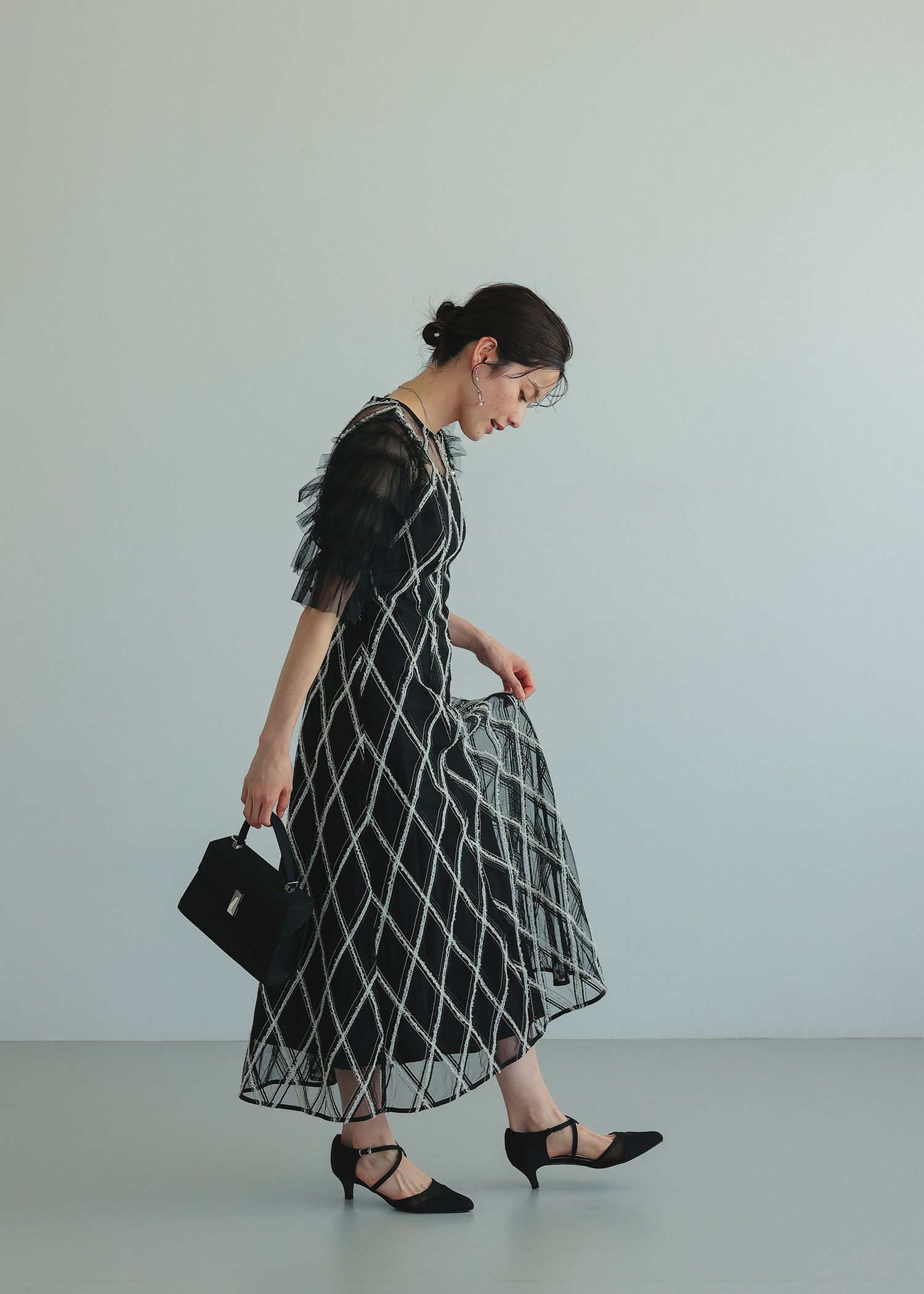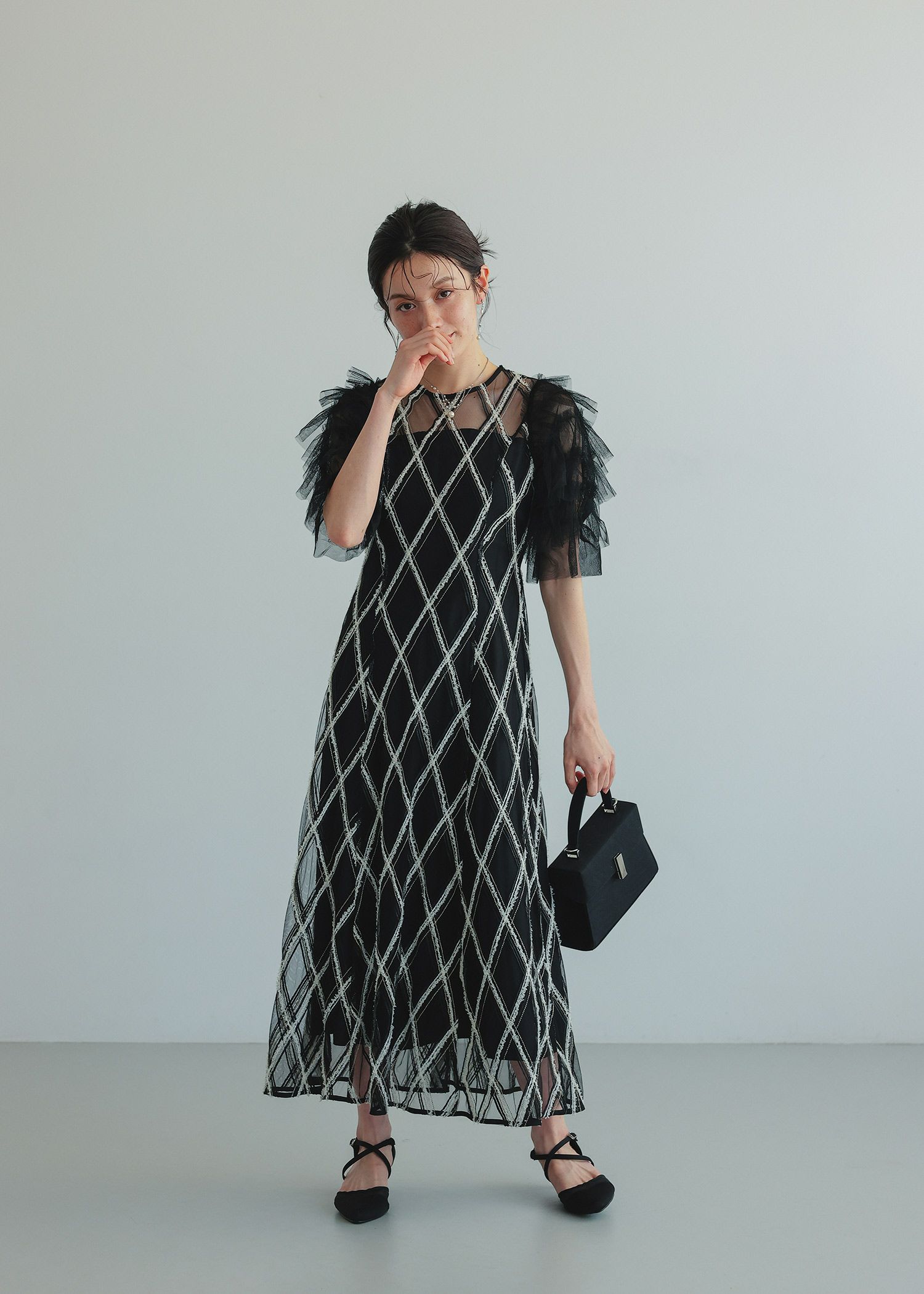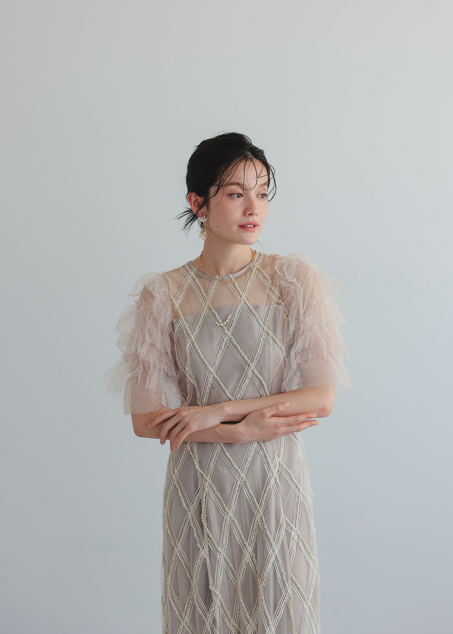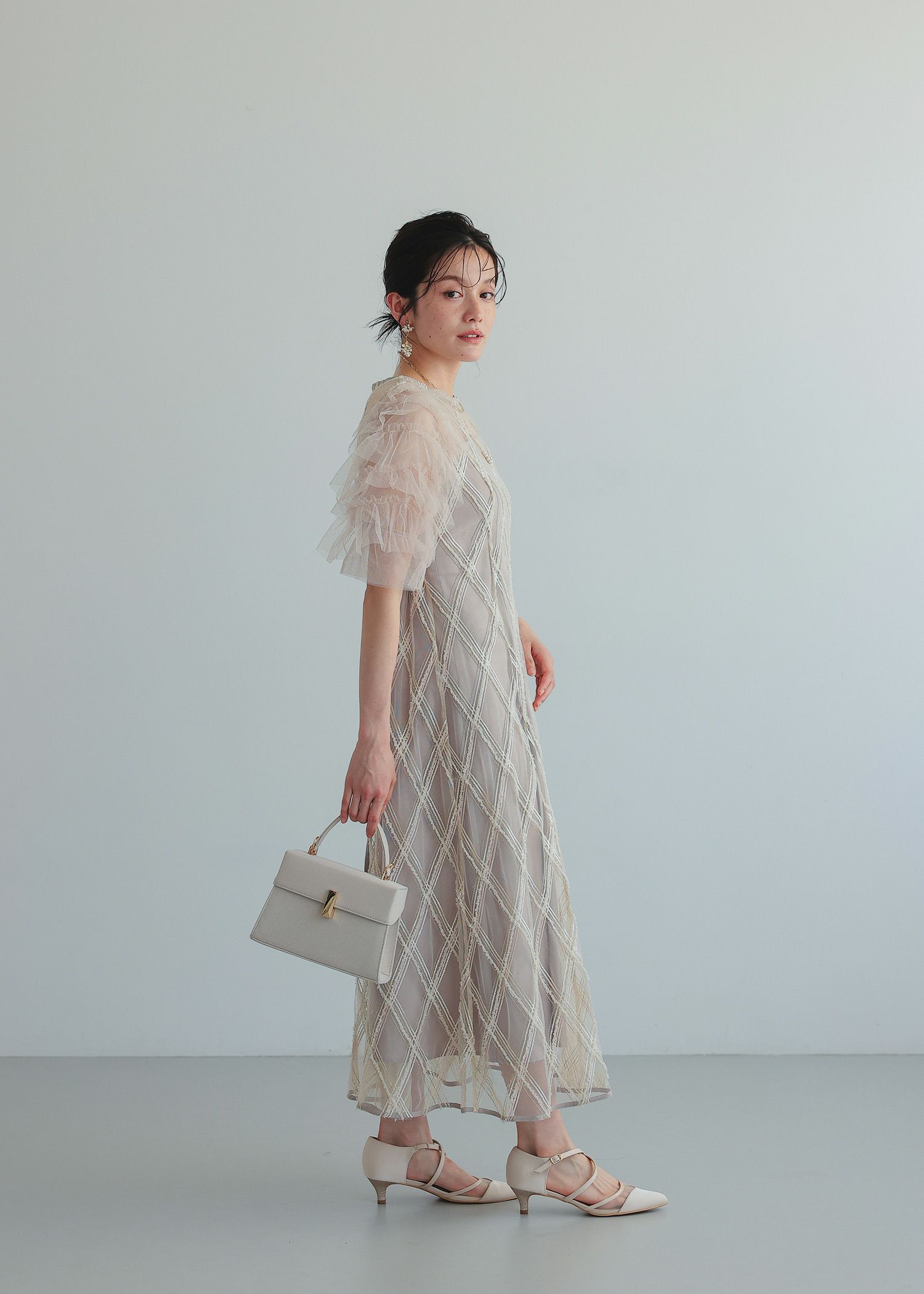商品説明 大振りなチェック柄が目を惹くドレス。 柄部分は、モール糸やラメ糸を使用し立体感のある華やかな表情に。 チュールフリルを重ねたふんわりとした袖も、華やかさをプラスしてくれる要素です。 また、気になる肩幅や二の腕をカバーしてくれるのも嬉しいポイント。 デコルテやフリル袖部分のチュールのシアー感が 首元や肩回りをすっきりとみせてくれ、垢抜けた印象に。 スカートのシルエットは控えめなAラインで、かわいくなり過ぎずすっきりと見せてくれます。 ウエスト部分にあしらわれた細身のリボンは、後ろ姿までおしゃれに見せてくれるアクセントです。 可愛らしさの中にもどこかシャープな雰囲気があり、さりげない個性を感じさせてくれるドレスです。 カジュアルな結婚式や披露宴、二次会など幅広いシーンで大活躍してくれる一着です。 ※エクリュは白っぽいお色味のため、結婚式お呼ばれ以外のシーンにおすすめです。 ※花嫁さんの二次会などにもおすすめです♡ ※商品画像は、光の当たり具合やパソコンなどの閲覧環境により、 実際の色味と異なって見える場合がございます。予めご了承ください。 おすすめのシーン 結婚式・披露宴・二次会・同窓会・謝恩会など 多様なシーンのコーディネートに使えます。 商品詳細 【備考】 ・裏地あり ・伸縮性なし ・光沢なし ・デコルテと袖に透け感あり ・後ろ中心ファスナー ・後ろウエストゴム入り 洗濯方法:クリーニング店にご相談ください。 ※その他お取り扱いに関しましては、商品に付属のアテンションタグをご覧ください。 原産国:中国 着丈バストウエストヒップ肩幅袖丈 M:1239074~811053135 単位(cm) ▼着用サイズ 全て M size モデル身長160cm staff着用/身長153cm ( ベージュ ) staff着用/身長160cm ( グレー ) staff着用/身長165cm ( ブラック ) お問い合わせ品番:25642 着丈ガイド REVIEW レビュー