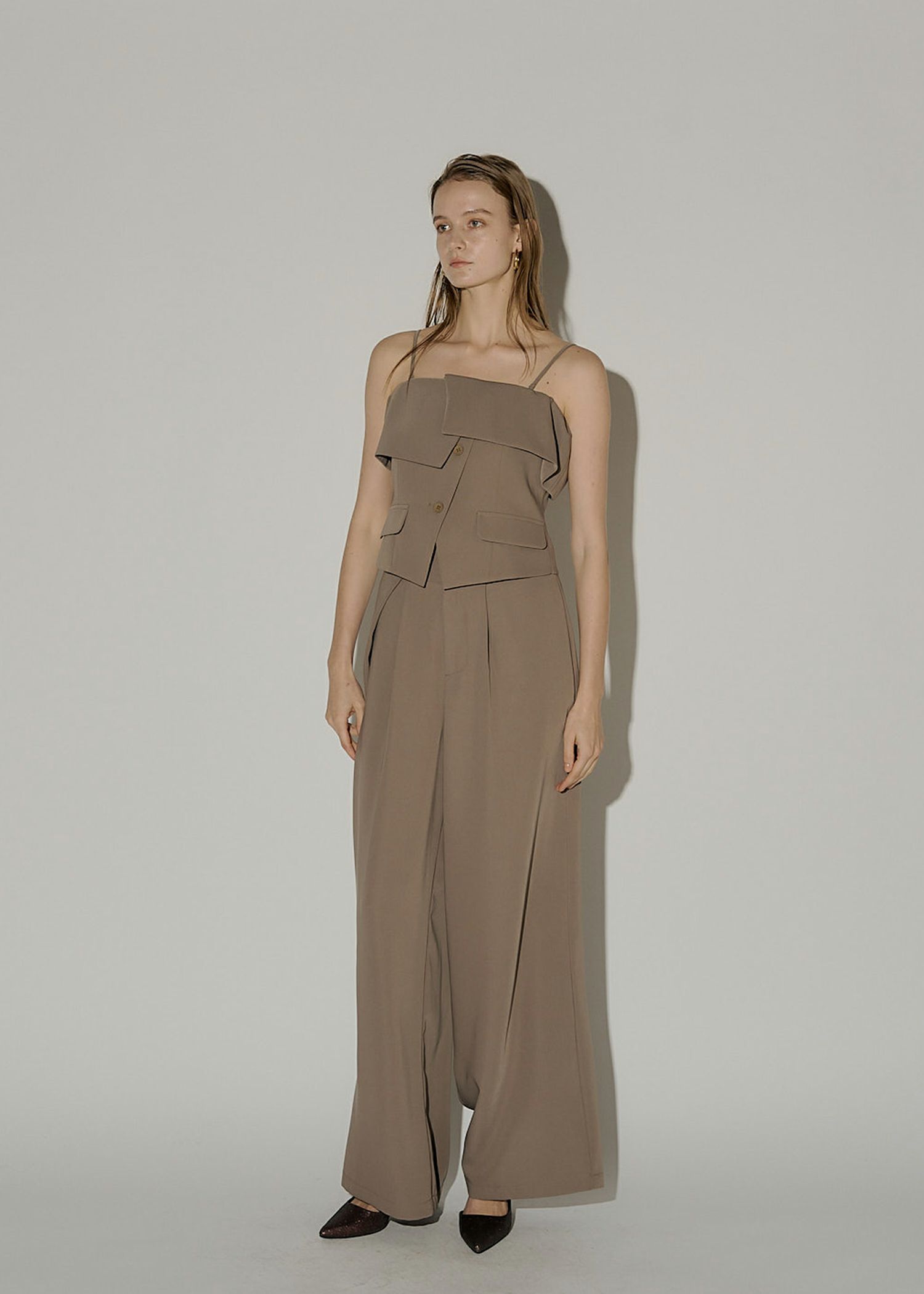 商品説明 マルチウェイなトップスがポイントの LE'RUREらしい都会的モードな3点セットアイテム。 トップスのオフショル部分は襟のようなイレギュラーな細部にこだわり、 ポケットデザインを仕込むことでウエスト位置を高く魅せてくれます。 ビスチェとしてもご着用可能な2wayの仕様 取り外しが可能な肩紐で、様々なシーンに合わせてコーディネートを楽しめます。 パンツはLE'RUREオリジナルのタックデザイン。 ラインを拾わない落ち感のある美しいシルエットを保ちつつ デザイン性のあるワイドパンツに仕上げました。 片方にはポケット付き。ハイウエストでより一層のスタイルアップ効果も期待できます。 セットの柔らかなチュールトップスを合わせてオールシーズンご着用可能に。 フォーマルなシチュエーションでもお使いいただける万能アイテムです。 ※商品画像は、光の当たり具合や端末等の閲覧環境によって、 実際の色味と異なって見える場合がございます。予めご了承ください。 ※画像の商品はサンプルの為、実際の商品とサイズ感が異なっています。 予めご了承ください。 おすすめのシーン 結婚式・二次会・披露宴・成人式・同窓会・ 2次会謝恩会・パーティー・デート・演奏会・お食事会など多様なシーンのコーディネートに使えます。 商品詳細 【備考】 <オフショルトップス> ・裏地あり ・フロントボタン仕様 ・アジャスターにて着丈調節可 ・肩まわりゴム仕様 <チュールトップス> ・胡桃ボタン仕様 <ワイドパンツ> ・バックウエストゴム仕様 ・ポケット付 洗濯方法:クリーニング店にご相談ください。 ※その他お取り扱いに関しましては、商品に付属のアテンションタグをご覧ください。 原産国:MADE IN CHINA お問い合わせ品番:9573 着用モデル身長177cm 着丈バストウエストヒップ肩幅袖丈 M/Middle:ビスチェ31.58778--40-- M/Middle:インナー5882----4852 M/Middle:パンツ94--63104---- M:ビスチェ31.58778--40-- M:インナー5882----4852 M:パンツ100--63104---- 単位(cm) 【身長別 サイズ比較】 画像後方の身長別SNAPもご確認ください。 ・M/middleサイズ 140cm台の方。5~7cmヒール推奨。 150cm~155cm以下の方。2~4cmヒールがおススメ。 155cm~158cm ヒールなしの方。 ・Mサイズ ロング丈ご希望の155~160cm の方。3~5cm前後のヒール推奨。 160cm~165cmの高身長の方は2~4cmのヒールがおススメ。 ロング丈で仕上げておりますので 165cm以上の方や170cm台の方は1~2cmのローヒールで綺麗にご着用いただけます。 着用モデル 身長177cm / Model size お問い合わせ品番:9573 REVIEW レビュー