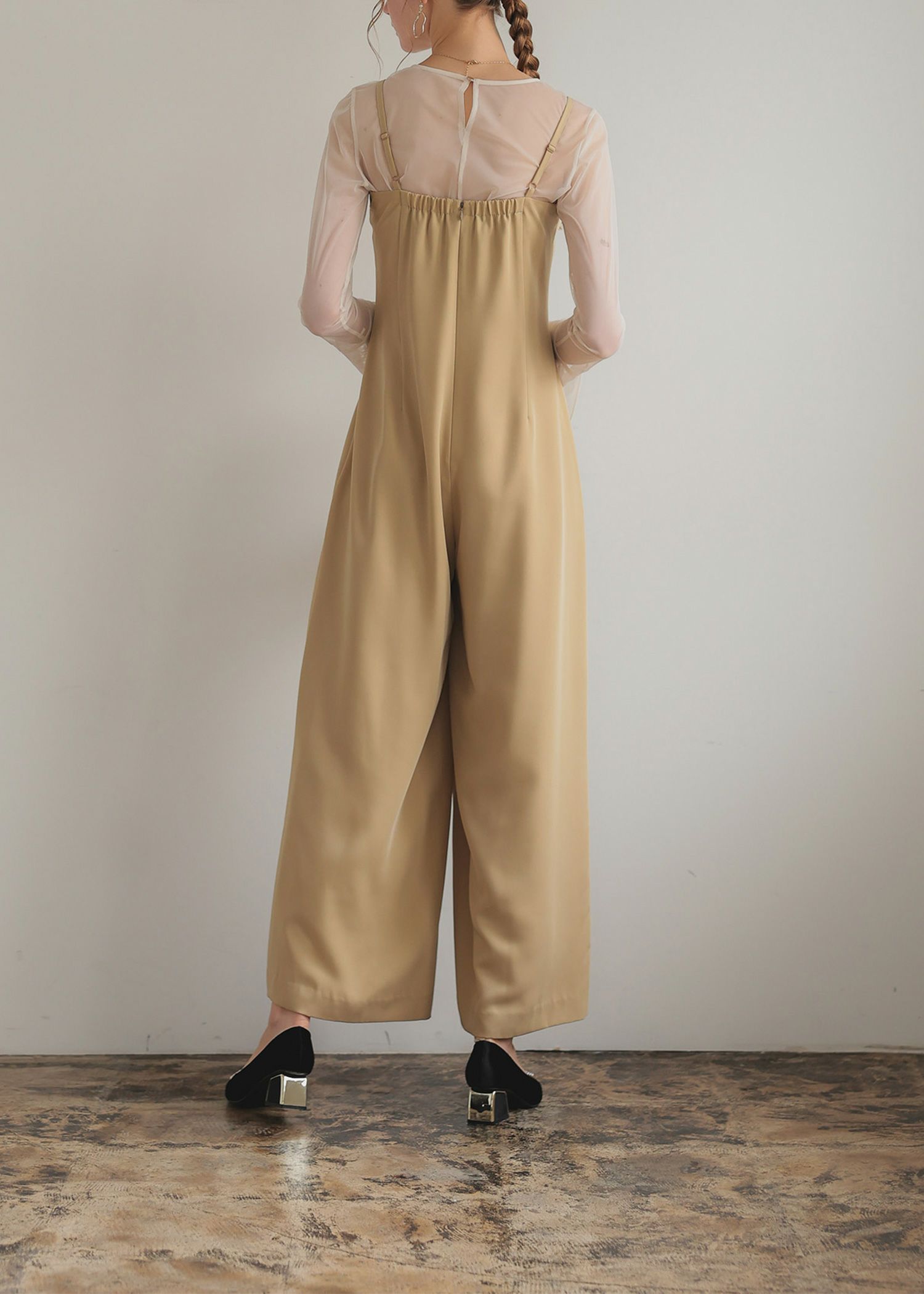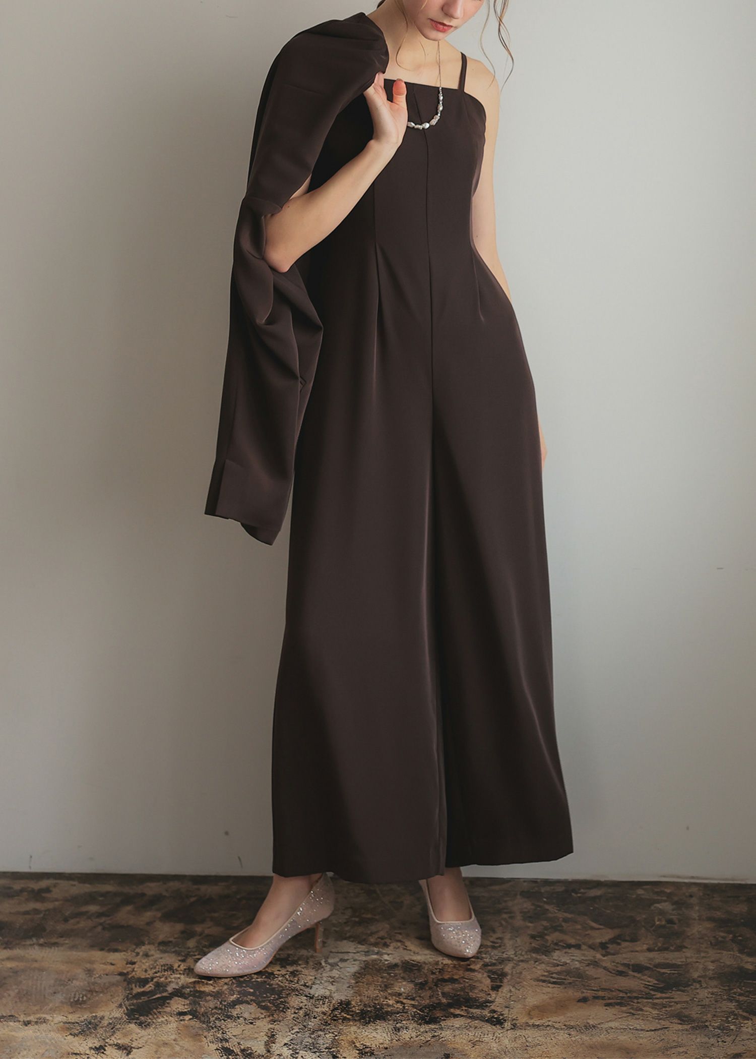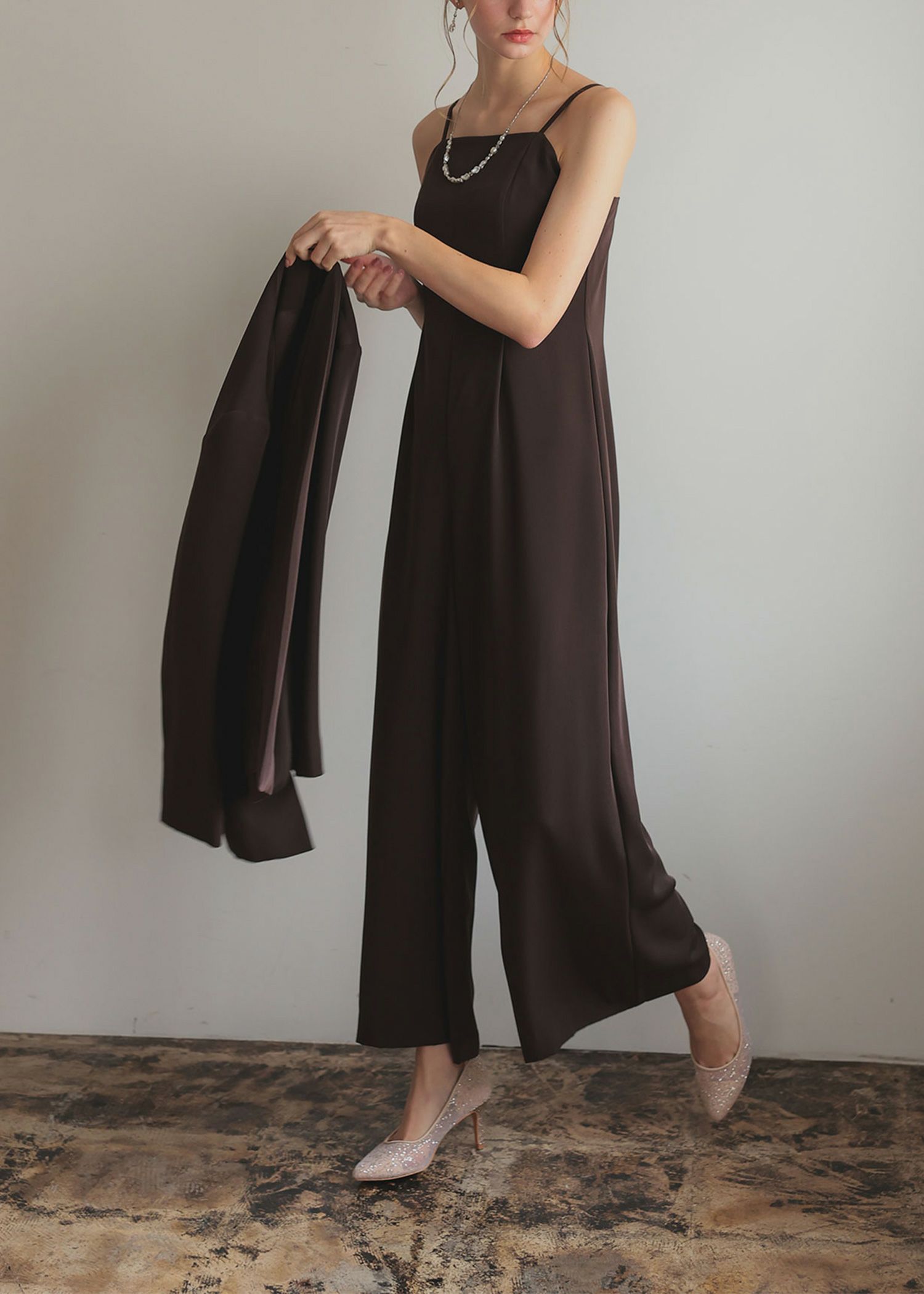 ボレロやトップス等どんなアイテムでも合わせていただきやすいオールインワンドレス。 フロント部分にはタック仕様を施すことで、スタイルアップ効果も◎ ポケットも付いている為、利便性も抜群。 肩紐のアジャスターで着丈調節できるので身長問わずご着用可能です。 後ろ身頃部分はゴム入りの為、着心地も楽ちん♪ パンツはゆったりとしたシルエットでどこかしらマニッシュさを感じさせるデザインに。 下半身の体形カバーになるのも嬉しいポイントです。 【オススメコーディネートアイテム】 ・ラメシアーリボンボレロ(25765) ・グロッシーパフスリーブトップス(25165) トップスをインしたり、ボレロやジャケット等を上から合わせていただくスタイリングがオススメ! デイリーからオケージョン使用まで幅広いシーンでお使いいただけます。 ※ハンガー掛けの商品画像が実際の商品のお色味に近くなっております。 ※商品画像は、光の当たり具合やパソコンなどの閲覧環境により、 実際の色味と異なって見える場合がございます。予めご了承ください。 おすすめのシーン カジュアルな結婚式・二次会・お呼ばれ・成人式・同窓会・ 女子会・謝恩会 パーティー・演奏会・お食事会など多様なシーンのコーディネートに使えます。 商品詳細 【備考】 ・裏地あり ・アジャスターにて着丈調節可能 ・バック部分ゴム入り ・伸縮性なし ・バックファスナー仕様 洗濯方法:クリーニング店にご相談ください。 ※その他お取り扱いに関しましては、商品に付属のアテンションタグをご覧ください。 原産国:中国 お問い合わせ品番:25547 着用モデル身長172cm