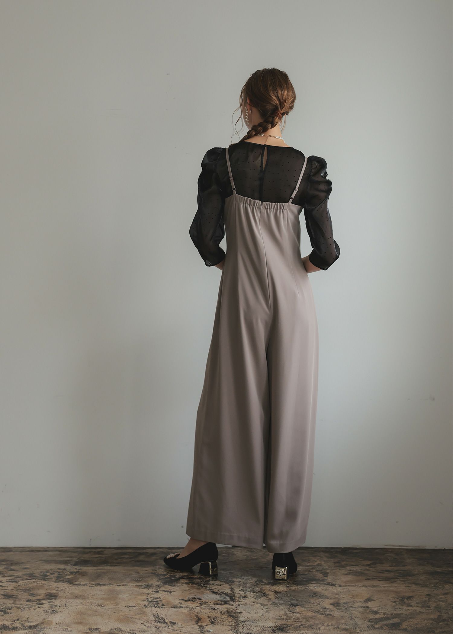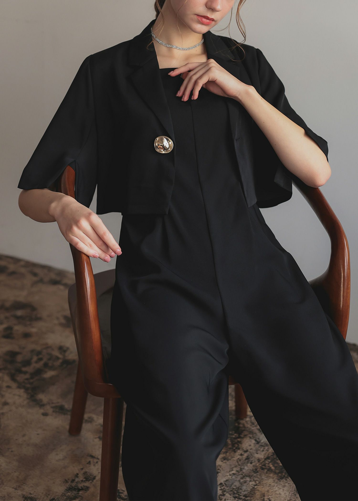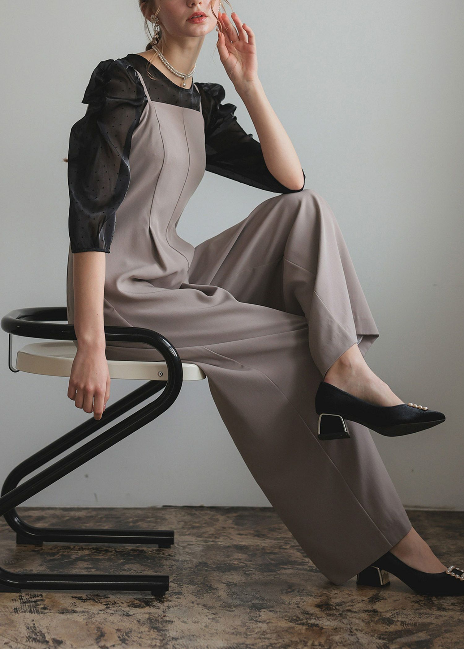 ボレロやトップス等どんなアイテムでも合わせていただきやすいオールインワンドレス。 フロント部分にはタック仕様を施すことで、スタイルアップ効果も◎ ポケットも付いている為、利便性も抜群。 肩紐のアジャスターで着丈調節できるので身長問わずご着用可能です。 後ろ身頃部分はゴム入りの為、着心地も楽ちん♪ パンツはゆったりとしたシルエットでどこかしらマニッシュさを感じさせるデザインに。 下半身の体形カバーになるのも嬉しいポイントです。 【オススメコーディネートアイテム】 ・ラメシアーリボンボレロ(25765) ・グロッシーパフスリーブトップス(25165) トップスをインしたり、ボレロやジャケット等を上から合わせていただくスタイリングがオススメ! デイリーからオケージョン使用まで幅広いシーンでお使いいただけます。 ※ハンガー掛けの商品画像が実際の商品のお色味に近くなっております。 ※商品画像は、光の当たり具合やパソコンなどの閲覧環境により、 実際の色味と異なって見える場合がございます。予めご了承ください。 おすすめのシーン カジュアルな結婚式・二次会・お呼ばれ・成人式・同窓会・ 女子会・謝恩会 パーティー・演奏会・お食事会など多様なシーンのコーディネートに使えます。 商品詳細 【備考】 ・裏地あり ・アジャスターにて着丈調節可能 ・バック部分ゴム入り ・伸縮性なし ・バックファスナー仕様 洗濯方法:クリーニング店にご相談ください。 ※その他お取り扱いに関しましては、商品に付属のアテンションタグをご覧ください。 原産国:中国 お問い合わせ品番:25547 着用モデル身長172cm