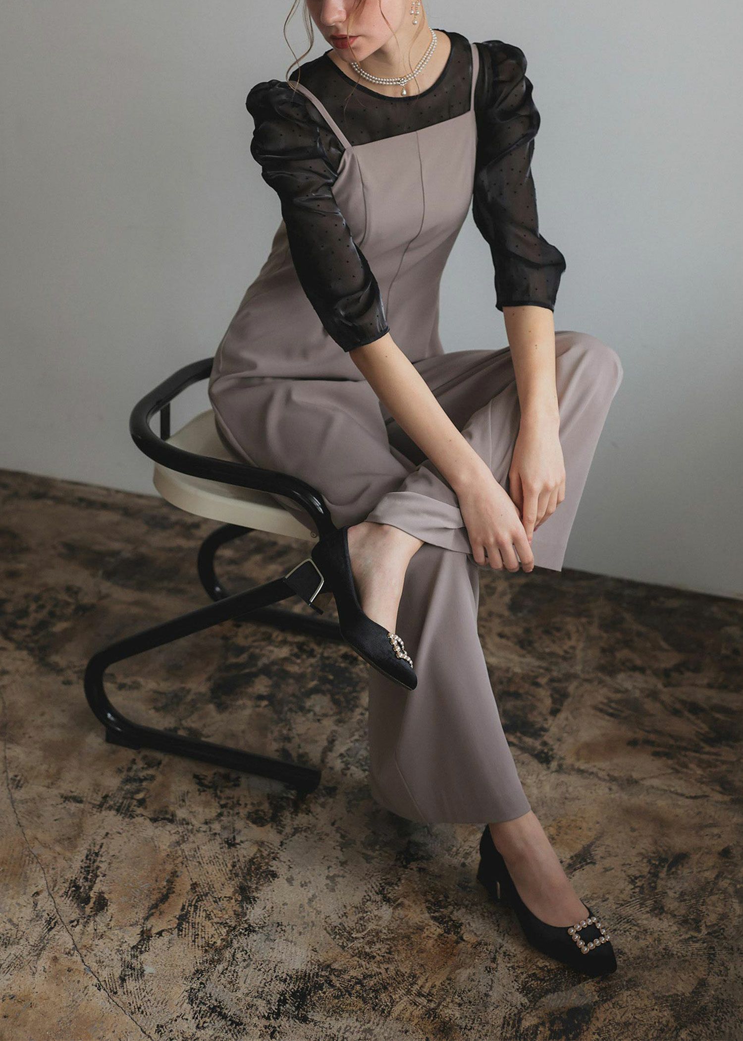 ボレロやトップス等どんなアイテムでも合わせていただきやすいオールインワンドレス。 フロント部分にはタック仕様を施すことで、スタイルアップ効果も◎ ポケットも付いている為、利便性も抜群。 肩紐のアジャスターで着丈調節できるので身長問わずご着用可能です。 後ろ身頃部分はゴム入りの為、着心地も楽ちん♪ パンツはゆったりとしたシルエットでどこかしらマニッシュさを感じさせるデザインに。 下半身の体形カバーになるのも嬉しいポイントです。 【オススメコーディネートアイテム】 ・ラメシアーリボンボレロ(25765) ・グロッシーパフスリーブトップス(25165) トップスをインしたり、ボレロやジャケット等を上から合わせていただくスタイリングがオススメ! デイリーからオケージョン使用まで幅広いシーンでお使いいただけます。 ※ハンガー掛けの商品画像が実際の商品のお色味に近くなっております。 ※商品画像は、光の当たり具合やパソコンなどの閲覧環境により、 実際の色味と異なって見える場合がございます。予めご了承ください。 おすすめのシーン カジュアルな結婚式・二次会・お呼ばれ・成人式・同窓会・ 女子会・謝恩会 パーティー・演奏会・お食事会など多様なシーンのコーディネートに使えます。 商品詳細 【備考】 ・裏地あり ・アジャスターにて着丈調節可能 ・バック部分ゴム入り ・伸縮性なし ・バックファスナー仕様 洗濯方法:クリーニング店にご相談ください。 ※その他お取り扱いに関しましては、商品に付属のアテンションタグをご覧ください。 原産国:中国 お問い合わせ品番:25547 着用モデル身長172cm 着丈肩幅バストウエスト股上/股下ヒップ M132--877861/61102 単位(cm) ▼着用サイズ mode lsize 外国人着用モデル身長 174 cm ▼着用サイズ全てMsize staff 153㎝/モカチャ ・ブラック staff 165㎝/イエロー・ブラウン 158cm・165cm着用SNAP身長あり 着丈ガイド REVIEW レビュー Dorry Doll オールインワンキャミドレス 当店特別価格 ¥ 16,500 税込 商品番号 25548 【セットアップ対応アイテム】 ・商品番号25763フレアースリーブクロップドJK ・商品番号25767ノーカラーロングジャケット レビューを書く [ 150 ポイント進呈 ] 明日09時00分までのご注文で2025/12/19(金)に佐川急便でお届けします。 この地域へのお届け日は表示できません 大阪府 お届け先を変更 10_イエロー M 残りわずか お気に入りに登録する カートに入れる 60_ブラウン M 残りわずか お気に入りに登録する カートに入れる 65_モカチャ M 残りわずか お気に入りに登録する カートに入れる 99_ブラック M 残りわずか お気に入りに登録する カートに入れる 商品についてのお問い合わせ 商品詳細 ボレロやトップス等どんなアイテムでも合わせていただきやすいオールインワンドレス。 フロント部分にはタック仕様を施すことで、スタイルアップ効果も◎ ポケットも付いている為、利便性も抜群。 肩紐のアジャスターで着丈調節できるので身長問わずご着用可能です。 後ろ身頃部分はゴム入りの為、着心地も楽ちん♪ パンツはゆったりとしたシルエットでどこかしらマニッシュさを感じさせるデザインに。 下半身の体形カバーになるのも嬉しいポイントです。 【オススメコーディネートアイテム】 ・ラメシアーリボンボレロ(25765) ・グロッシーパフスリーブトップス(25165) トップスをインしたり、ボレロやジャケット等を上から合わせていただくスタイリングがオススメ! デイリーからオケージョン使用まで幅広いシーンでお使いいただけます。 ※ハンガー掛けの商品画像が実際の商品のお色味に近くなっております。 ※商品画像は、光の当たり具合やパソコンなどの閲覧環境により、 実際の色味と異なって見える場合がございます。予めご了承ください。 おすすめのシーン カジュアルな結婚式・二次会・お呼ばれ・成人式・同窓会・ 女子会・謝恩会 パーティー・演奏会・お食事会など多様なシーンのコーディネートに使えます。 商品詳細 【備考】 ・裏地あり ・アジャスターにて着丈調節可能 ・バック部分ゴム入り ・伸縮性なし ・バックファスナー仕様 洗濯方法:クリーニング店にご相談ください。 ※その他お取り扱いに関しましては、商品に付属のアテンションタグをご覧ください。 原産国:中国 お問い合わせ品番:25547 着用モデル身長172cm 素材 材質 表地 ポリステル96% ポリウレタン4% 裏地 ポリエステル100% 厚地 薄地 透ける 透けない 柔らかい 固い 光沢 マット 洗濯方法:クリーニング店にご相談ください。 ※その他お取り扱いに関しましては、商品に付属のアテンションタグをご覧ください。 サイズ 着丈肩幅バストウエスト股上/股下ヒップ M132--877861/61102 単位(cm) ▼着用サイズ mode lsize 外国人着用モデル身長 174 cm ▼着用サイズ全てMsize staff 153㎝/モカチャ ・ブラック staff 165㎝/イエロー・ブラウン 158cm・165cm着用SNAP身長あり 着丈ガイド REVIEW レビュー RECOMMENDATIONあなたへのおすすめアイテム HISTORY最近チェックしたアイテム