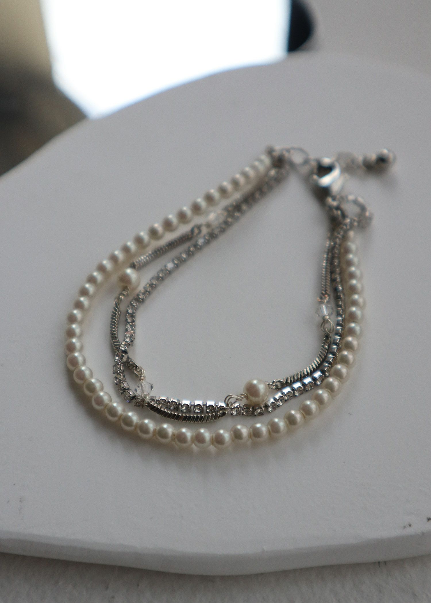 パールとラインストーンを3連にしたパーティーブレスレット。