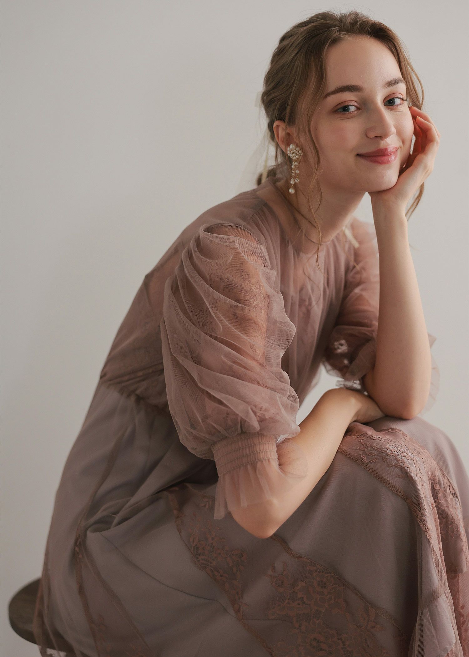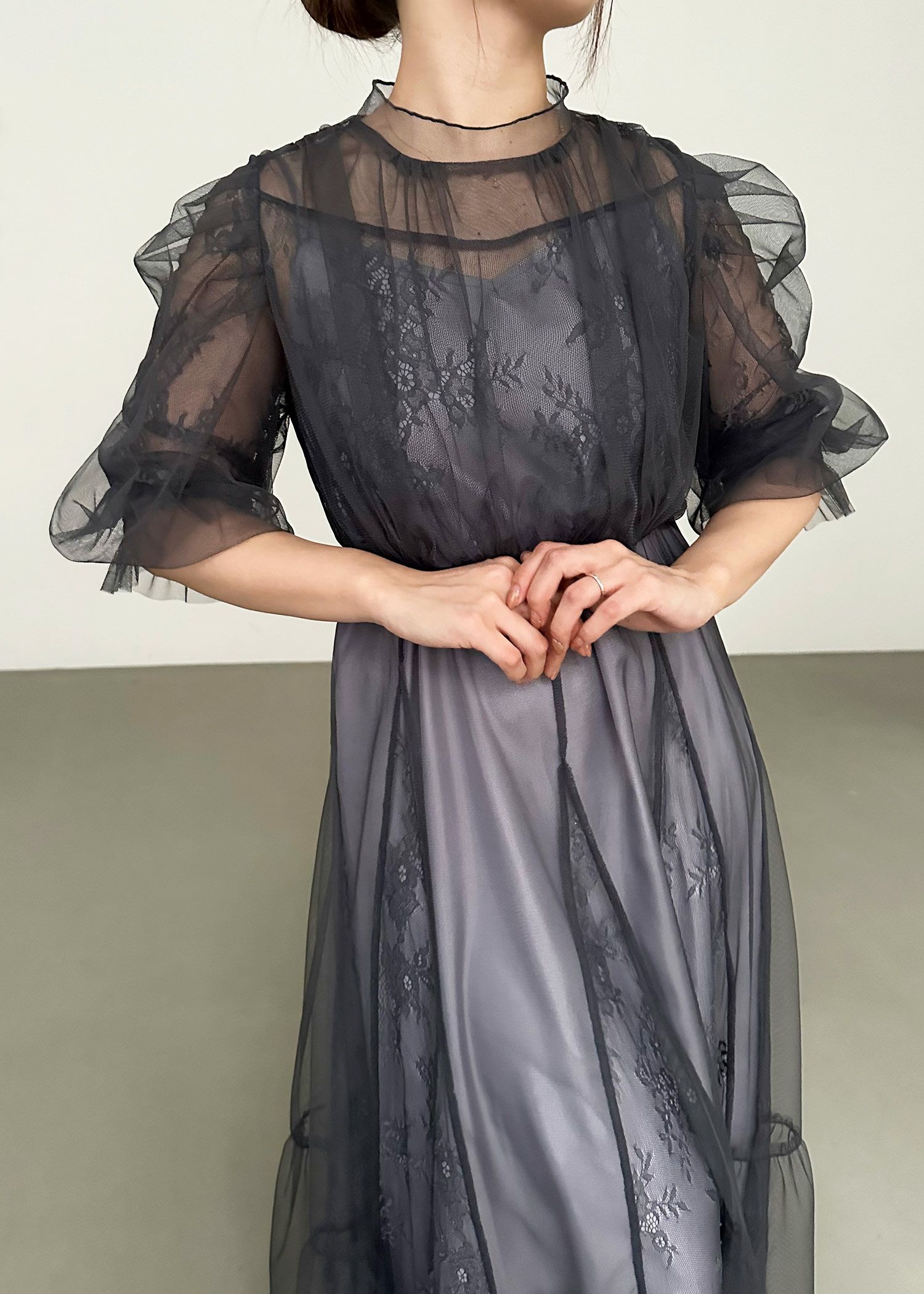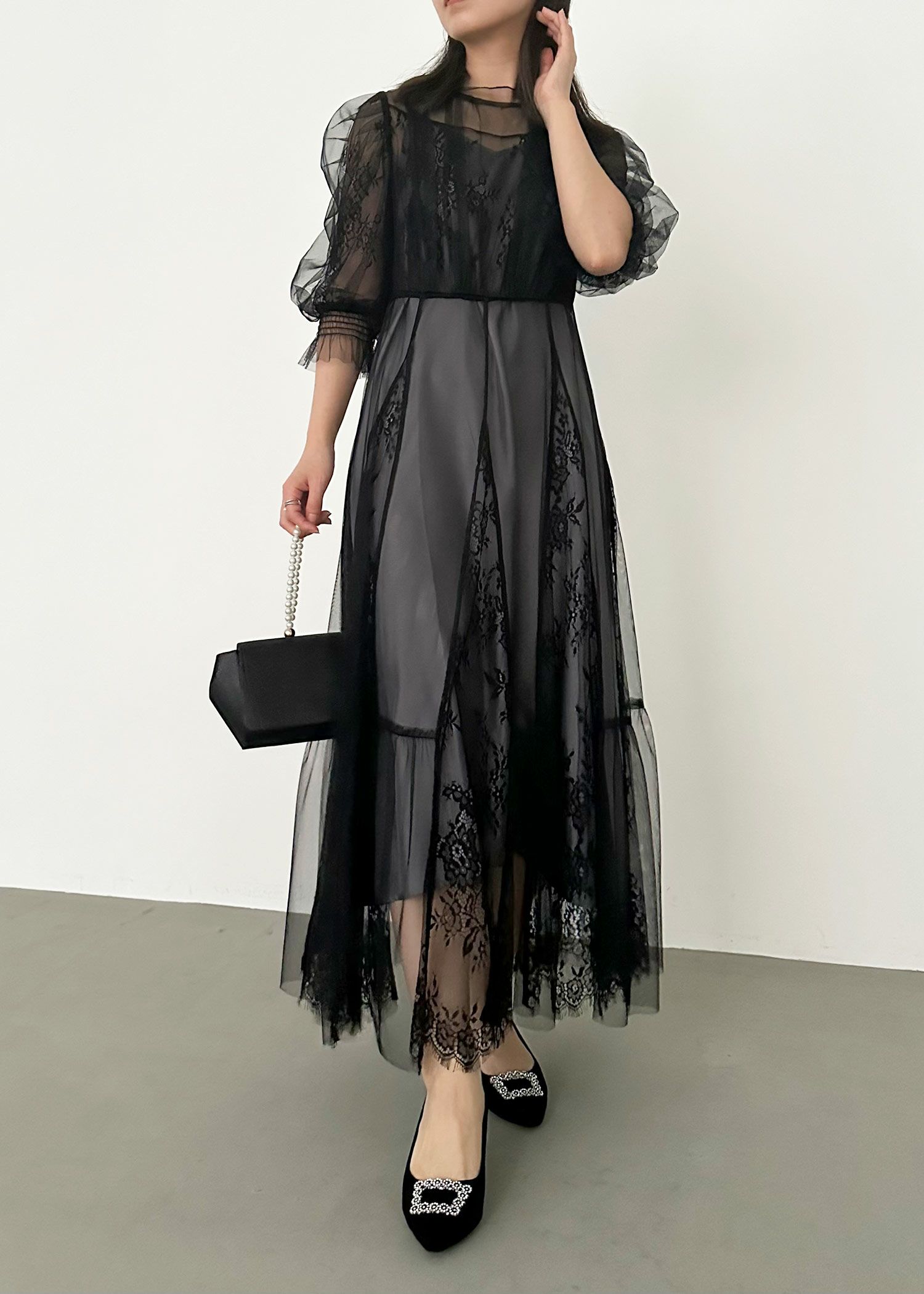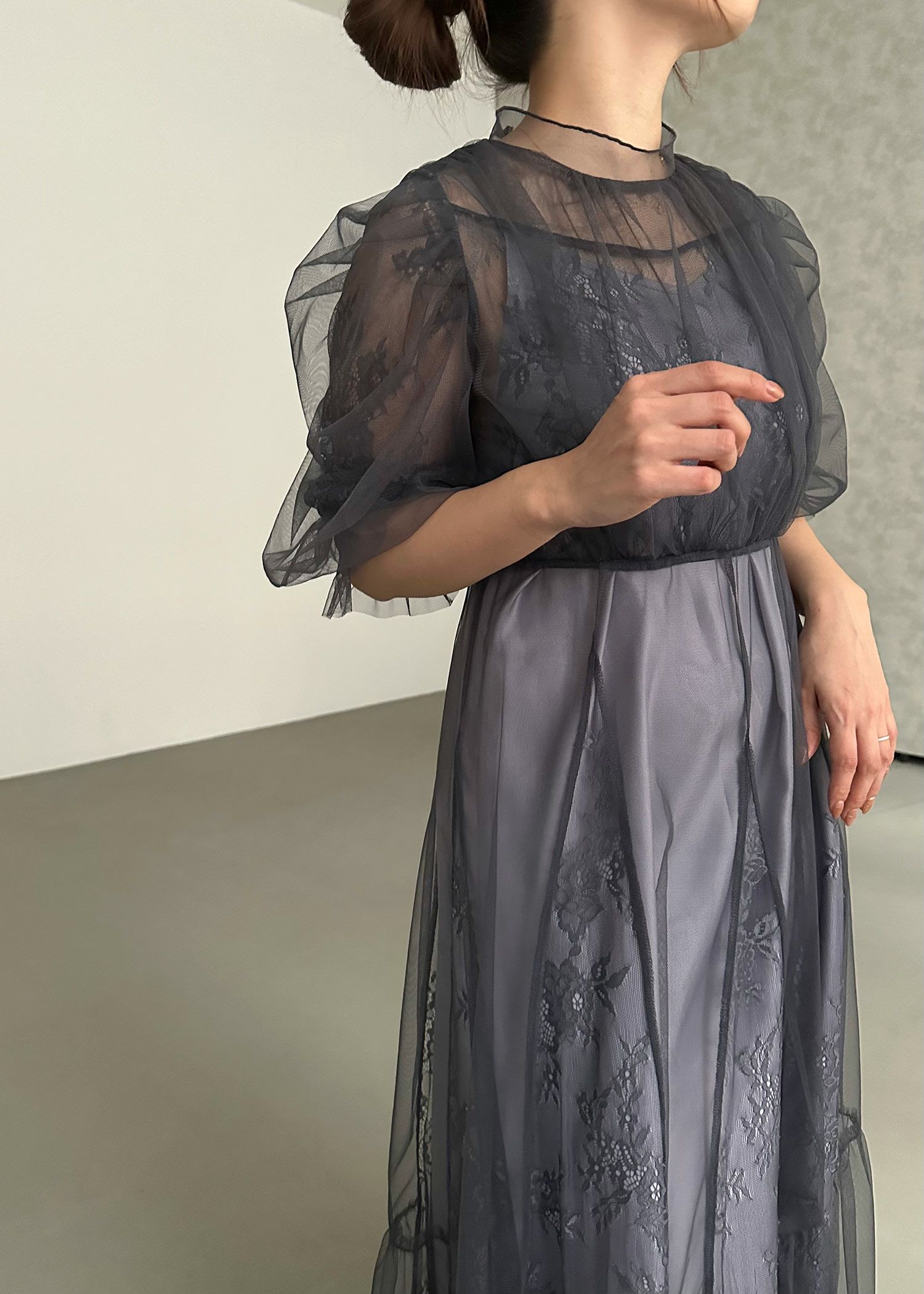 商品説明 柔らかなフラワーモチーフレースとチュール素材を組み合わせたドレス。 チュールがエアリーに広がりきるだけで華やかな印象になります。 レースの切り替えや胸元のピンタック、レディライクなパフスリーブなど、 360℃どこから見ても絵になるクラシカルなディティールを贅沢に詰め込みました。 動くたびにスカートが広がるシルエットで、まるで花弁をその身に纏うかのようなドレスです。 裾のスカラップカットは上品さを演出。 気になる二の腕をおしゃれにカバーし、ウエスト周り全体にゴムが入っていてストレスフリーも実現。 ※ハンガー掛けの商品画像が実際の商品のお色味に近くなっております。 ※商品画像は、光の当たり具合やパソコンなどの閲覧環境により、 実際の色味と異なって見える場合がございます。予めご了承ください。 外国人着用モデル身長172cm グリーン着用SNAP身長158cm ブラック着用SNAP身長158cm モカチャ着用SNAP身長153cm チャコール着用SNAP身長153cm おすすめのシーン 結婚式・披露宴・二次会・同窓会・謝恩会など 多様なシーンのコーディネートに使えます。 商品詳細 【備考】 レースドレス ・生地伸縮性なし ・バックファスナー仕様 ・バックネック ホック1つあり ・袖口シャーリングゴム仕様 インナー ・生地伸縮性なし ・後ろ身幅部分ゴムあり ・肩紐アジャスターあり 洗濯方法:クリーニング店にご相談ください。 ※その他お取り扱いに関しましては、商品に付属のアテンションタグをご覧ください。 原産国:中国
