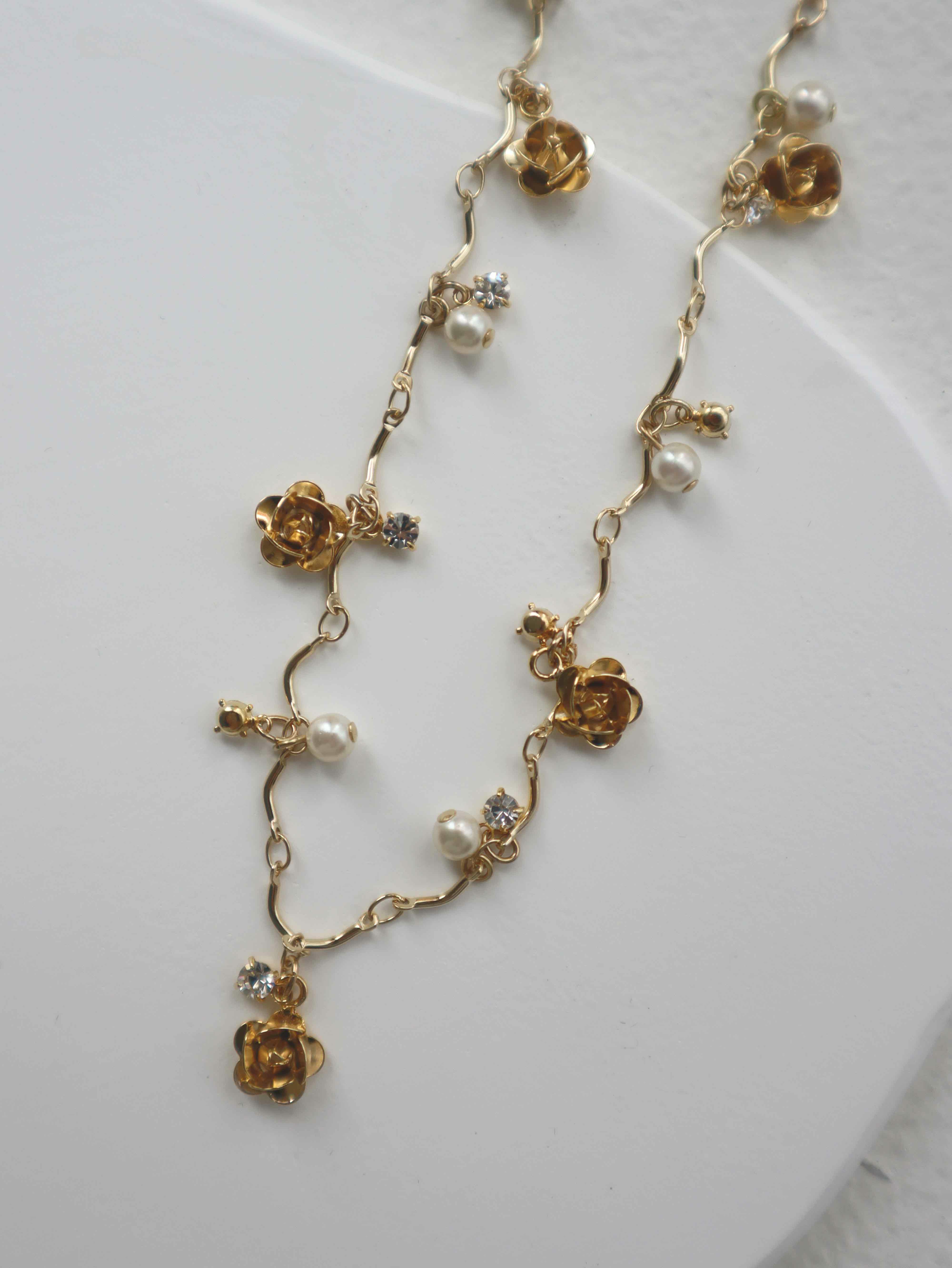 商品説明 小ぶりなバラのモチーフがきらめくネックレス。 パールとビジューとの組合せで、首元を華やかに演出します。 商品番号:25382のピアスと共通モチーフの為、セットでのご着用もおすすめです。 結婚式・結婚式の二次会・謝恩会・お食事会・女子会 等、フォーマルシーンからセミフォーマルシーンまで、華やかな場面にぴったり。 ※商品のカラーは照明の関係で実物と多少の違いが生じることがございます。 ※金属アレルギーの方には【非対応】のメッキを使用しています。 商品詳細素材:プラスチック、真鍮生産国:日本