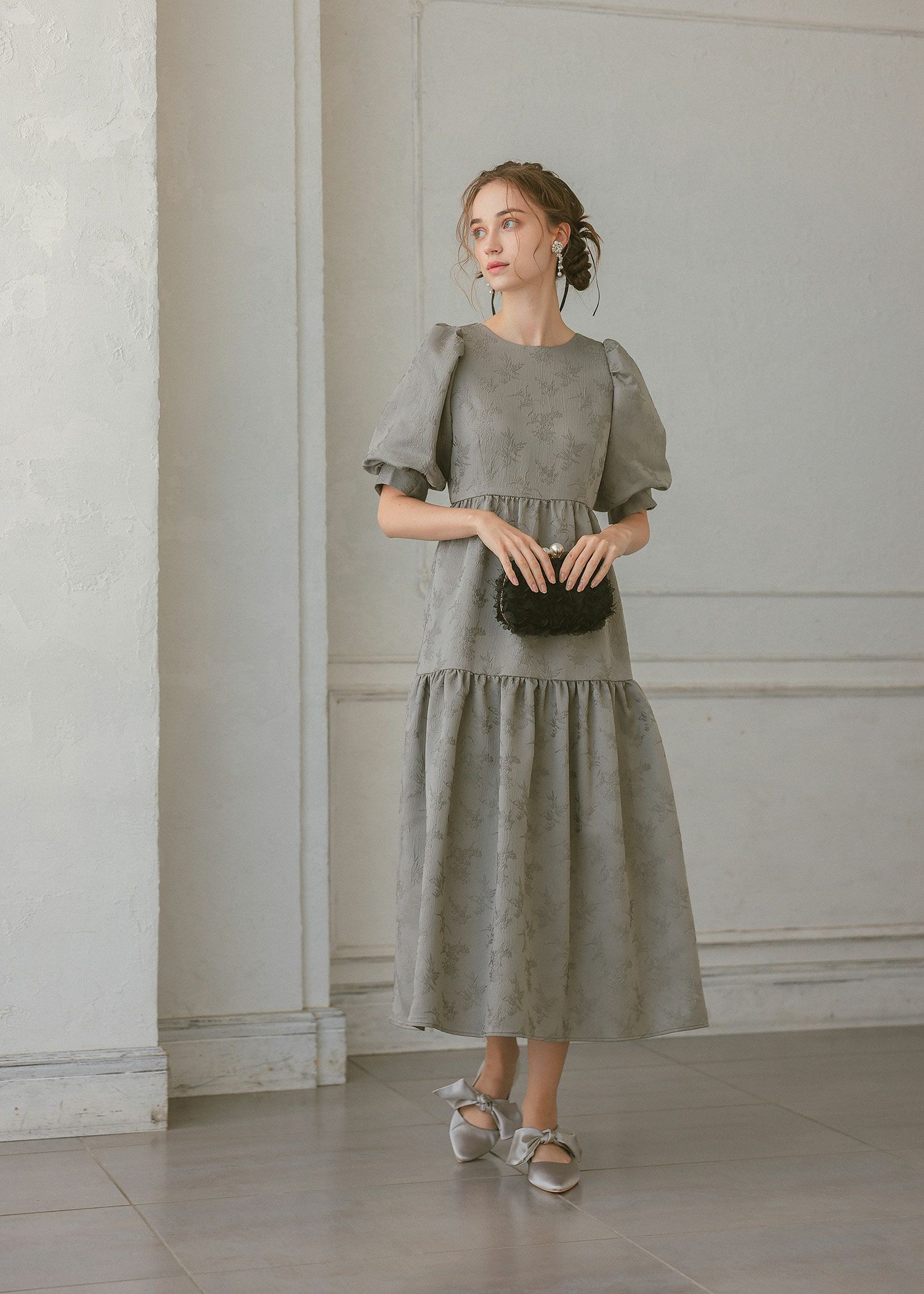 商品説明 ヴィンテージライクな雰囲気を醸し出すオケージョンドレス。 ジャガード素材とティアードデザインが大人らしい印象に。 動くたびにふわっと広がるAラインシルエットが体型カバーになり、 またゆったりとした着心地抜群なのも嬉しいポイント! 裾部分のデザイン切り替えが可愛らしさを感じさせます。 バック部分には紐デザインを施し、ヒトクセ個性をプラス。 フェミニンさと上品さを感じさせてくれる1着に仕上げました? カジュアルな結婚式や、二次会、デート、食事会などの普段使いまで 幅広いシーンに活躍するアイテムです。 ※エクリュは白っぽいお色味のため、結婚式のおよばれ以外のシーンにおすすめです。 ※エクリュは花嫁さんの二次会や前撮りなどにもおすすめです。 ※ハンガー掛けの商品画像が実際の商品のお色味に近くなっております。 ※商品画像は、光の当たり具合やパソコンなどの閲覧環境により、 実際の色味と異なって見える場合がございます。予めご了承ください。 モデル着用サイズ 172cm/Mサイズ おすすめのシーン カジュアルな結婚式・二次会・お呼ばれ・成人式・同窓会・ 女子会・謝恩会 パーティー・演奏会・お食事会など多様なシーンのコーディネートに使えます。 商品詳細 【備考】 ・裏地付き ・伸縮性なし ・透け感なし ・バックファスナー仕様 洗濯方法:クリーニング店にご相談ください。 ※その他お取り扱いに関しましては、商品に付属のアテンションタグをご覧ください。 原産国:中国 お問い合わせ品番:25558 着用モデル身長172cm