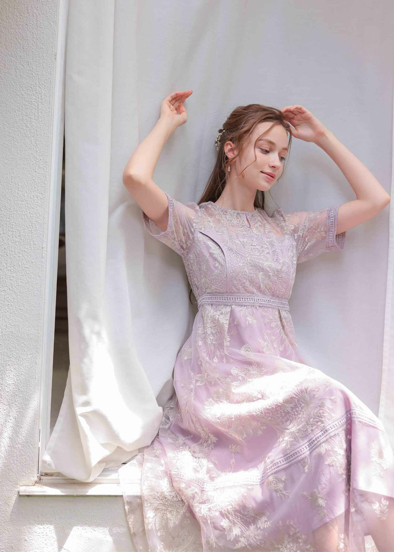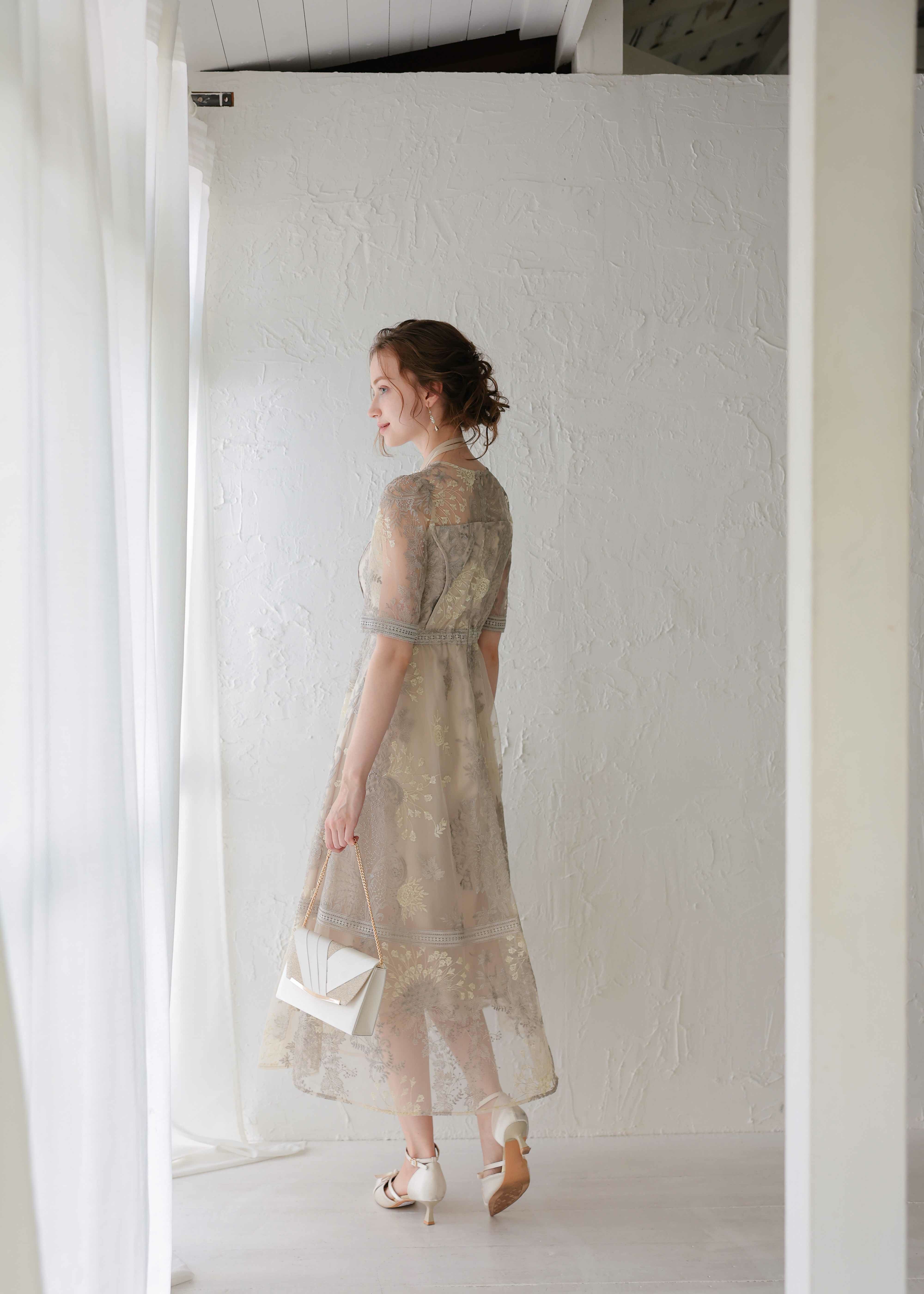 ふんわりエアリーなシルエットのドレス。