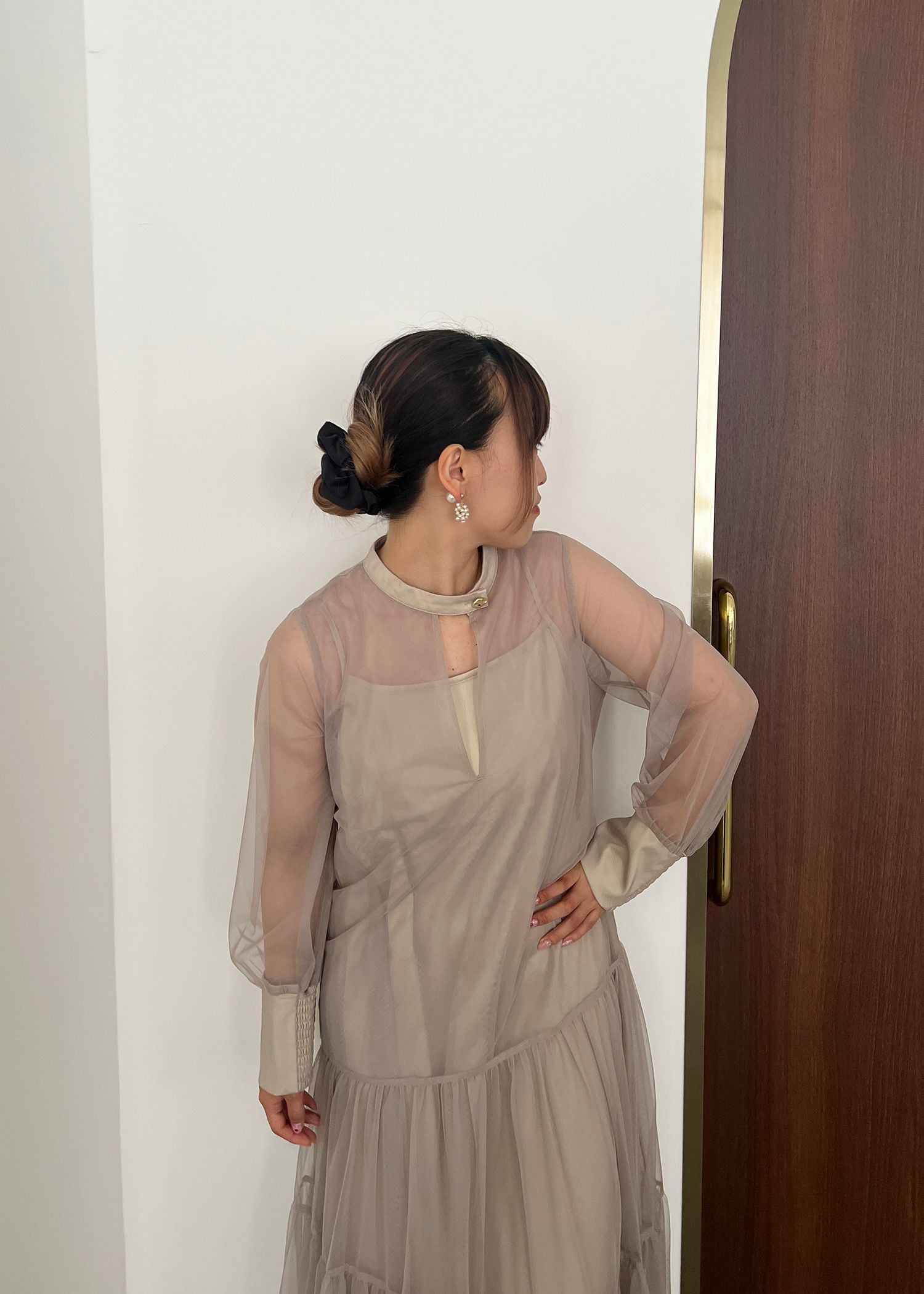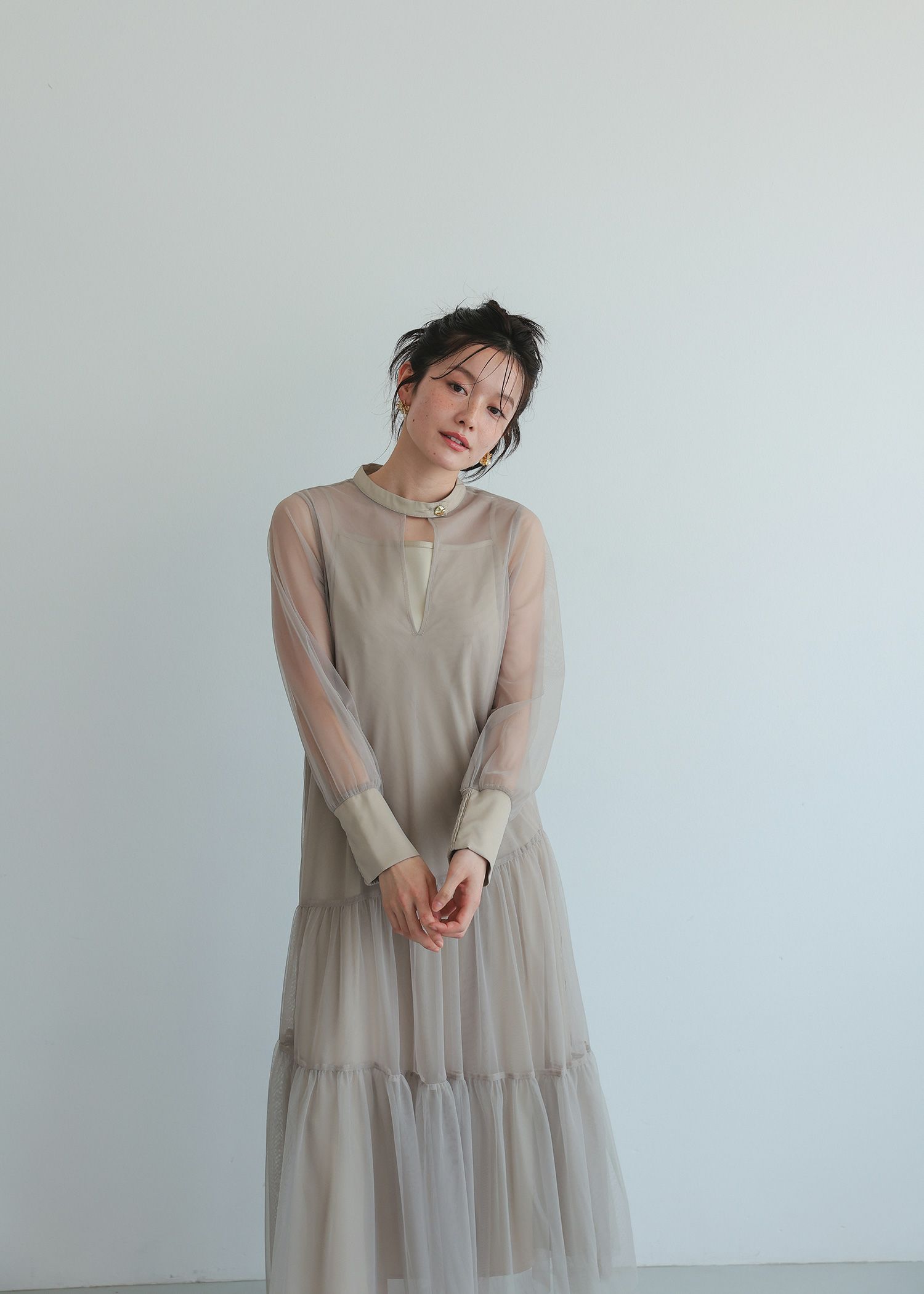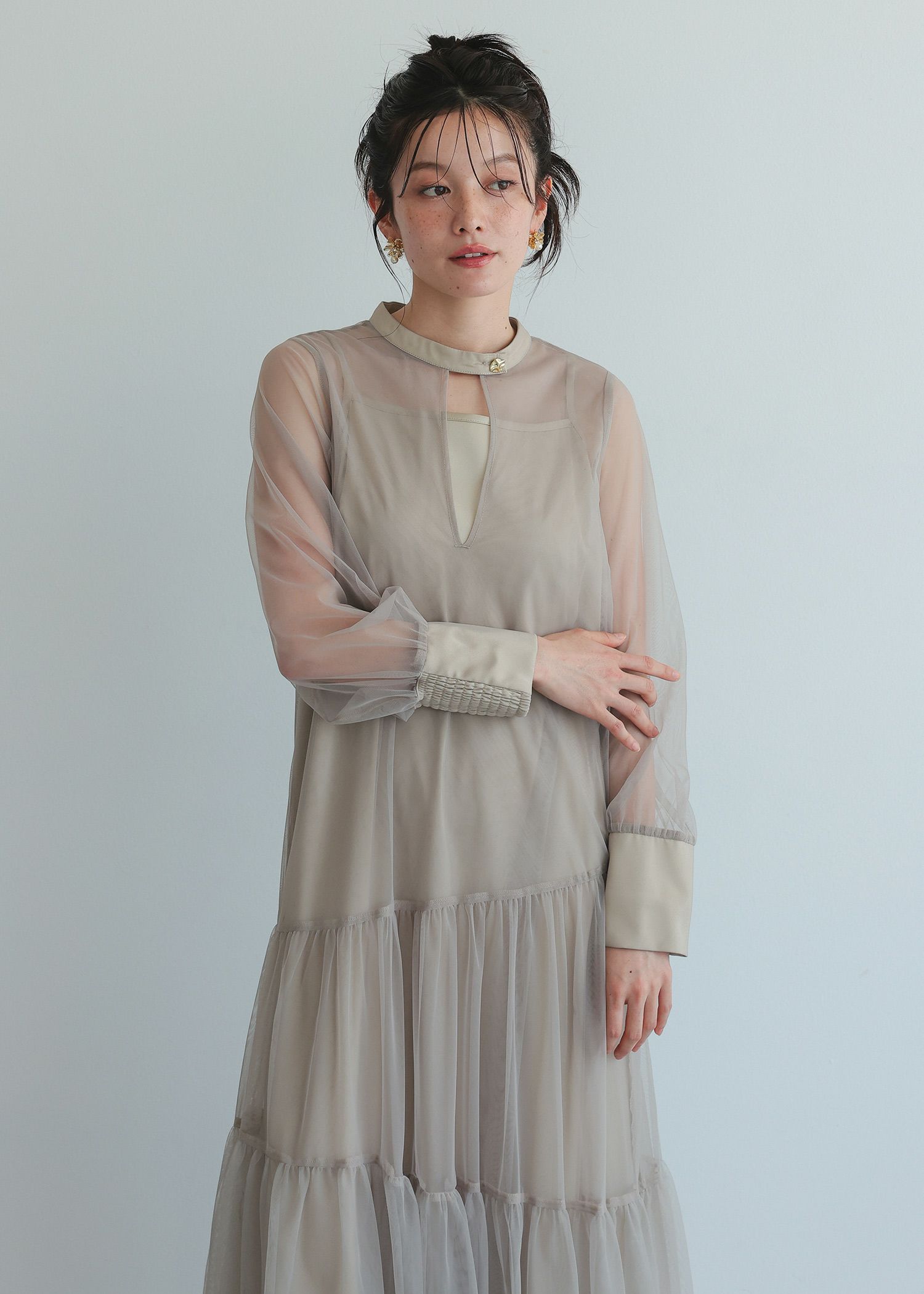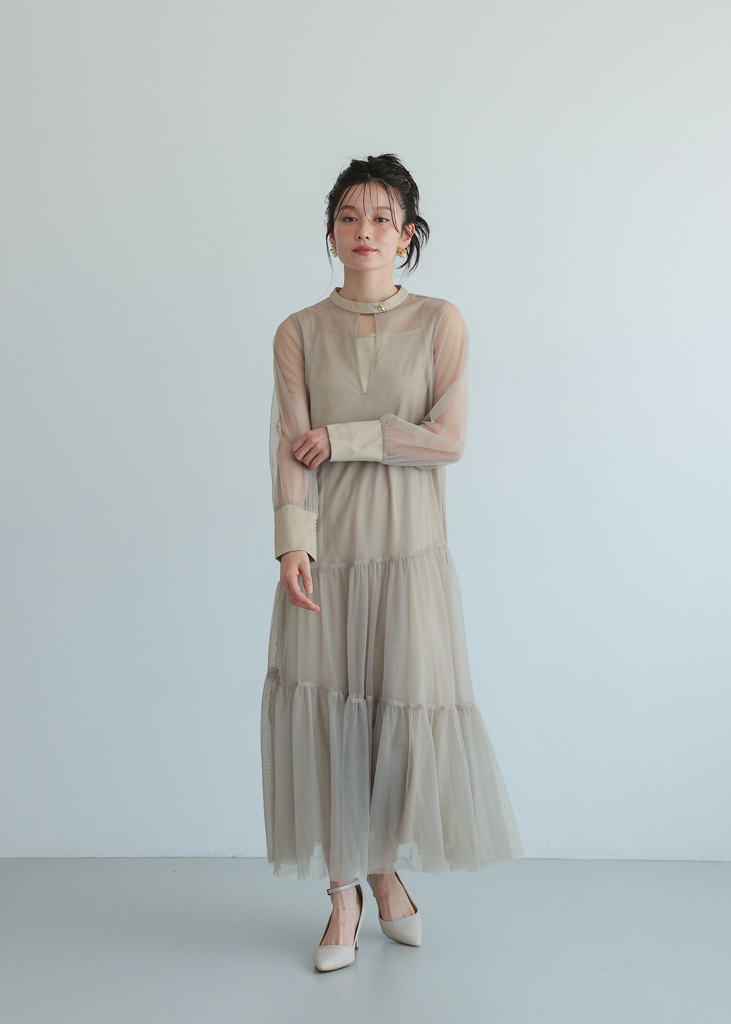 商品説明 リラクシーかつモードな雰囲気漂うティアードドレス ネック部分は抜け感のあるキーホールデザインに、メタル素材のボタンがあしらわれており ネックレス無しでも華やかです。 スカート部分のティアードは、イレギュラーに角度を付ける事で、 ニュアンス感が生まれ可愛くなりすぎずに大人な印象に。 袖部分の長めのカフスは、全体を引き締めるポイントとなっております。 シンプルな中にも細部のディティールが目を惹き、今っぽいモードさを感じさてくれる一点です。 ※商品画像は、光の当たり具合やパソコンなどの閲覧環境により、 実際の色味と異なって見える場合がございます。予めご了承ください。 おすすめのシーン 結婚式・披露宴・二次会・同窓会・謝恩会など 多様なシーンのコーディネートに使えます。 商品詳細 【備考】 アウターワンピース ・伸縮性なし ・光沢なし ・透け感あり ・後ろ中心ファスナー インナーワンピース ・伸縮性なし ・光沢なし ・肩紐調節アジャスター付き ・後ろバスト部分ゴム入り 洗濯方法:クリーニング店にご相談ください。 ※その他お取り扱いに関しましては、商品に付属のアテンションタグをご覧ください。 原産国:中国 お問い合わせ品番:25645 着用モデル身長160cm
