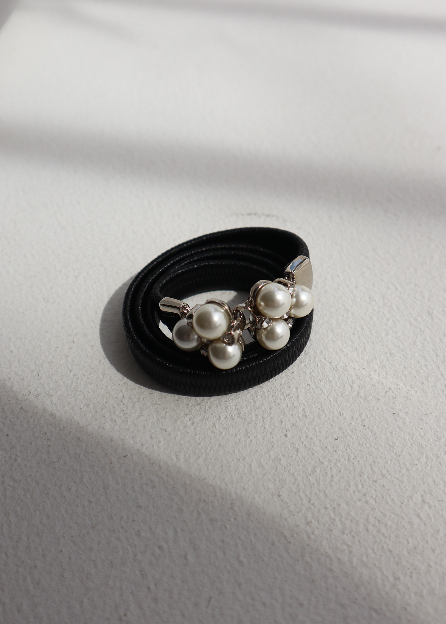 コーディネートのさりげないアクセントとして、気軽に取り入れられるゴムベルト。