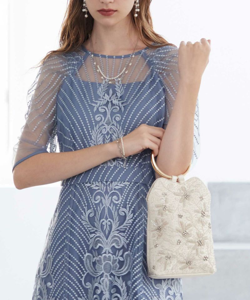 商品説明 アクセサリーのように持てるリングミニトートバッグ。 大きなリングハンドルがワンポイントと手縫いのビーズで ひとつずつ丁寧に仕上げた特別感のある一点です。 お花のモチーフでフェミニンなムードを出しつつ、 メタリックでクールな要素をミックスすることで大人に着地。 裏面はドレスとの接地面を考慮しツヤのあるサテンを使用しています。 引っかかりを気にすることなく持てるディテールにもこだわりました。 2WAY使用できるショルダーチェーンが付属しています。 オケージョンシーンを華やかに彩るアイテムです。 こちらの商品ですが、ご祝儀の入れ方を工夫することでご祝儀が入ります。 ※商品画像は、光の当たり具合やパソコンなどの閲覧環境により、実際の色味と異なって見える場合がございます。 予めご了承ください。 おすすめのシーン ・結婚式・披露宴・二次会・謝恩会・同窓会・演奏会・お食事会 等 幅広い用途でお使いいただけます。 商品詳細 【素材】 表地:ポリエステル100% 裏地:ポリエステル100% 【備考】 ・ロングチェーン×1 ・チェーン取り外し可能 ・マグネットボタン開閉 原産国:中国 お問い合わせ品番:82424