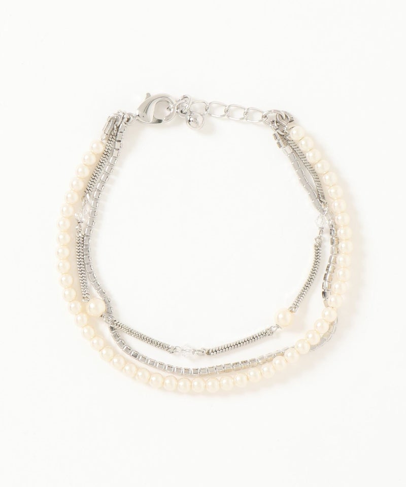 パールとラインストーンを3連にしたパーティーブレスレット。
