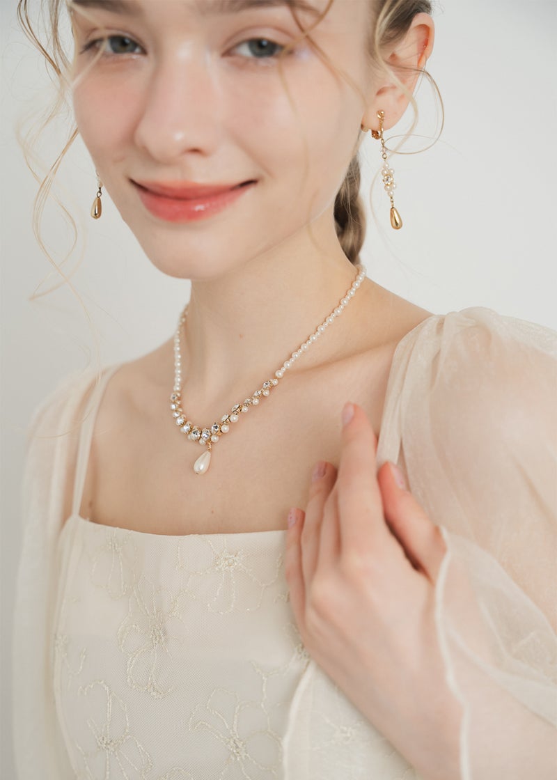 デコルテラインに華やかな印象を与えてくれます。