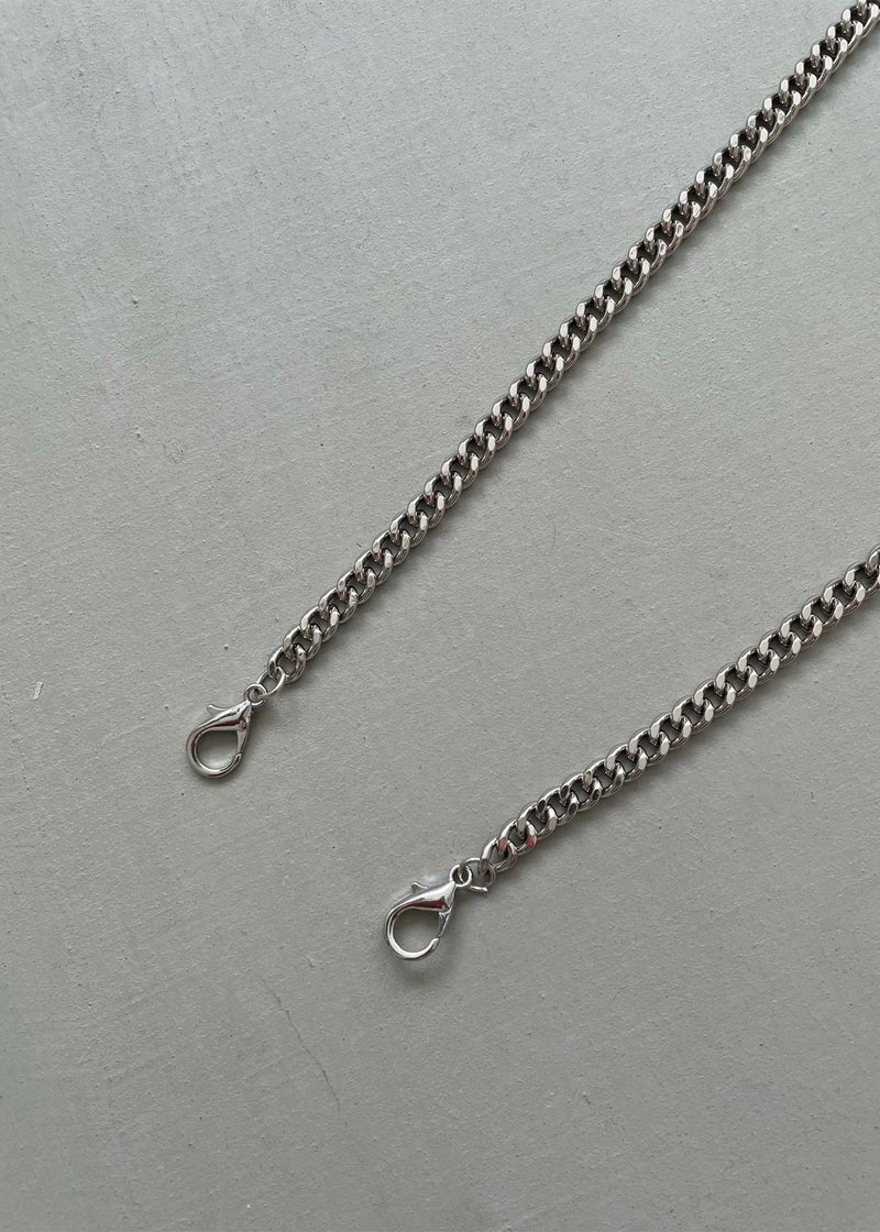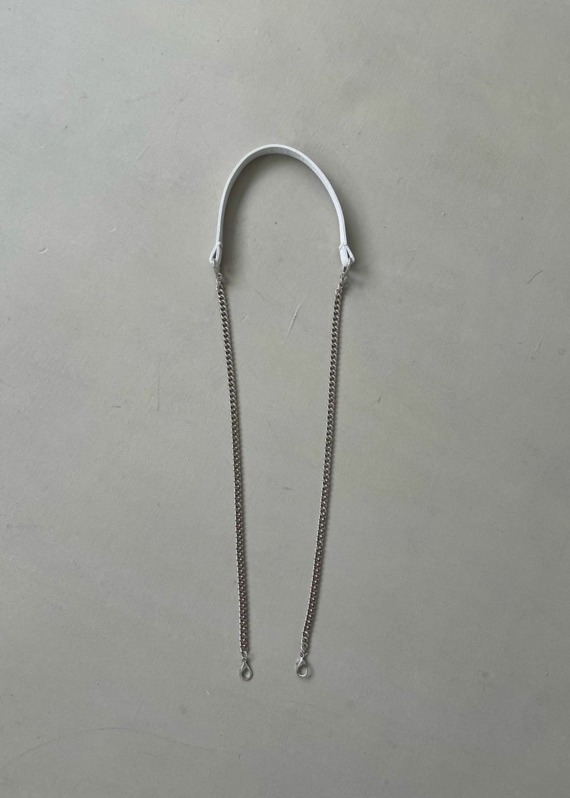 付属のショルダーチェーンには、肩にあたる部分にバッグと共通生地を使用。