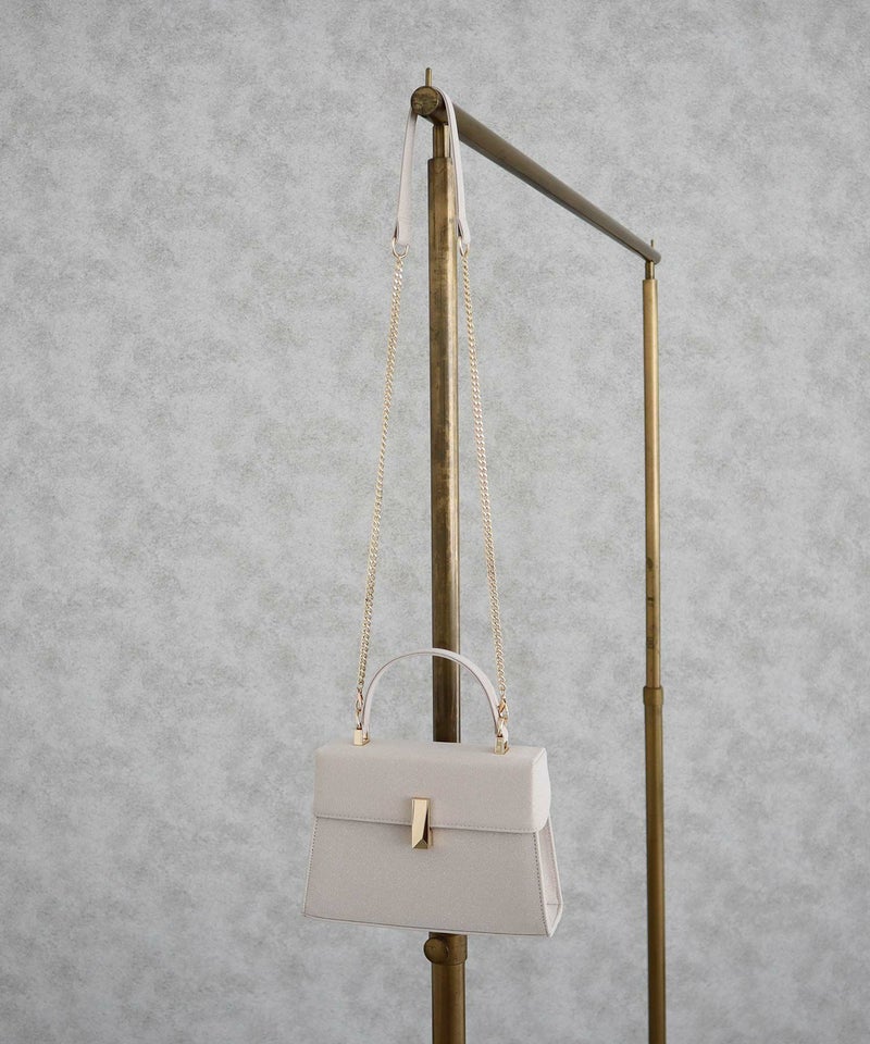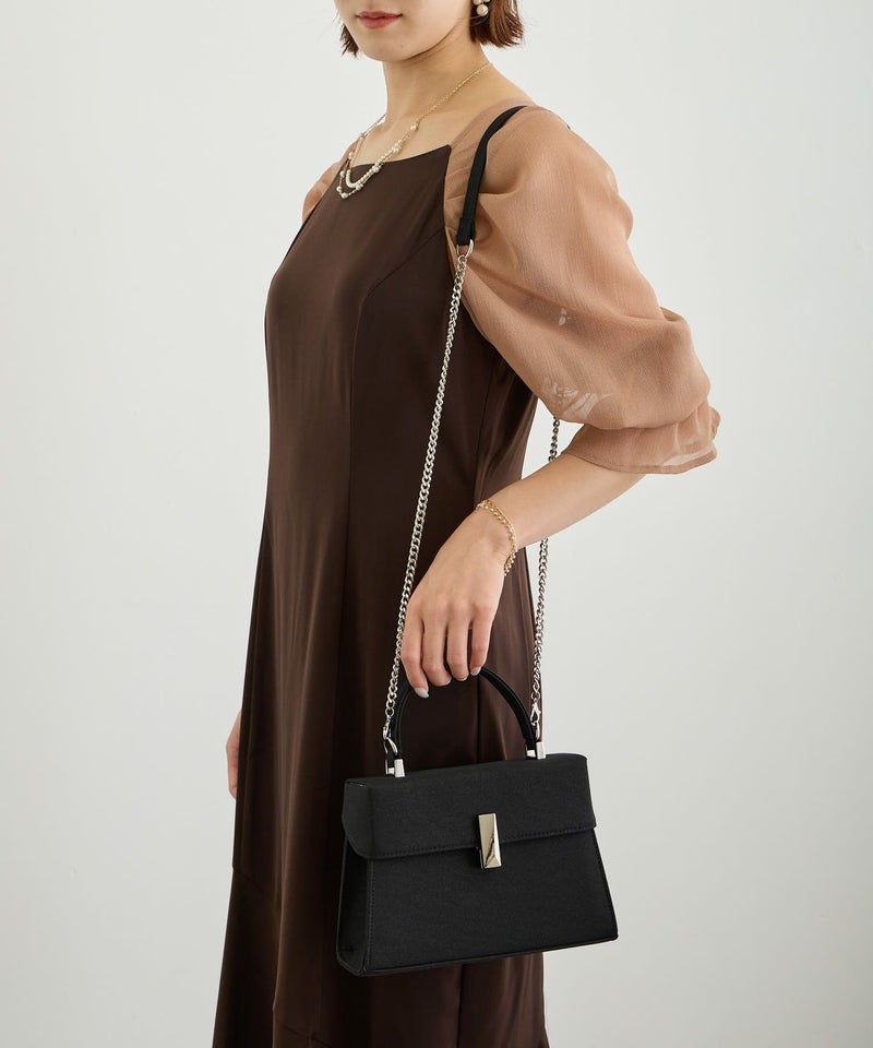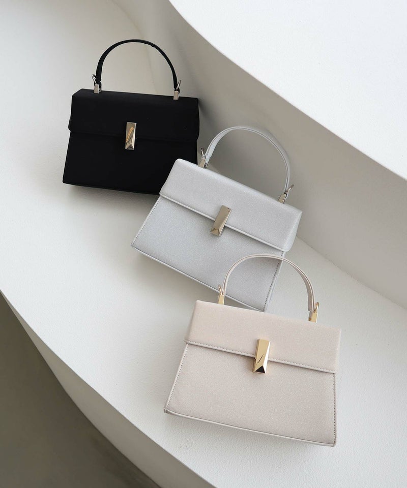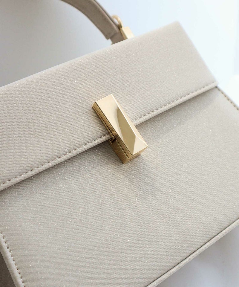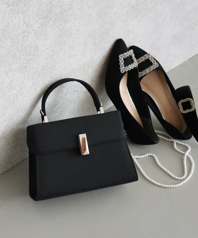 《結婚式・お呼ばれ対応・ハンドバッグ》 フロントに施された金具がリッチ感のあるバッグ。 スクエア型の小ぶりながらもデイリー使いしやすいサイズ感も嬉しいポイント◎ 微光沢で主張しすぎないラメ素材なのでアクセサリー感覚で手元を華やかさをぷらすします! カラーはどんなドレスにも合わせやすい、 ブラック・ゴールド・シルバーの3色展開。 ショルダーストラップが付きなので2WAYで使用可能です。 結婚式の披露宴や二次会、パーティーや謝恩会などのシーンでスマホ、 お化粧品からハンカチまで必要最低限のものは持ち運べる収納力です。 オケージョンシーンを華やかに彩るアイテムです。 ※商品画像は、光の当たり具合やパソコンなどの閲覧環境により、実際の色味と異なって見える場合がございます。予めご了承ください。