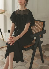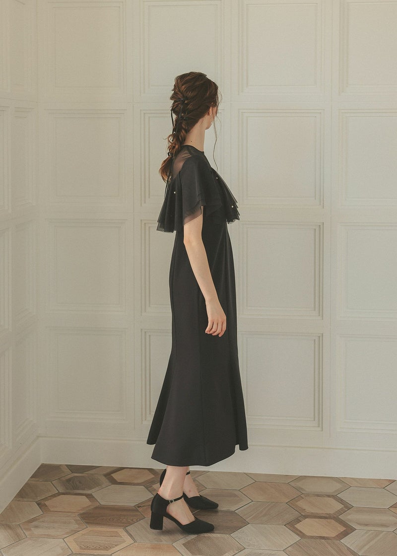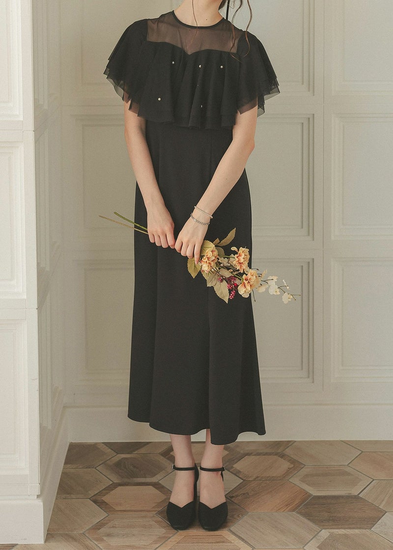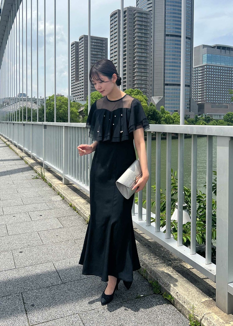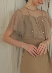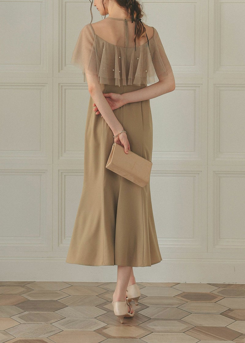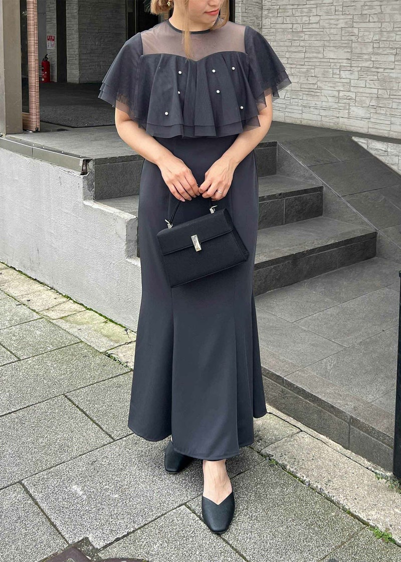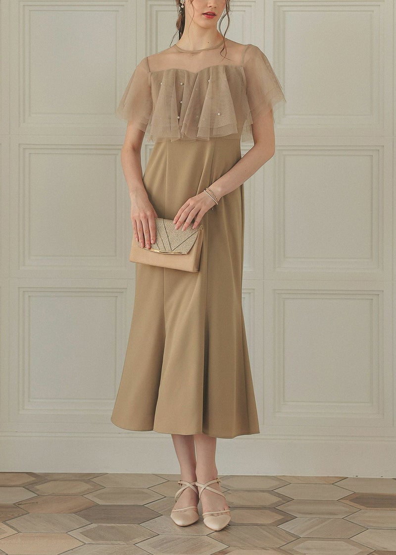 透け感のあるチュールに、パールをちりばめた 可愛らしさと大人っぽさを兼ね備えたドレス。 パールをあしらう事で、ネックレスなしでも 顔回りを華やかに魅せてくれます。 デコルテやフリル部分のチュールのシアー感が モードな雰囲気で今年らしい垢抜けた印象に。 スカート部分は女性らしいマーメイドシルエット。 上品な可愛らしさと、スタイリッシュなモード感を絶妙に兼ね備えたドレスです。 結婚式や披露宴、二次会など幅広いシーンで大活躍してくれる一着です。 ※エクリュは白っぽいお色味のため、結婚式お呼ばれ以外のシーンにおすすめです。 ※花嫁さんの二次会などにもおすすめです? ※商品画像は、光の当たり具合やパソコンなどの閲覧環境により、 実際の色味と異なって見える場合がございます。予めご了承ください。