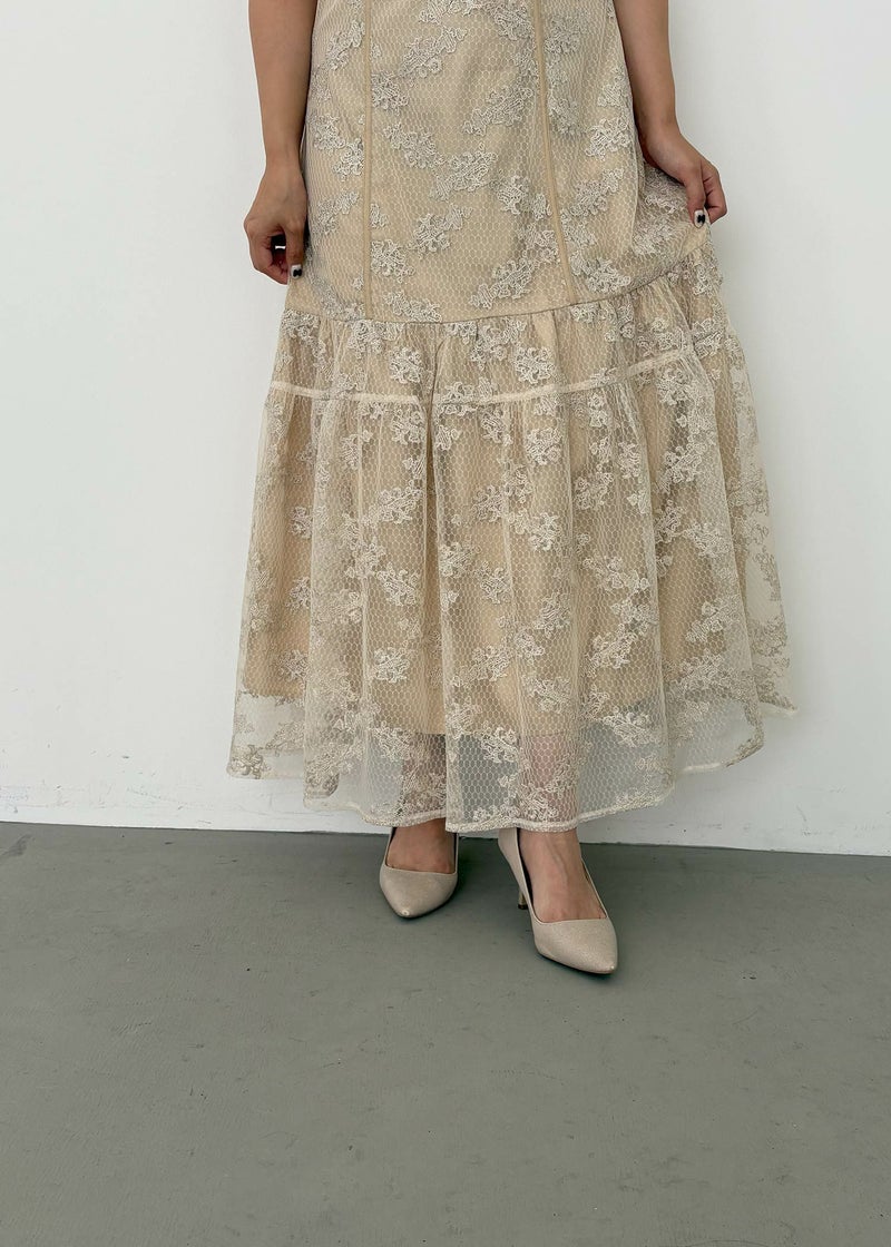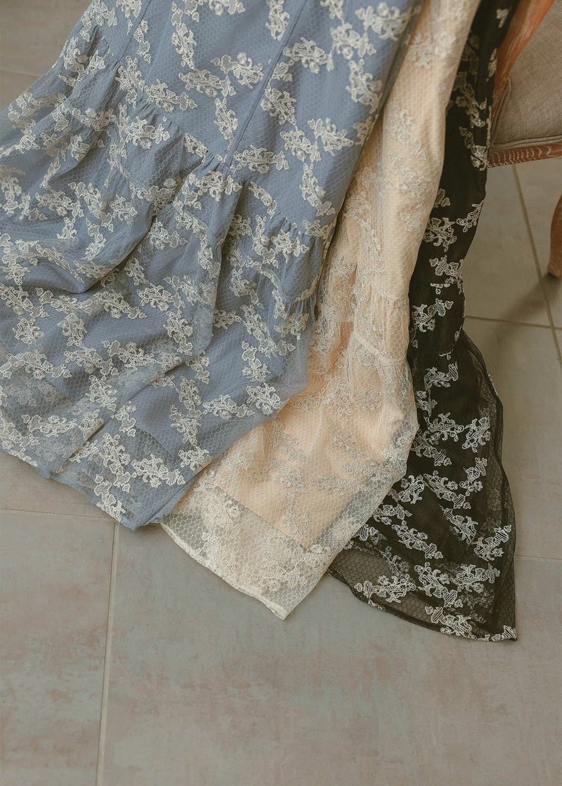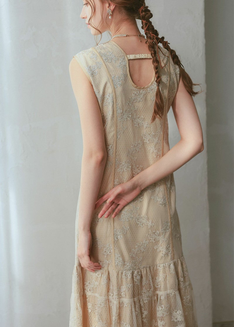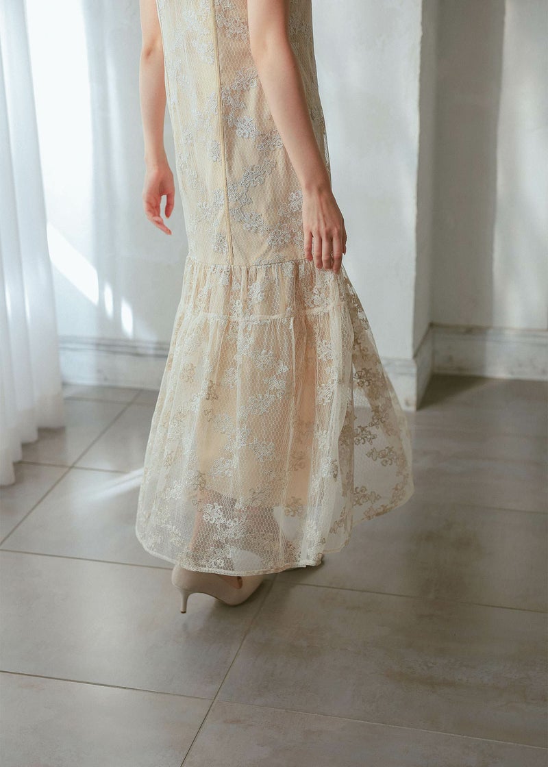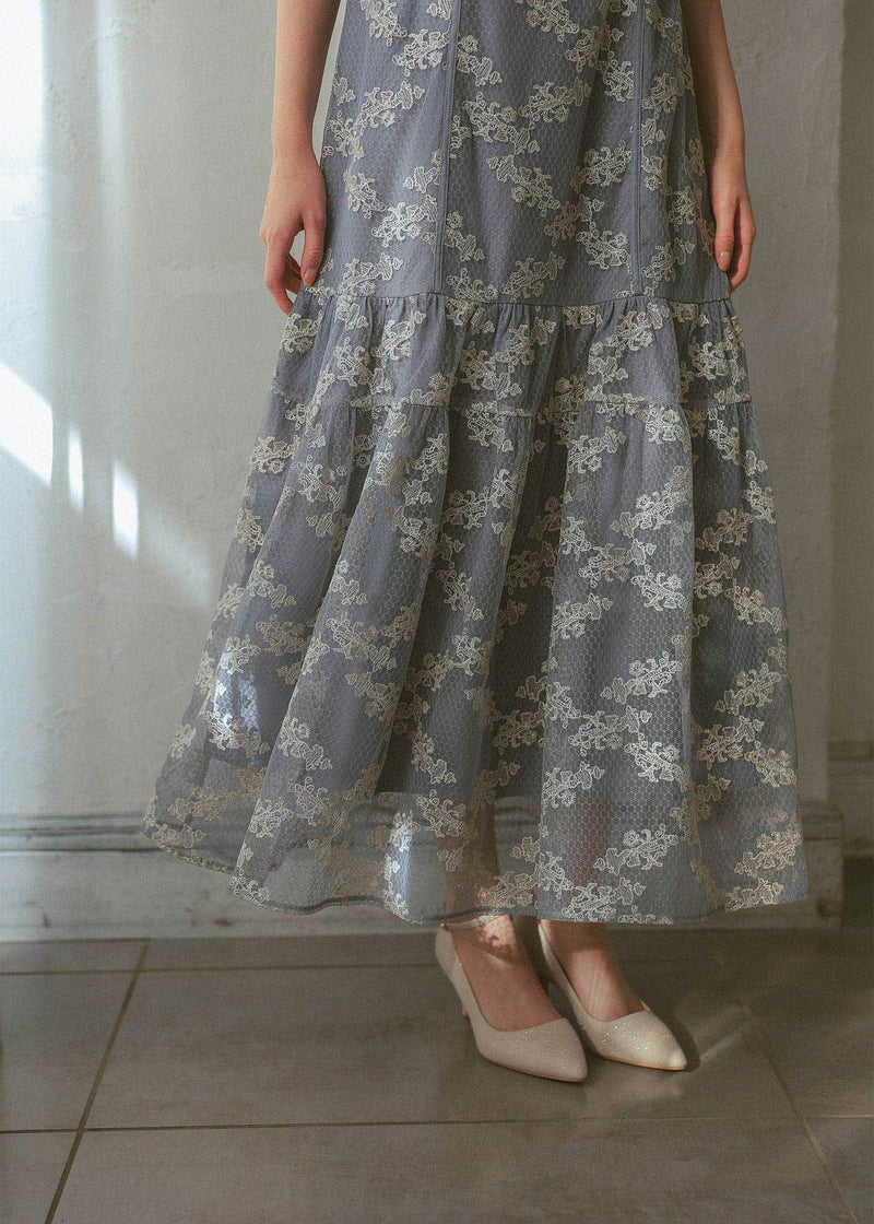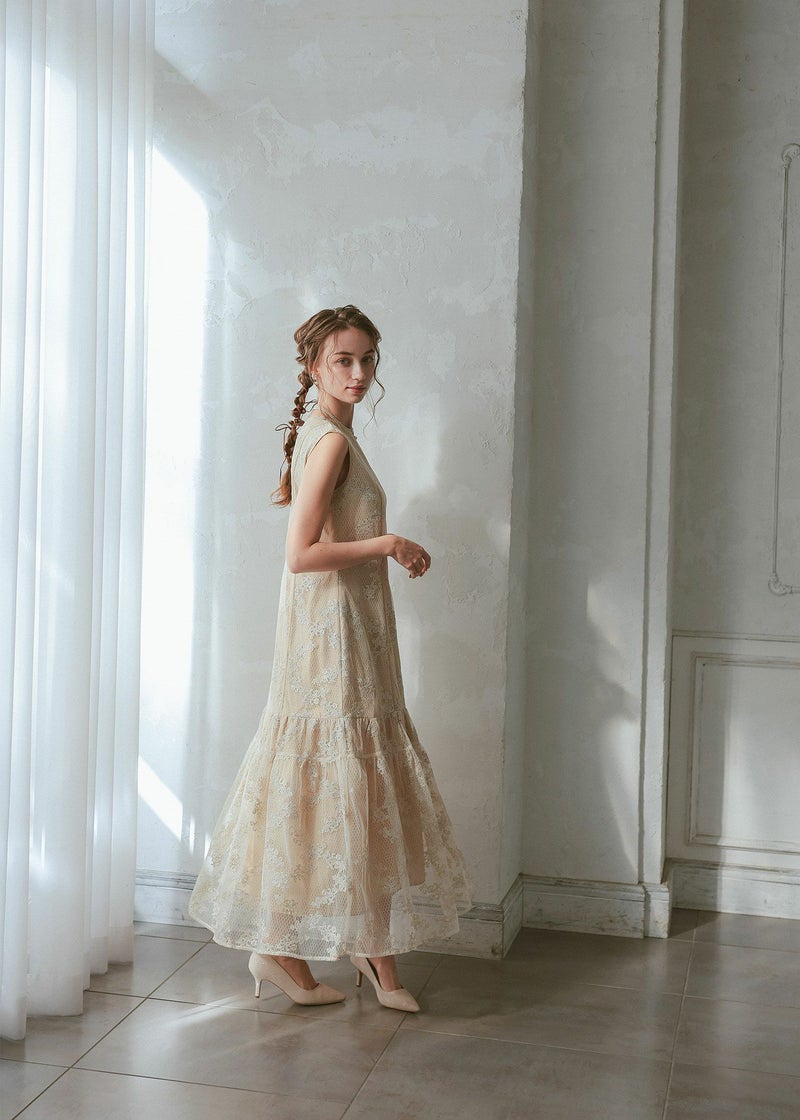 存在感のある刺繍が目を惹くドレス。 チュールレースも他ドレスとは違う生地を使用することで、ひとクセ加えた華やかなパーティースタイルに。 刺繍糸には光沢のある糸を使用し、高級感かつ華やさを感じさせます。 バックデザインは緩やかな深めのUネックラインにすることで程よい抜け感と、後ろから見た際のエレガントさにも拘りました。 スカート部分は広がり過ぎない程よいフレアでお作り。 動くたびふわりと揺れることでエレガントさを演出します。 カジュアルなパーティーシーンだけでなく、デイリーにも使える大人のドレス。 デートやホカンスなど普段使いにもオススメ。 ※ノースリーブデザインでお作りしている為、結婚式の場合は、羽織りなどで肩を隠してご着用ください。 ※ハンガー掛けの商品画像が実際の商品のお色味に近くなっております。 ※商品画像は、光の当たり具合やパソコンなどの閲覧環境により、 実際の色味と異なって見える場合がございます。予めご了承ください。 モデル着用サイズ 172cm/Mサイズ