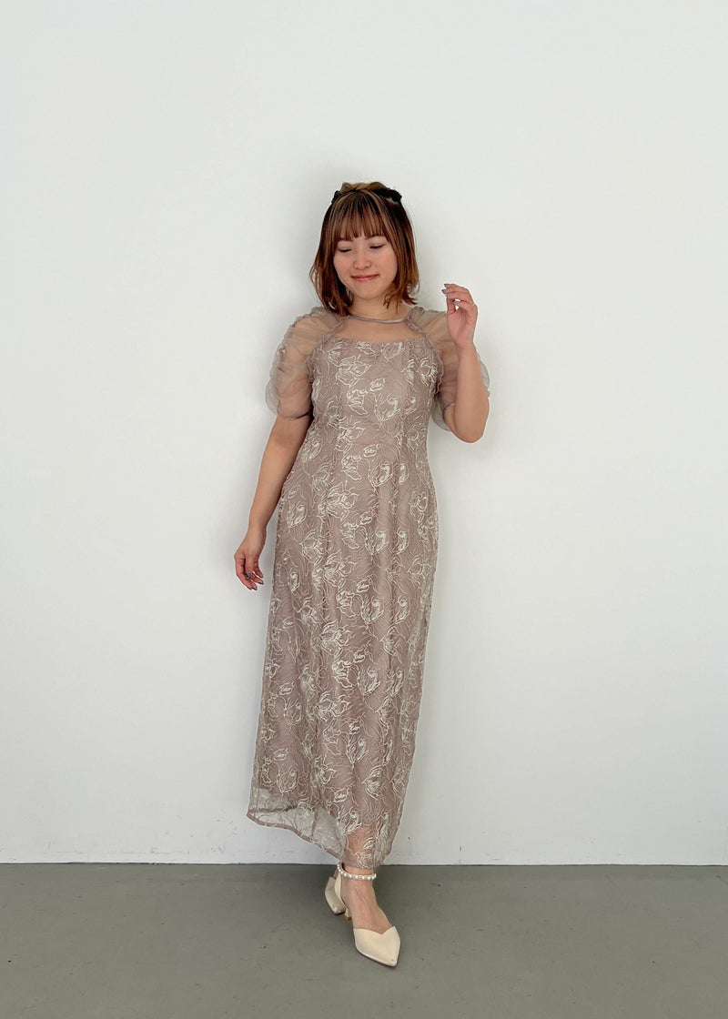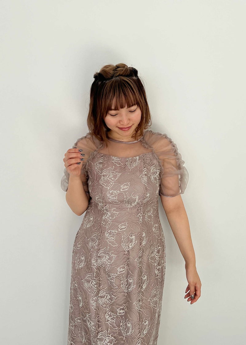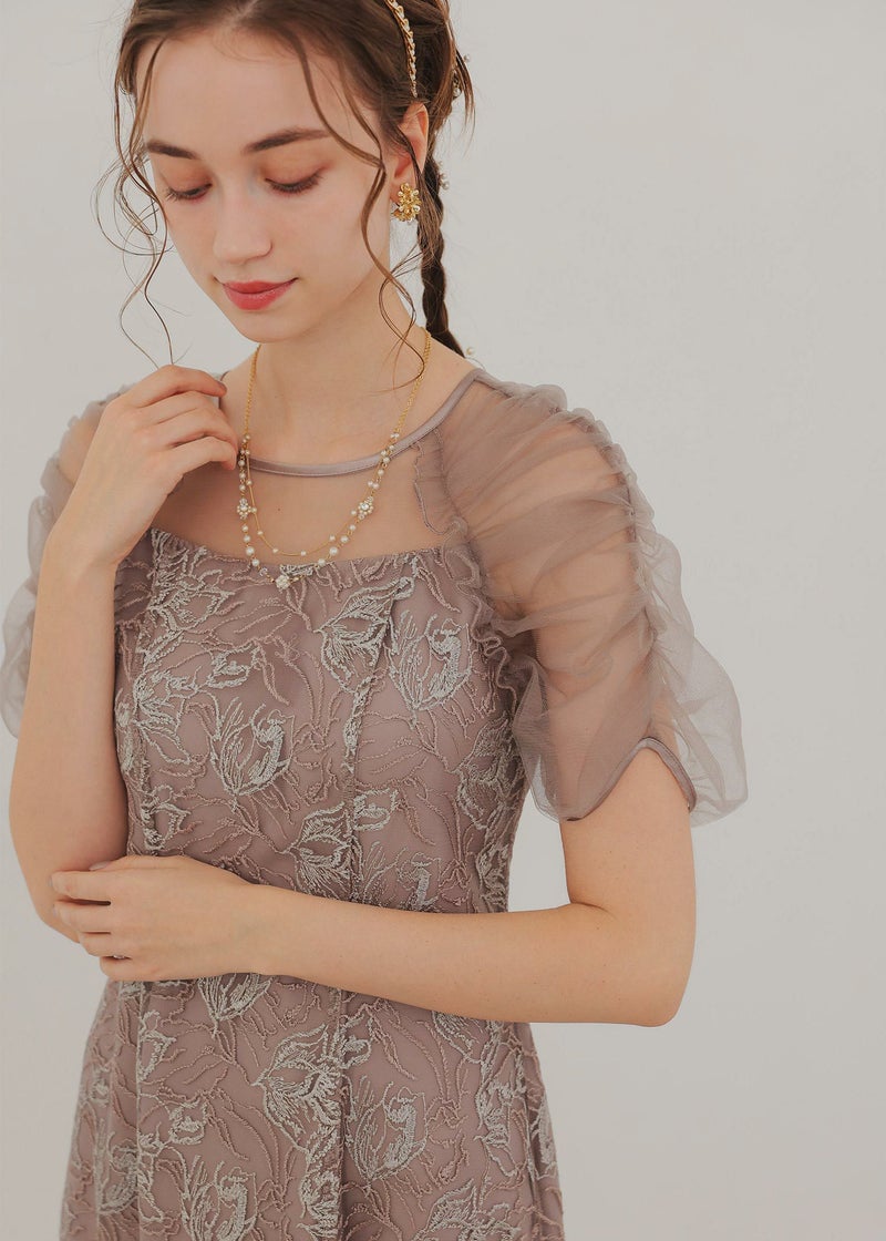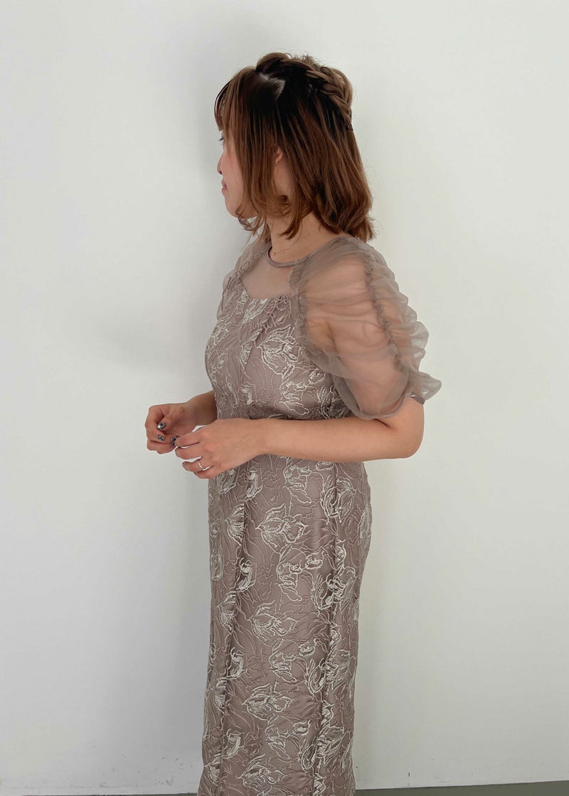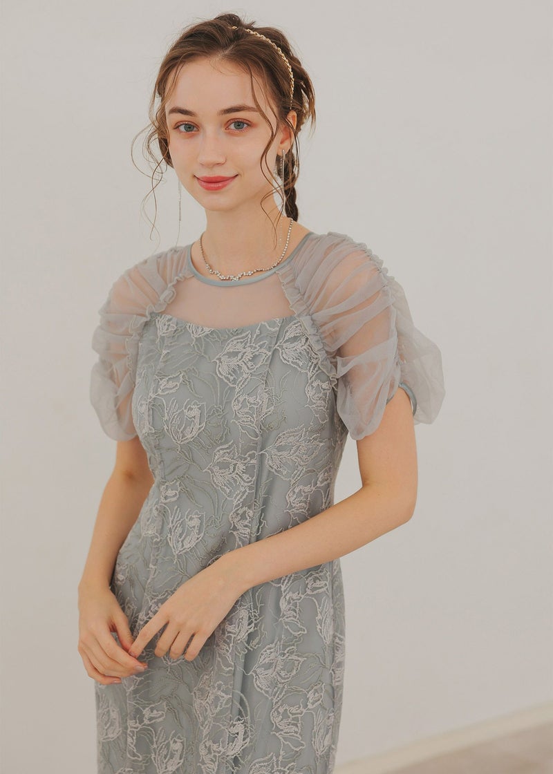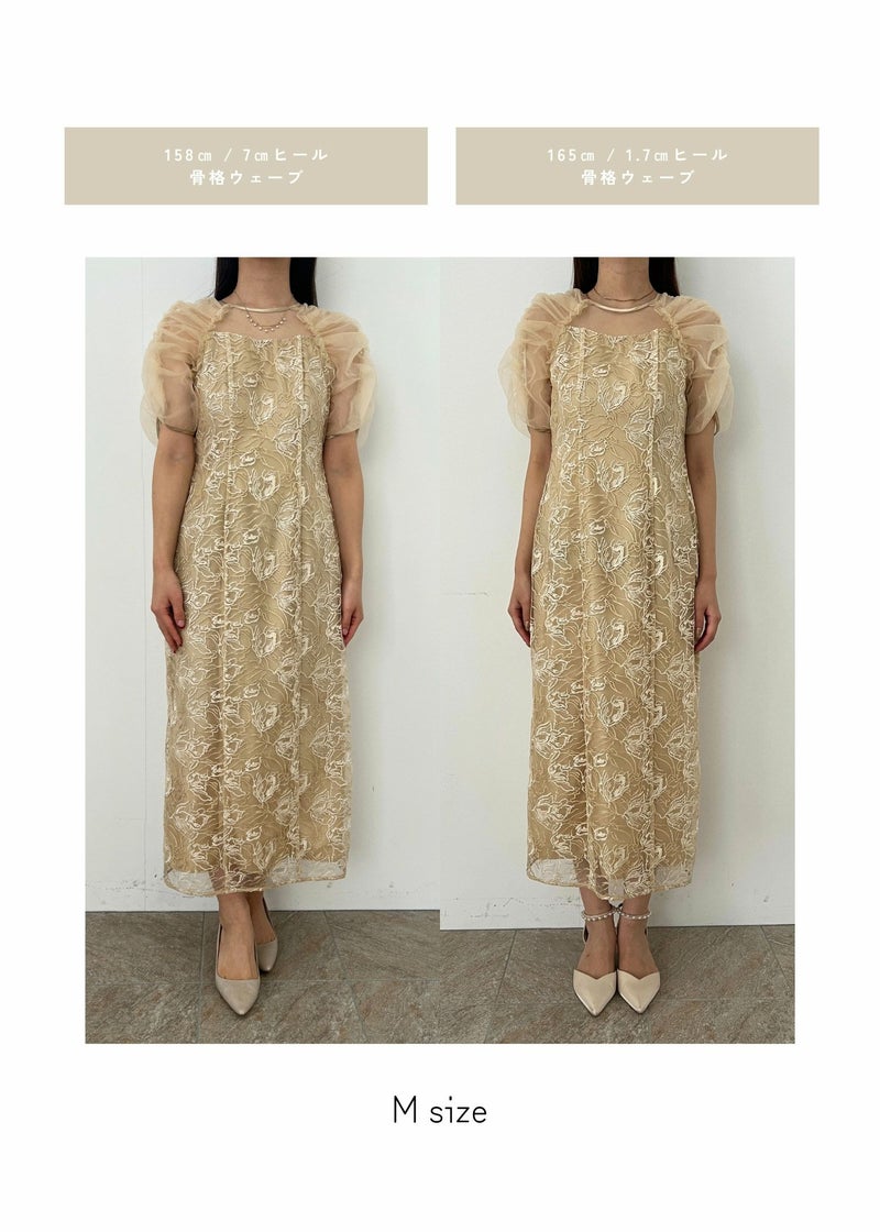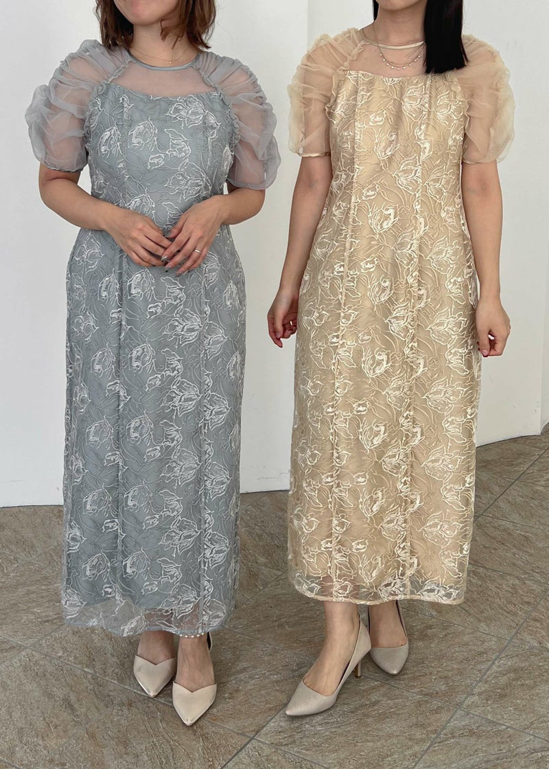 フラワー刺繍と落ち着いたカラーがフェミニンさを醸し出すドレス。 刺繍糸は2色用いることで、立体さを演出し存在感のあるフラワー刺繍に仕上げました。 袖は程よくギャザーを寄せてふんわりとさせる事で肩回りを華奢みせ。 お袖~デコルテ部分は程よいシアー感にすることで、軽やかさと女性らしさをプラス。 後ろスリット入りの為、足さばきも楽ちんなのも嬉しいポイント。 結婚式にはもちろんのこと、同窓会や、演奏会の衣装などにもぴったりな華やかな1点となっております。 ・華やかなイエロー ・大人っぽいグレージュ ・落ち着いた印象のブルー 以上の3色展開でご用意いたしました。 ※ハンガー掛けの商品画像が実際の商品のお色味に近くなっております。 ※商品画像は、光の当たり具合やパソコンなどの閲覧環境により、 実際の色味と異なって見える場合がございます。予めご了承ください。