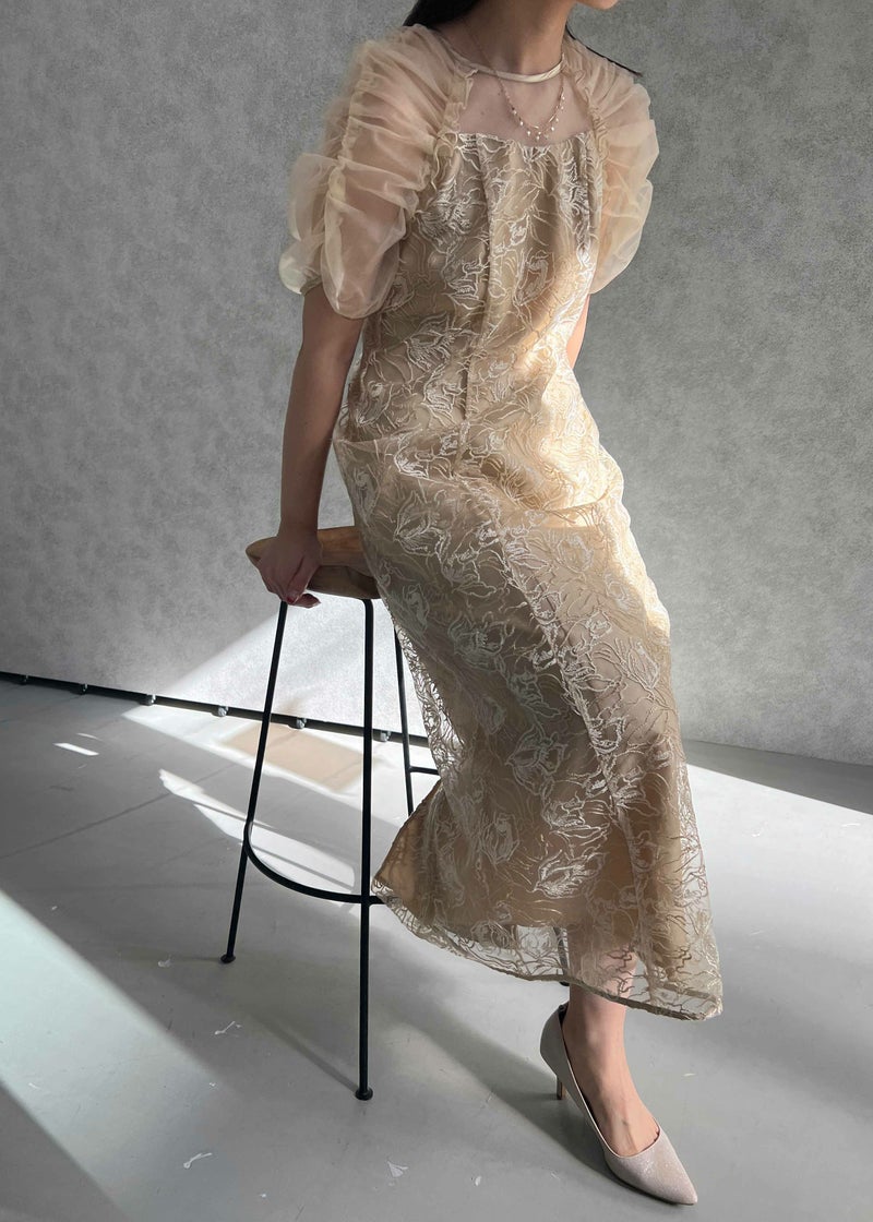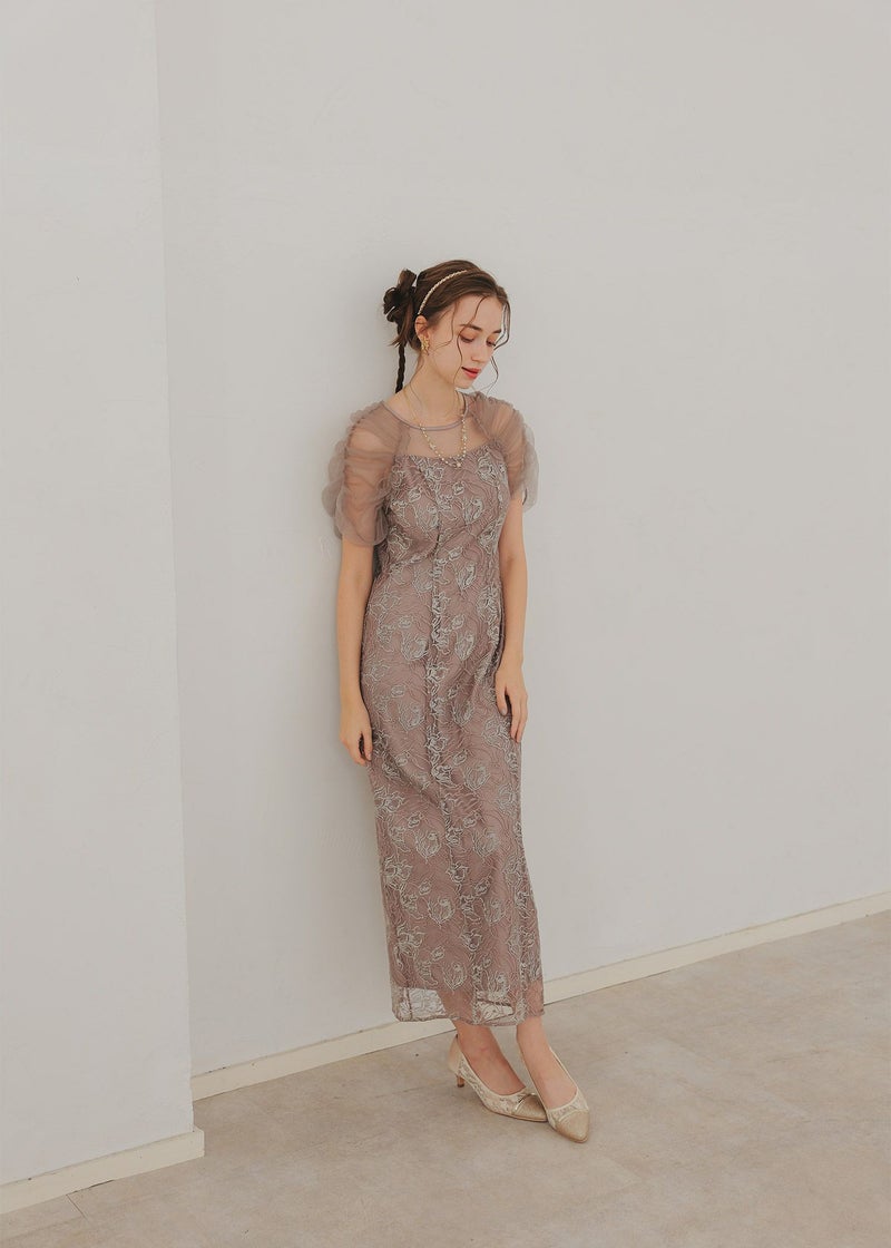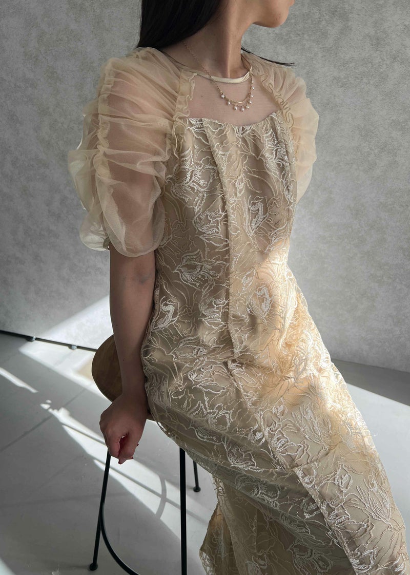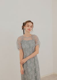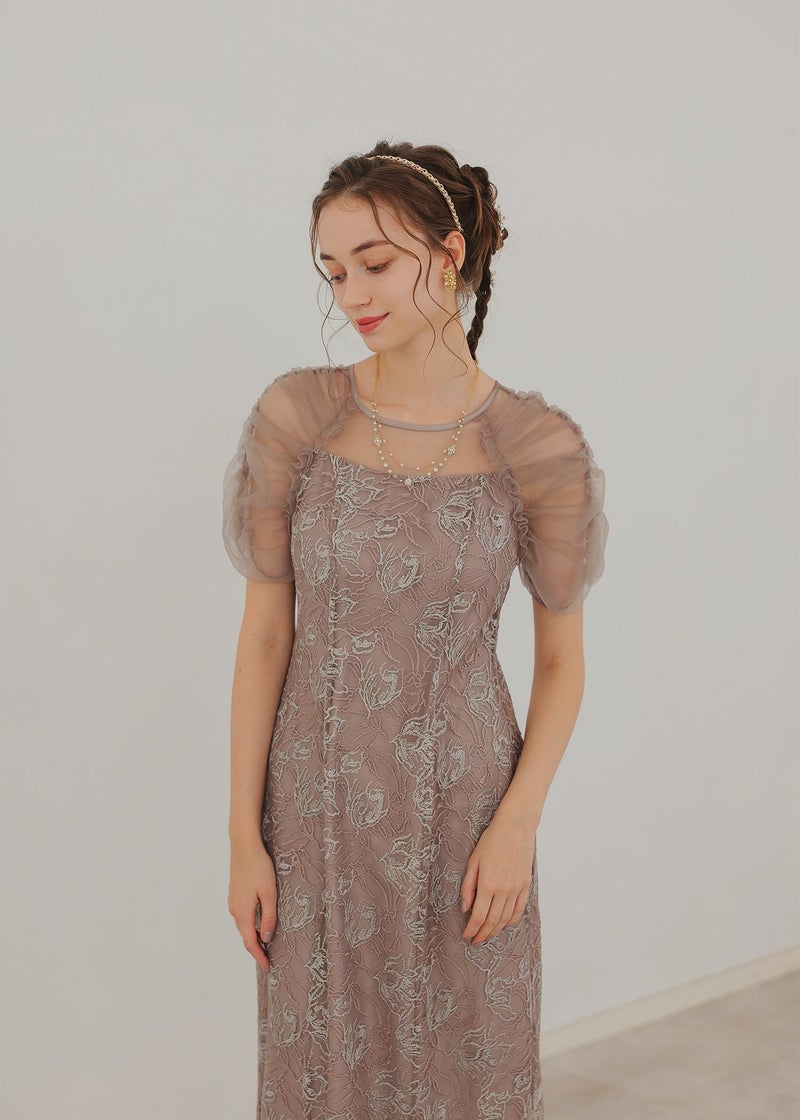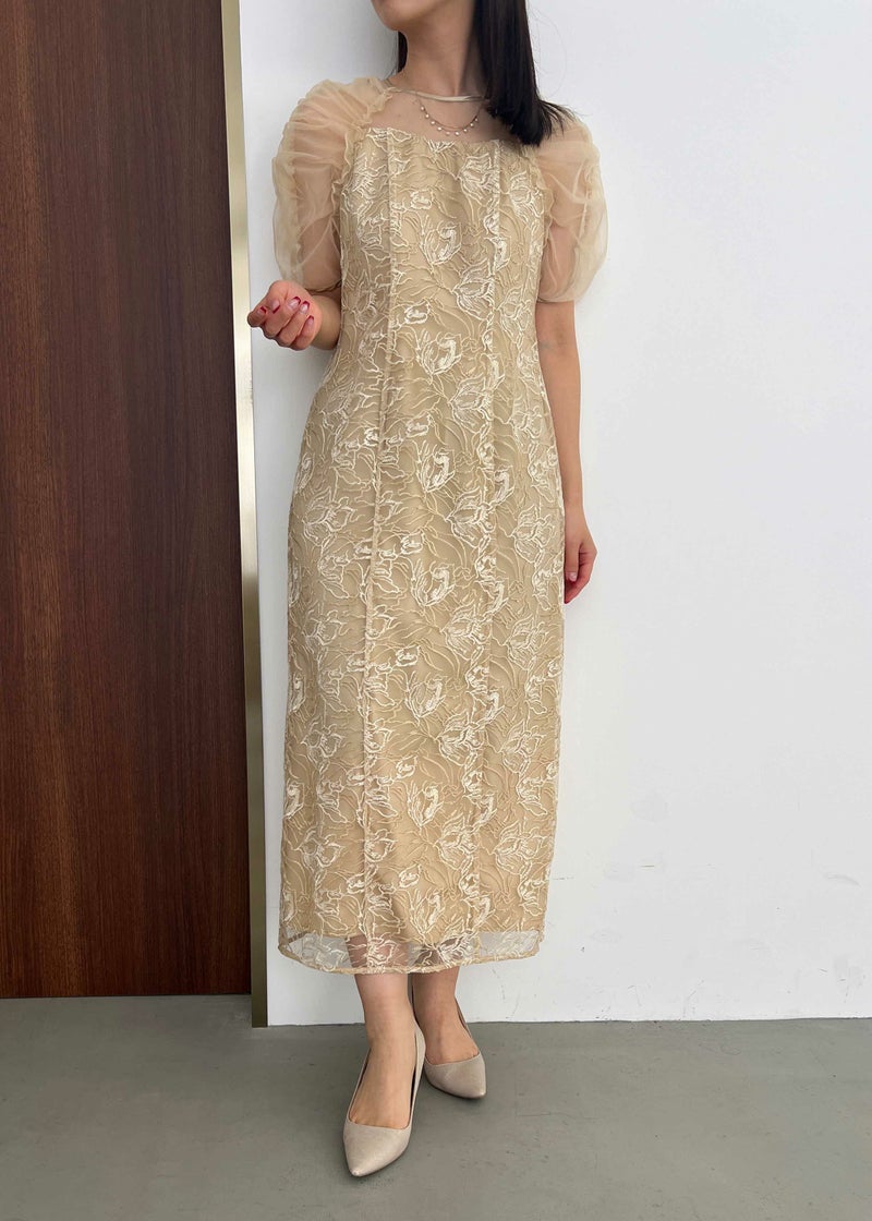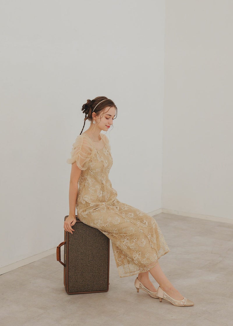 フラワー刺繍と落ち着いたカラーがフェミニンさを醸し出すドレス。 刺繍糸は2色用いることで、立体さを演出し存在感のあるフラワー刺繍に仕上げました。 袖は程よくギャザーを寄せてふんわりとさせる事で肩回りを華奢みせ。 お袖~デコルテ部分は程よいシアー感にすることで、軽やかさと女性らしさをプラス。 後ろスリット入りの為、足さばきも楽ちんなのも嬉しいポイント。 結婚式にはもちろんのこと、同窓会や、演奏会の衣装などにもぴったりな華やかな1点となっております。 ・華やかなイエロー ・大人っぽいグレージュ ・落ち着いた印象のブルー 以上の3色展開でご用意いたしました。 ※ハンガー掛けの商品画像が実際の商品のお色味に近くなっております。 ※商品画像は、光の当たり具合やパソコンなどの閲覧環境により、 実際の色味と異なって見える場合がございます。予めご了承ください。
