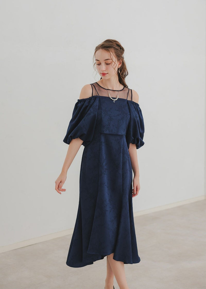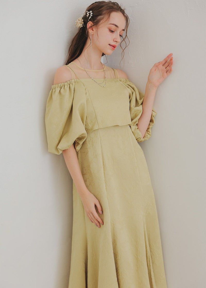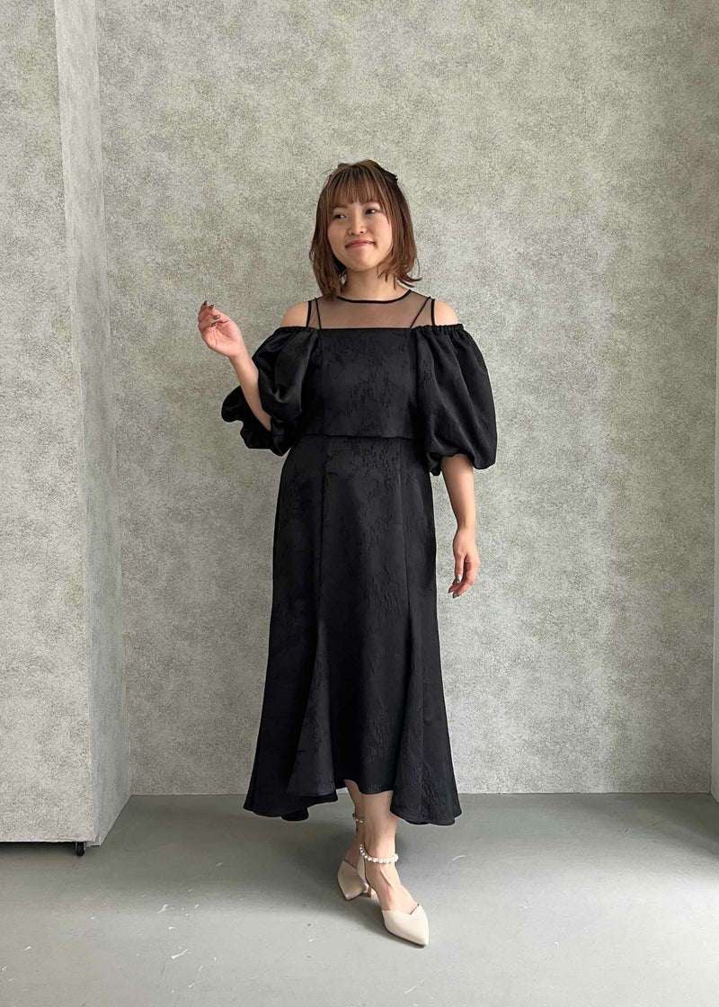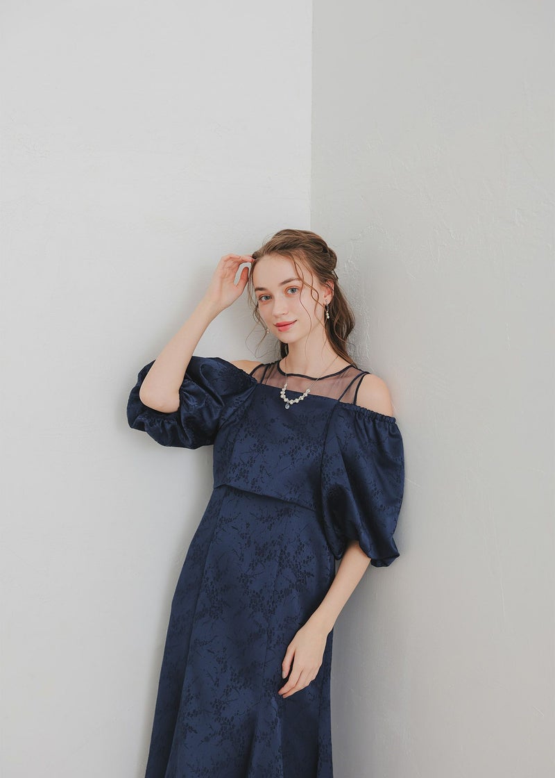 マルチに着回しが出来るブラウスとノースリーブワンピを合わせたセットアイテム。 ヴィンテージライクな雰囲気を醸し出すジャガード素材で上品なお呼ばれドレスになります。 ブラウスは落ち感のある、ふんわりとしたお袖が特徴的なオフショルデザイン。 お昼の結婚式参列する方にご安心いただけるよう 肩の部分がゴム入りなっている為、肌見せを隠した着用もできます。 背中は伸縮性があり、ベルト付きになっている為調節可能になっております。 ワンピースはデコルテ部分をシアー素材にすることでヘルシーに。 裾のラインを前後差のあるフィッシュテールにすることで足長・美脚効果アップ◎ フォーマルなワンピースドレスになっている為、お持ちのジャケット等で合わせるのもおすすめです♪ カジュアルなパーティーシーンだけでなく、デイリーにも使える大人のドレス。 デートやホカンスなど普段使いにもオススメ。 ※ノースリーブデザインでお作りしている為、結婚式の場合は、羽織りなどで肩を隠してご着用ください。 ※商品画像は、光の当たり具合やパソコンなどの閲覧環境により、 実際の色味と異なって見える場合がございます。予めご了承ください。