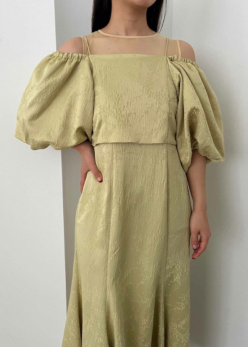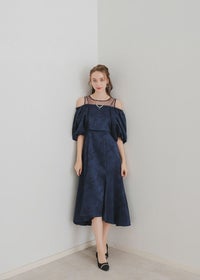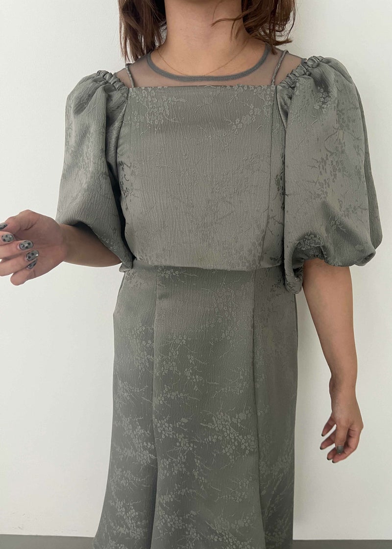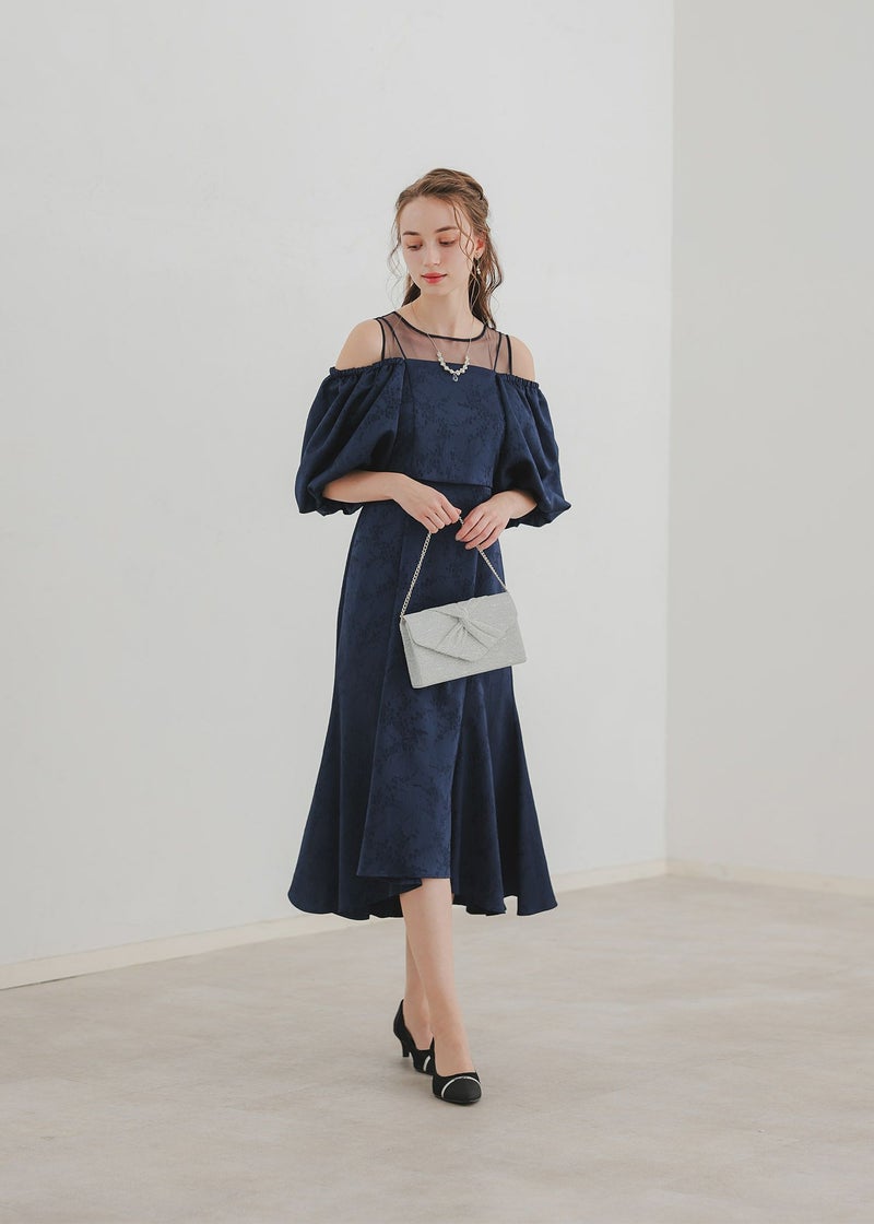 マルチに着回しが出来るブラウスとノースリーブワンピを合わせたセットアイテム。 ヴィンテージライクな雰囲気を醸し出すジャガード素材で上品なお呼ばれドレスになります。 ブラウスは落ち感のある、ふんわりとしたお袖が特徴的なオフショルデザイン。 お昼の結婚式参列する方にご安心いただけるよう 肩の部分がゴム入りなっている為、肌見せを隠した着用もできます。 背中は伸縮性があり、ベルト付きになっている為調節可能になっております。 ワンピースはデコルテ部分をシアー素材にすることでヘルシーに。 裾のラインを前後差のあるフィッシュテールにすることで足長・美脚効果アップ◎ フォーマルなワンピースドレスになっている為、お持ちのジャケット等で合わせるのもおすすめです♪ カジュアルなパーティーシーンだけでなく、デイリーにも使える大人のドレス。 デートやホカンスなど普段使いにもオススメ。 ※ノースリーブデザインでお作りしている為、結婚式の場合は、羽織りなどで肩を隠してご着用ください。 ※商品画像は、光の当たり具合やパソコンなどの閲覧環境により、 実際の色味と異なって見える場合がございます。予めご了承ください。