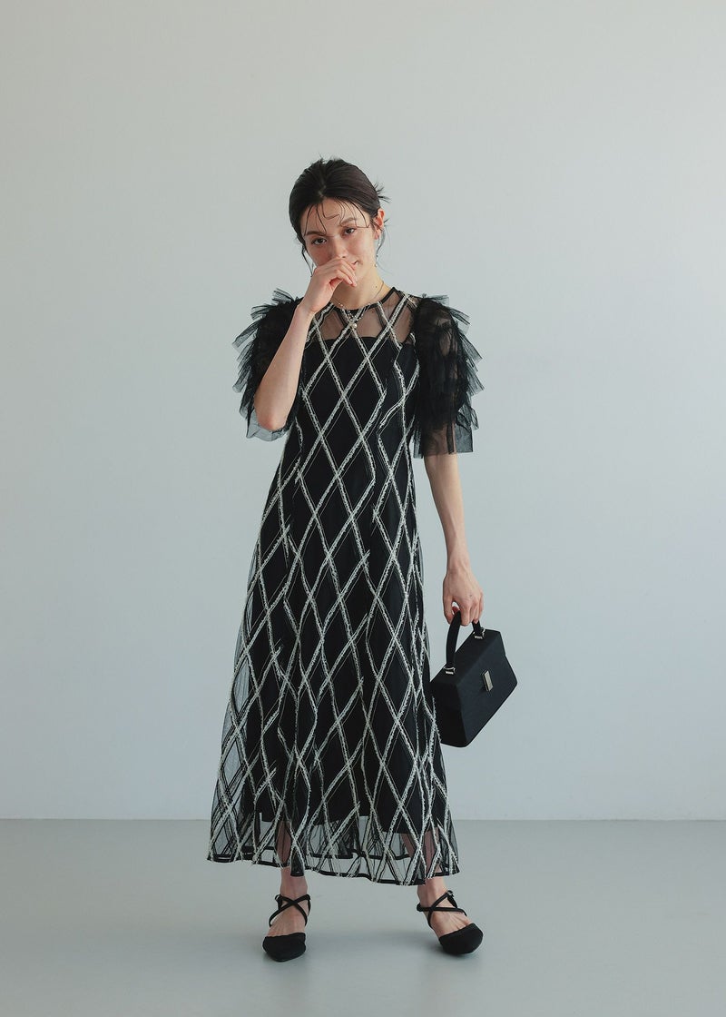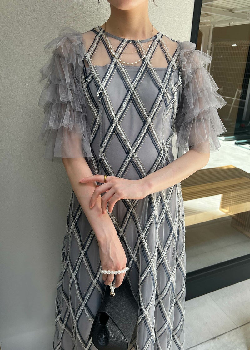 Dorry Doll ダイヤチェックフリルスリーブドレス
