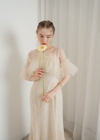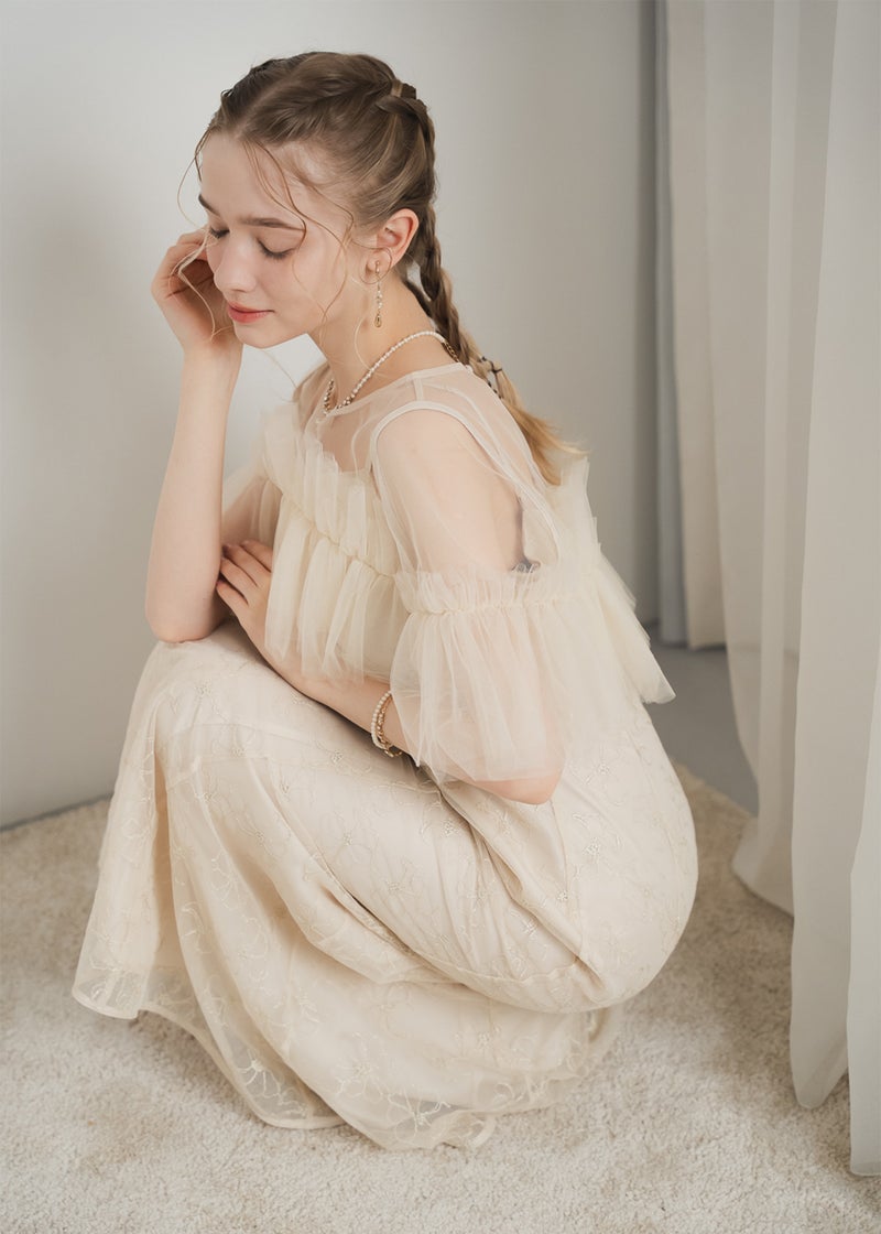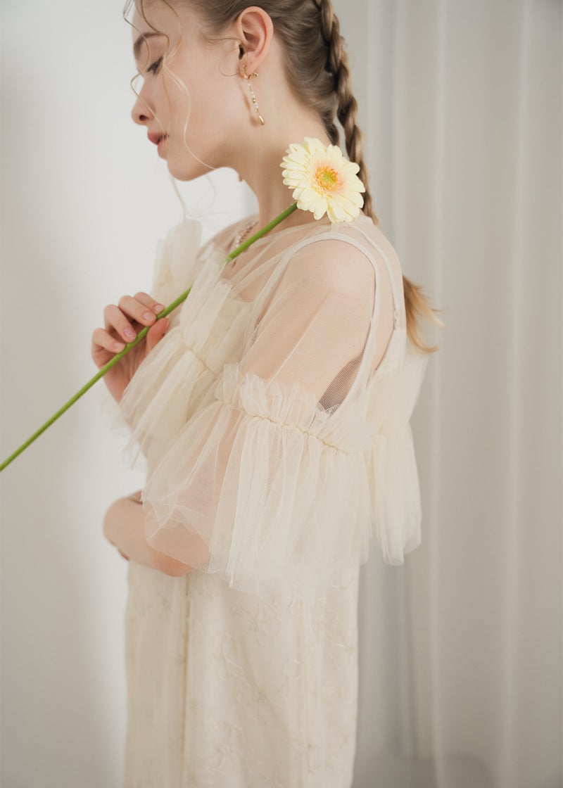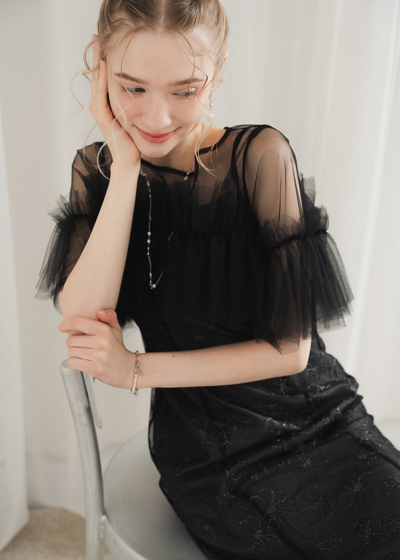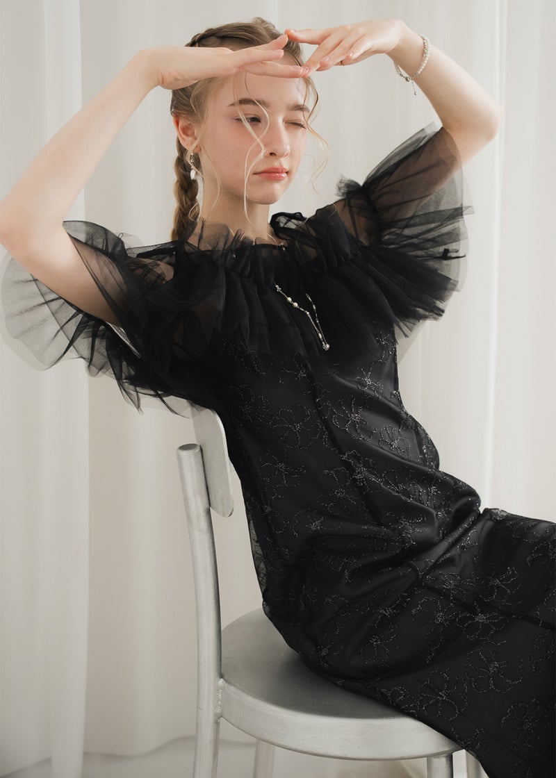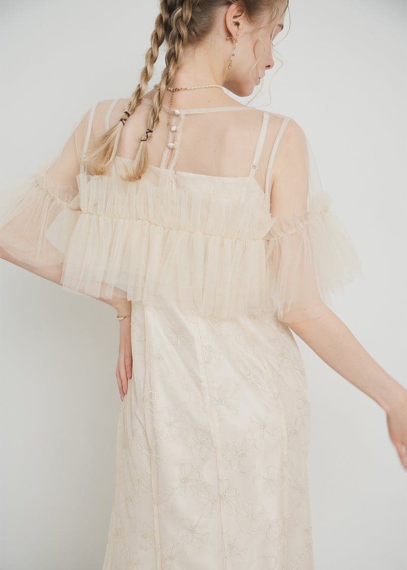 繊細なレース素材に、チュールボレロを重ねた華やかなセットドレス。 胸元にたっぷりとあしらったチュールフリルが 顔まわりを華やかに彩り、印象的なスタイリングを叶えます。 ボディラインを美しく引き立てるマーメイドシルエットで、 女性らしい曲線を上品に演出。 結婚式や二次会、パーティーなど 特別なシーンにふさわしい一着です。 ※商品画像は光の当たり具合や端末など、閲覧環境により、 実際の色味と異なって見える場合がございます。予めご了承ください。