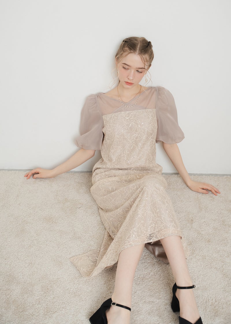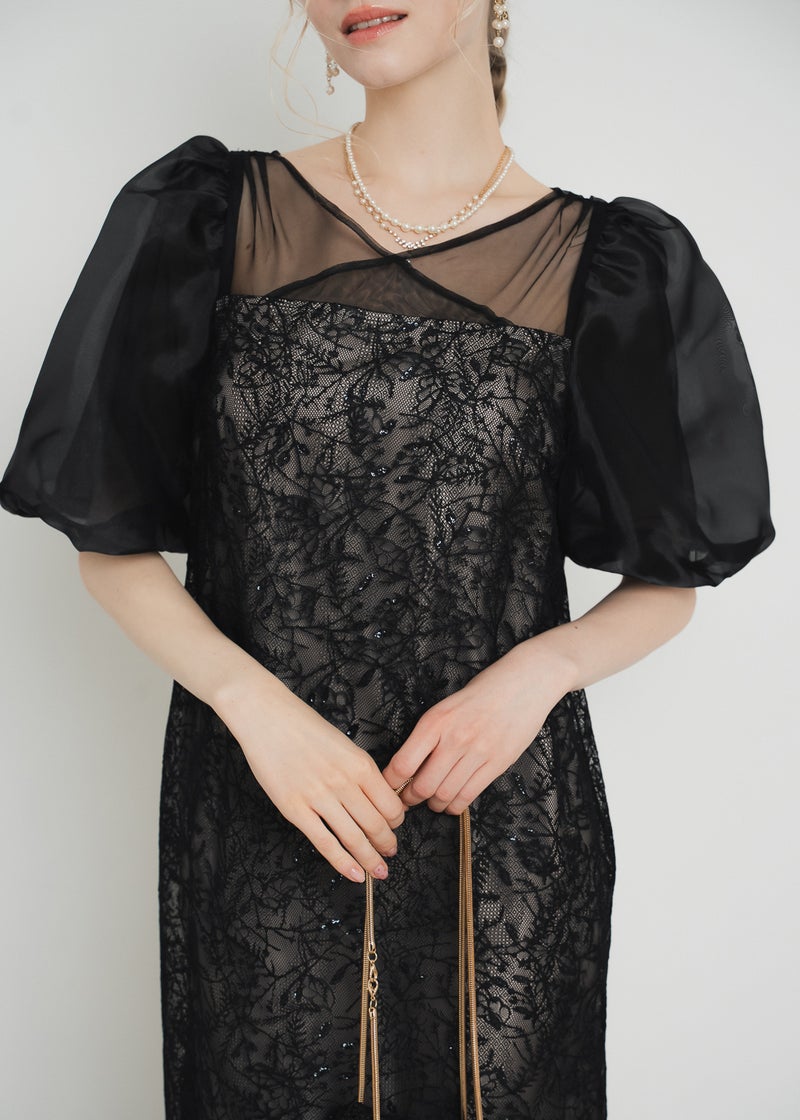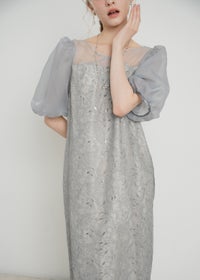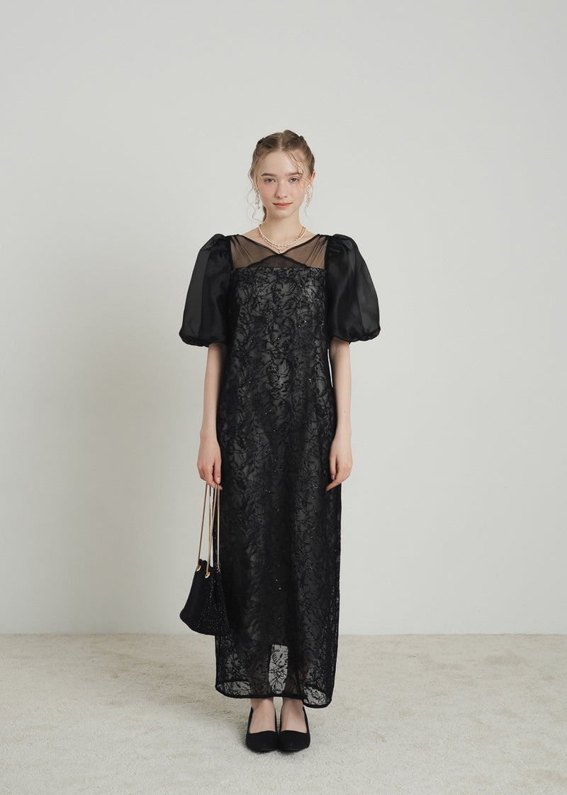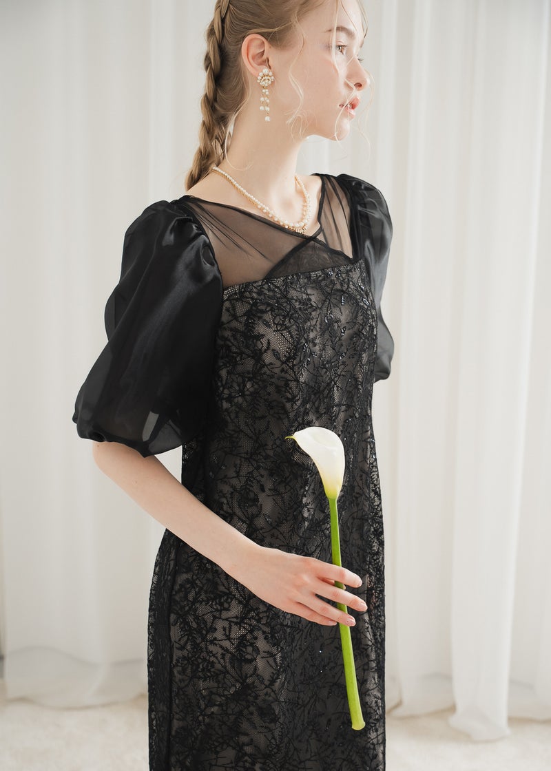 繊細なリーフ柄刺繍とふんわりパフスリーブが目を引く、上品さと可憐さを兼ね備えたドレス。 全体に施された刺繍の中に、さりげなくきらめくスパンコールがアクセントに。 デコルテ部分は程よいシアー感とクロスデザインのVネックですっきりとした印象を与えます。 シアー素材を重ねた、ぽわんとボリューム感が可愛いパフスリーブには、 洗練されたIラインシルエットのワンピースで可愛らしさの中に上品さもある佇まいに。 配色にこだわって選んだ、地と刺繍レース地のバランス感もポイントです。 それぞれのカラーに合うよう、カラーごとに裏地の色を変えています。 ベビーピンクのような、ふんわりとした印象のベージュ 少しくすみのあるニュアンス感が可愛いブルー 引き締まって見えて、より大人っぽく決まるブラック カラーを選ぶのも、ついときめいてしまうカラー展開です。 甘すぎない、大人可愛い一着をお探しの方にぜひ。 ※商品画像は、光の当たり具合やパソコンなどの閲覧環境により、 実際の色味と異なって見える場合がございます。予めご了承ください。