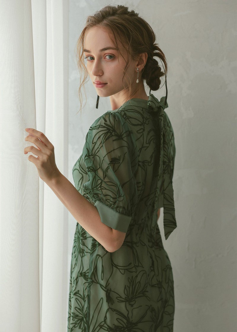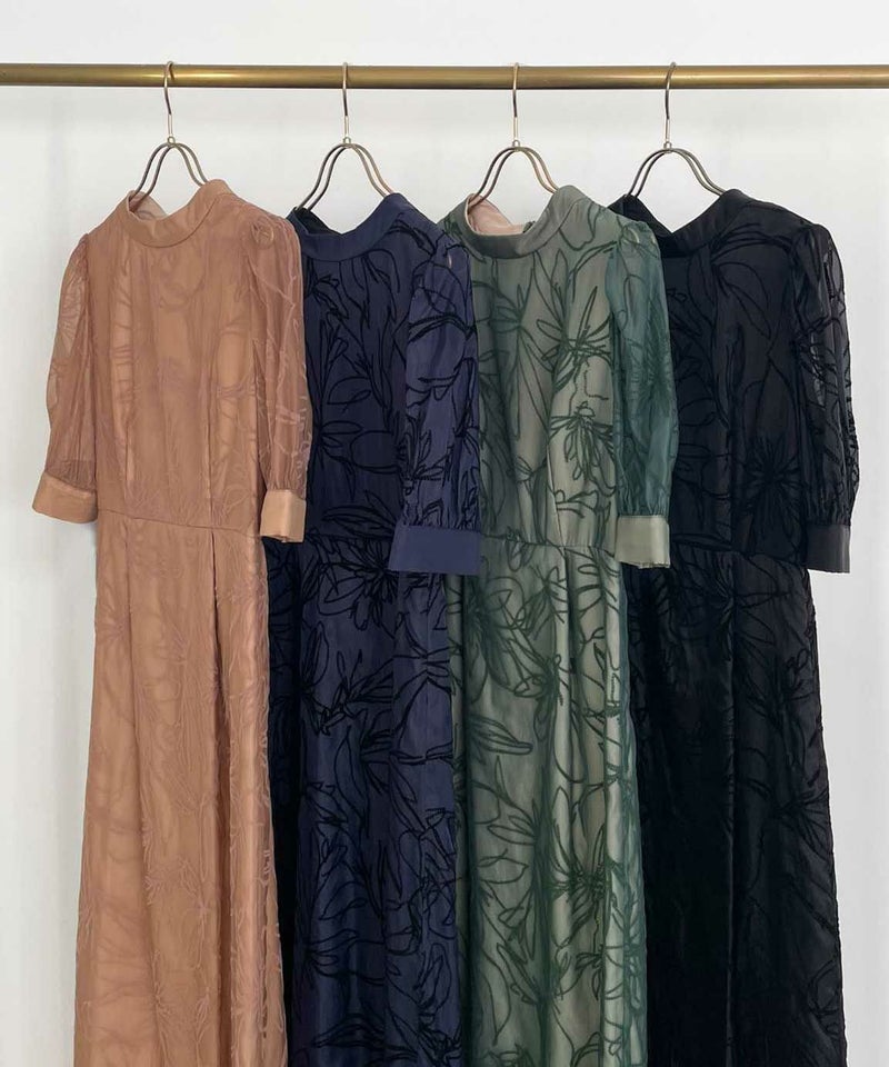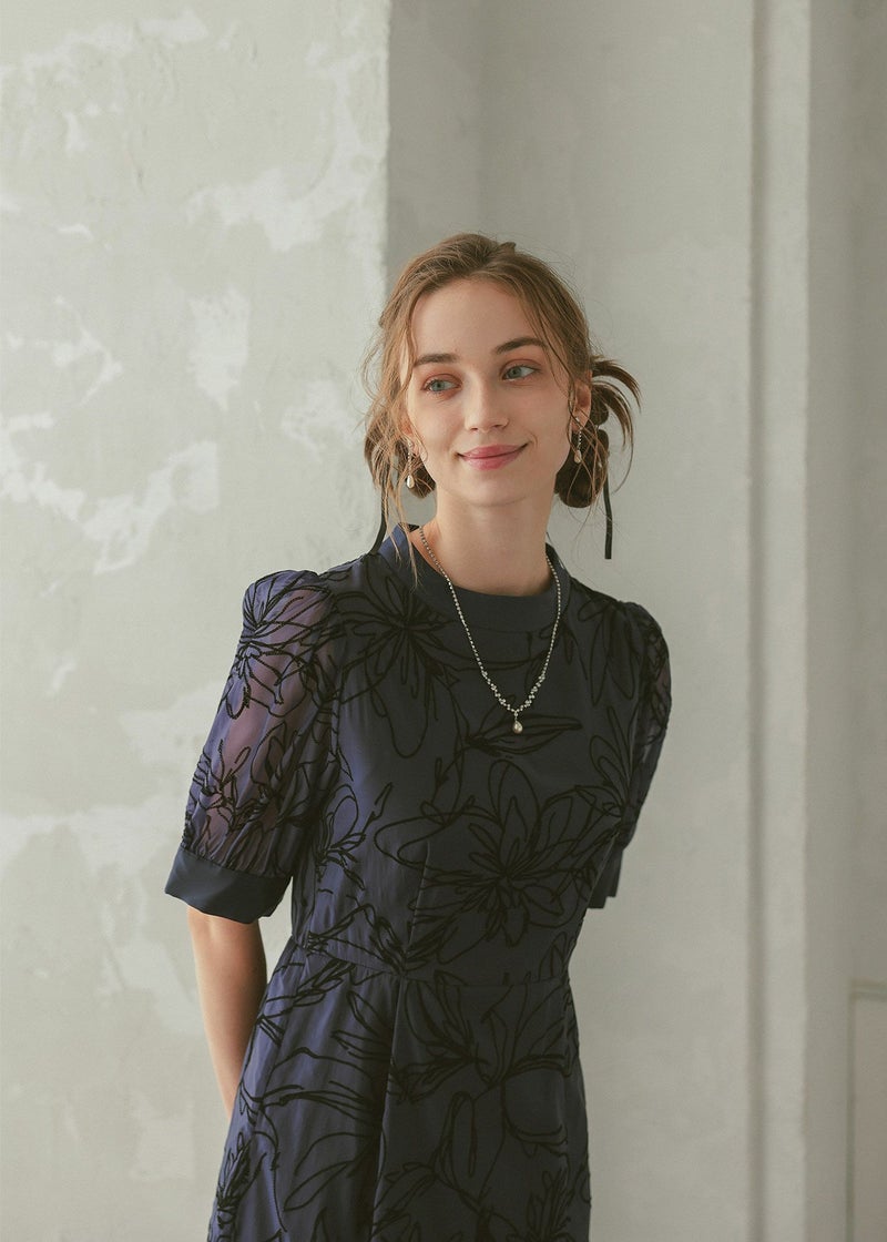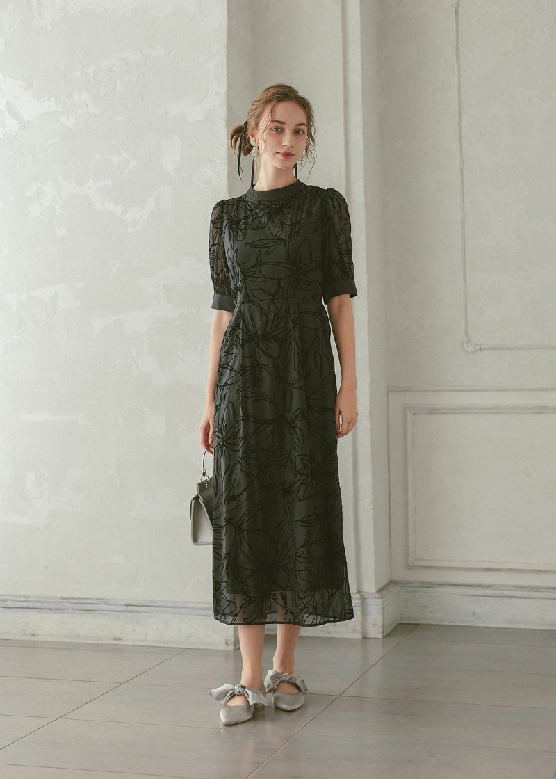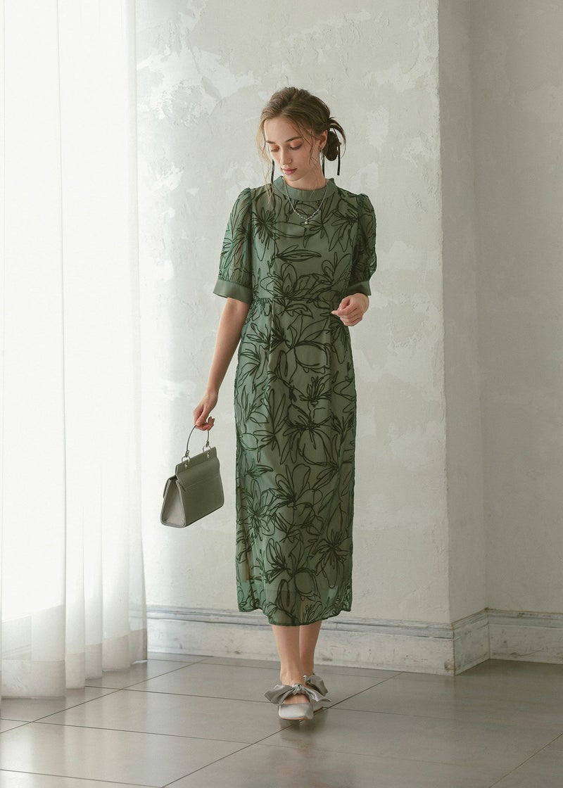 大人っぽい雰囲気の花柄Iラインドレス